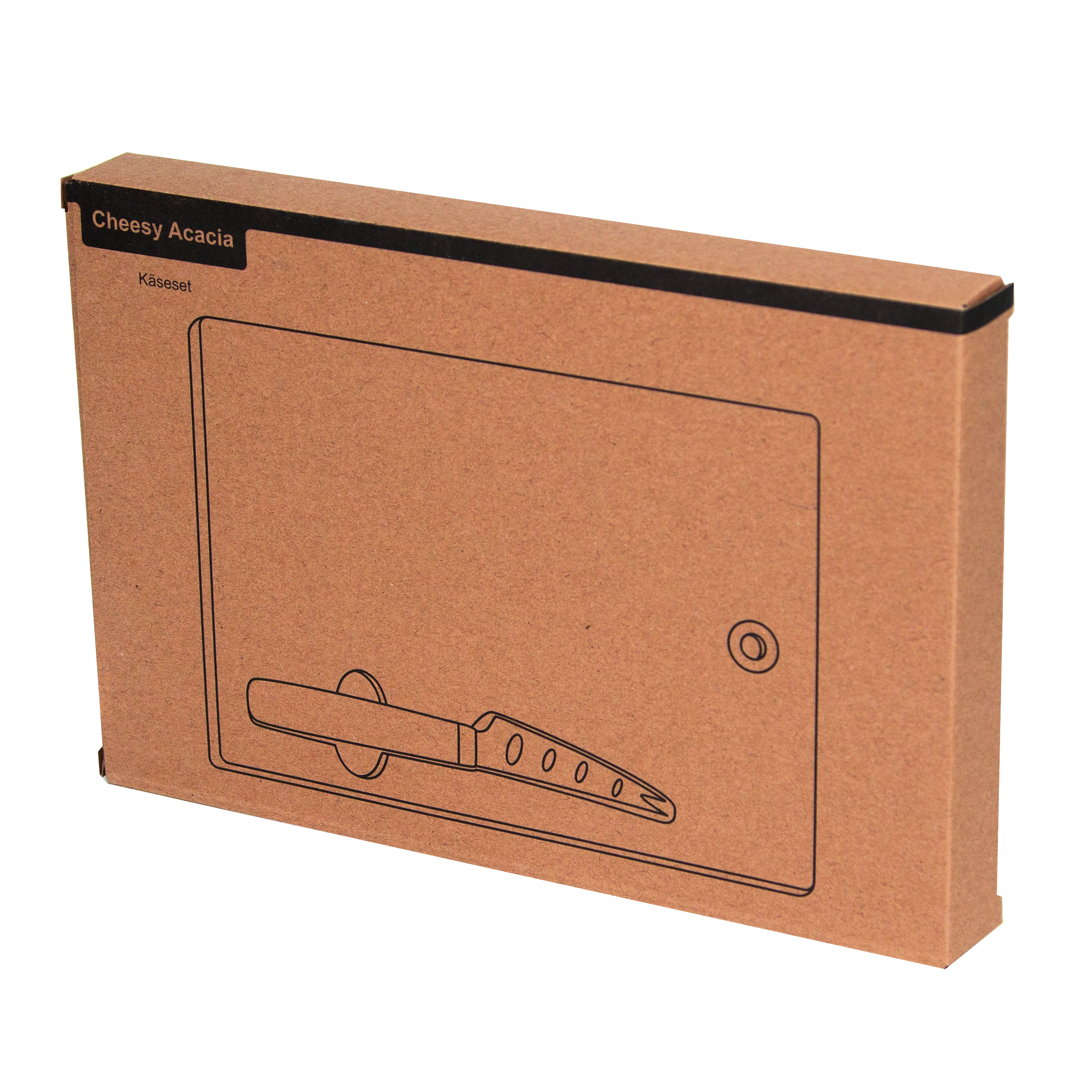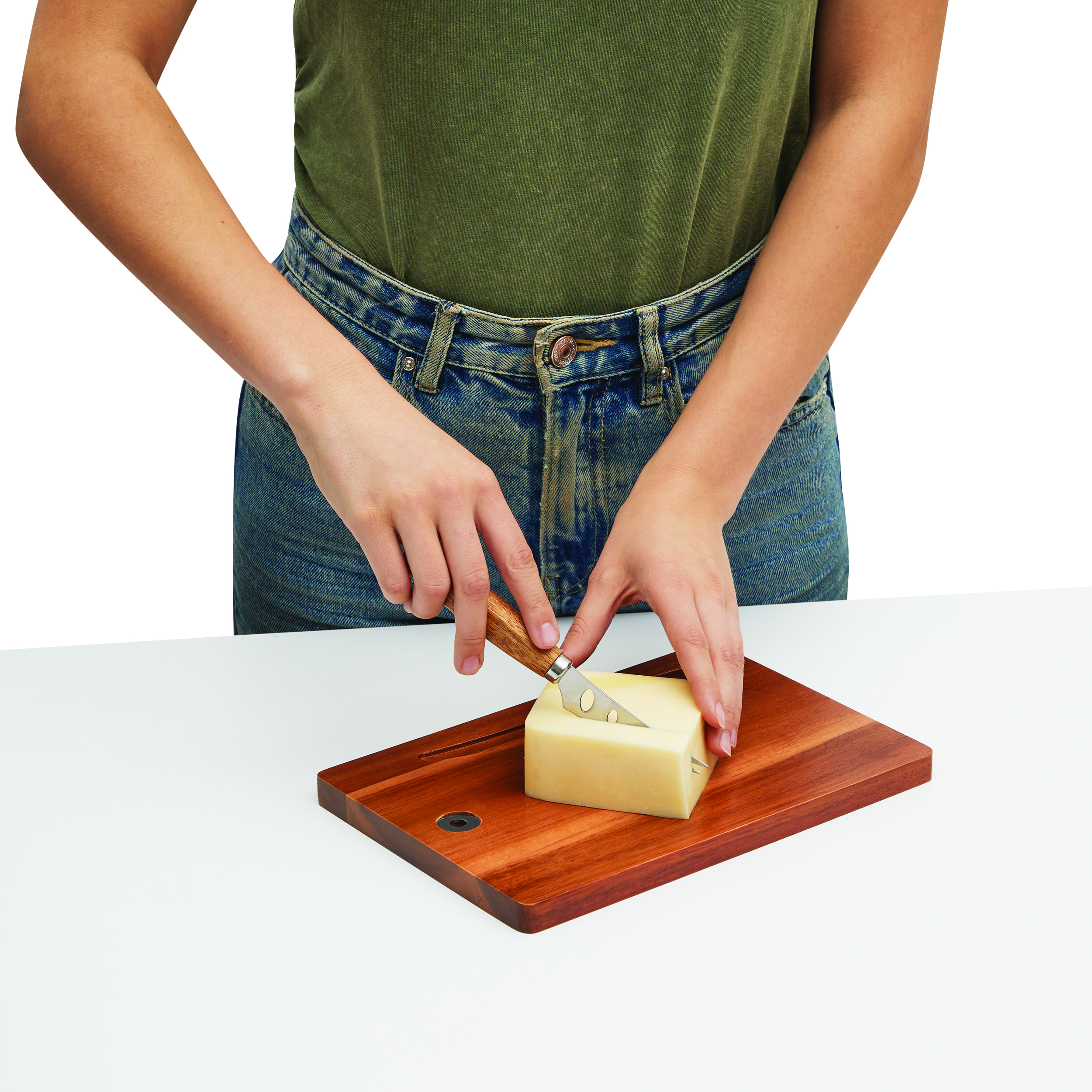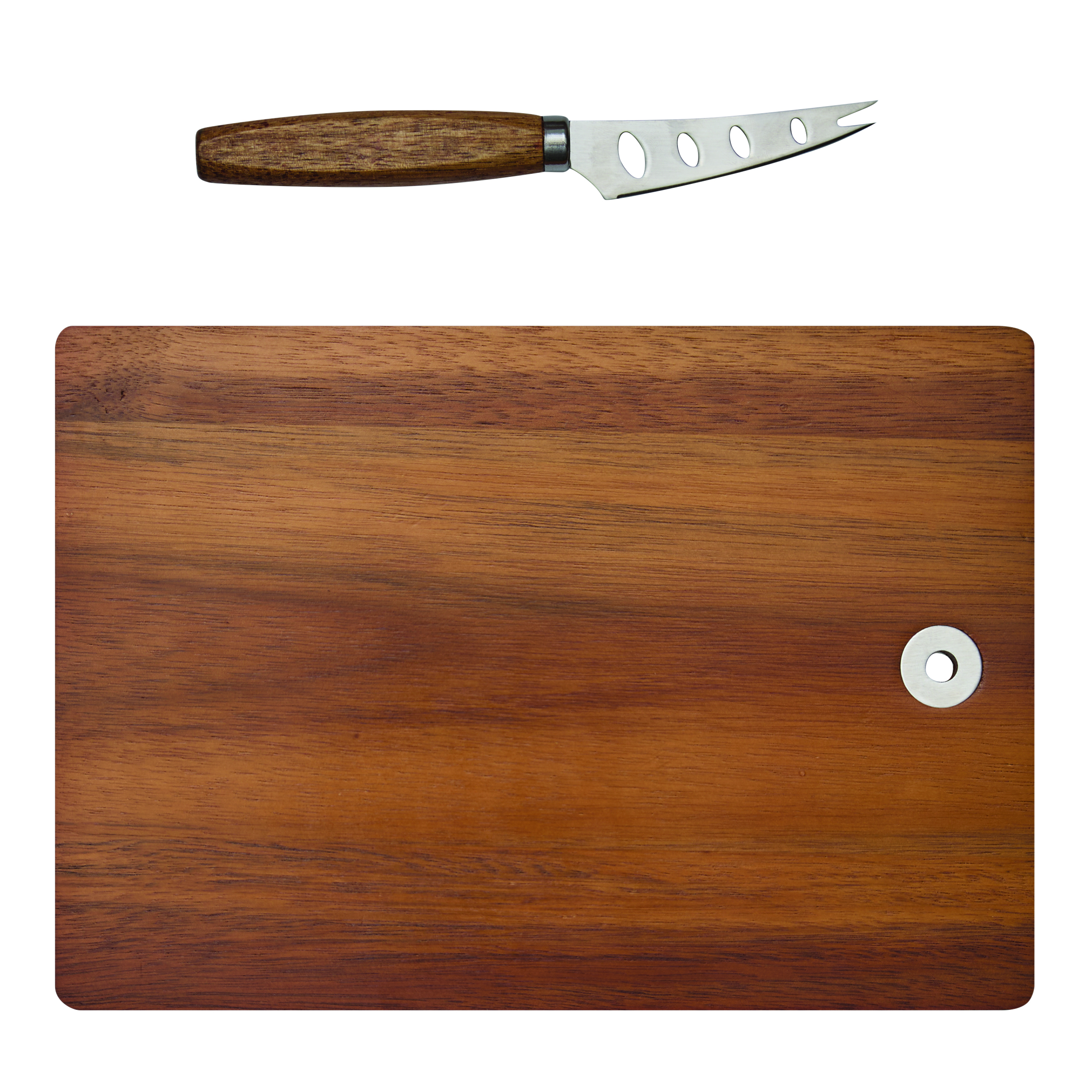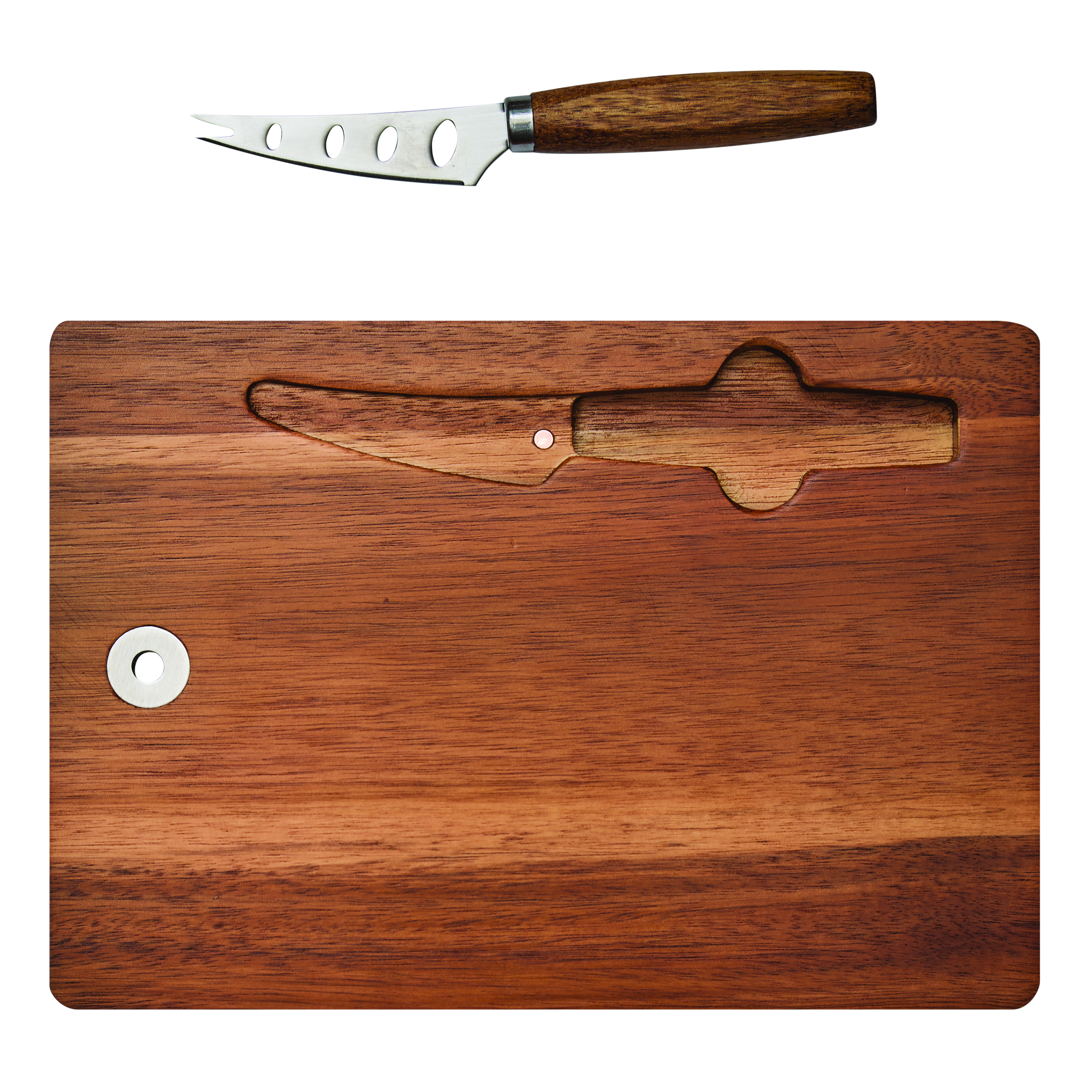 Zestaw do sera CHEESY ACACIA. Składa się z deski do krojenia z drewna akacjowego oraz noża do sera z drewnianą rękojeścią i ostrzem ze stali nierdzewnej. Wygodne magnetyczne mocowanie umożliwia przechowywanie noża we wnęce. Deska posiada również wzmocniony stalą nierdzewną otwór do zawieszenia.