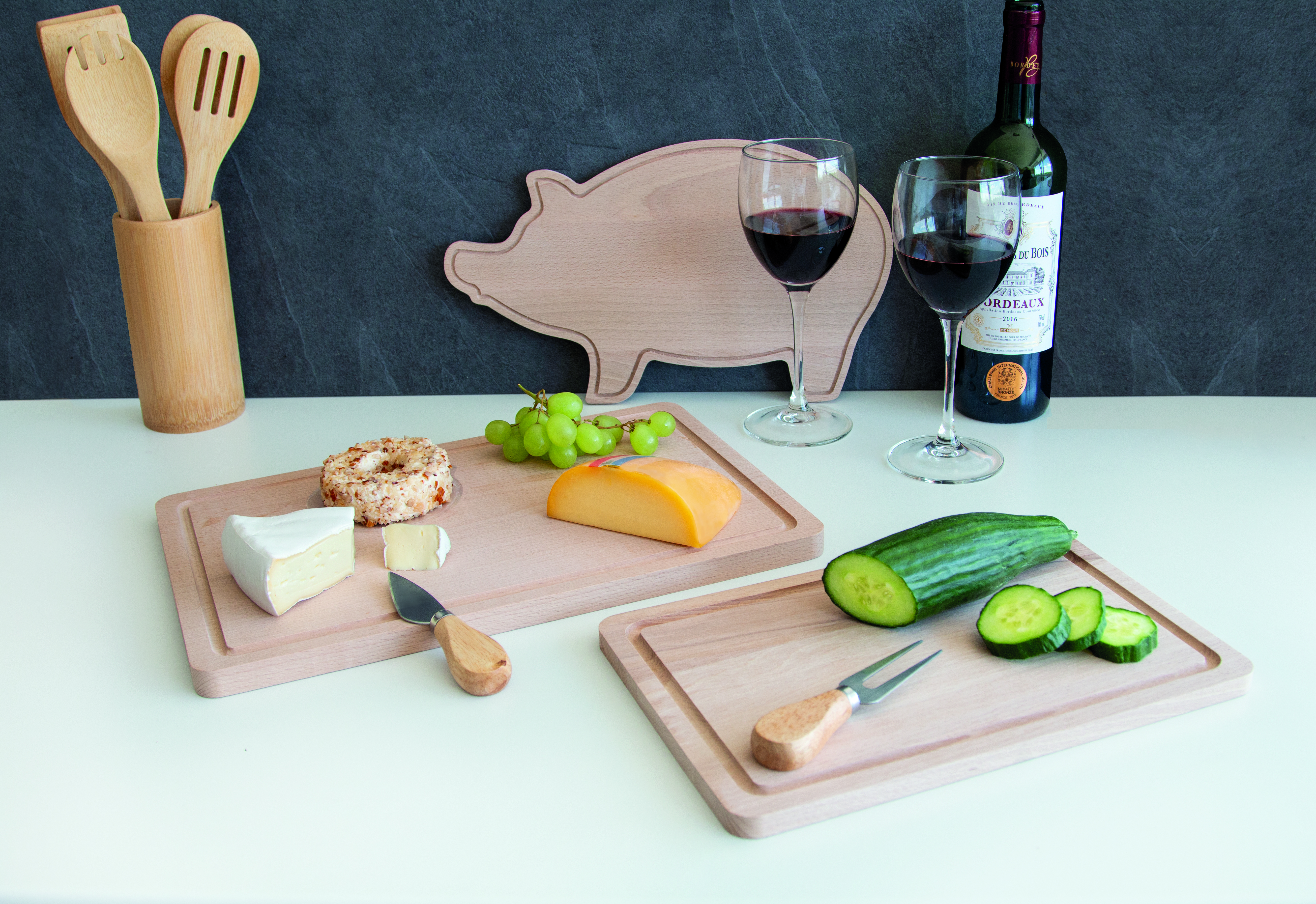 Deska do krojenia WOODEN SQUARE. Drewno bukowe, z praktycznym wyżłobieniem wzdłuż krawędzi. Wyprodukowana w Europie.