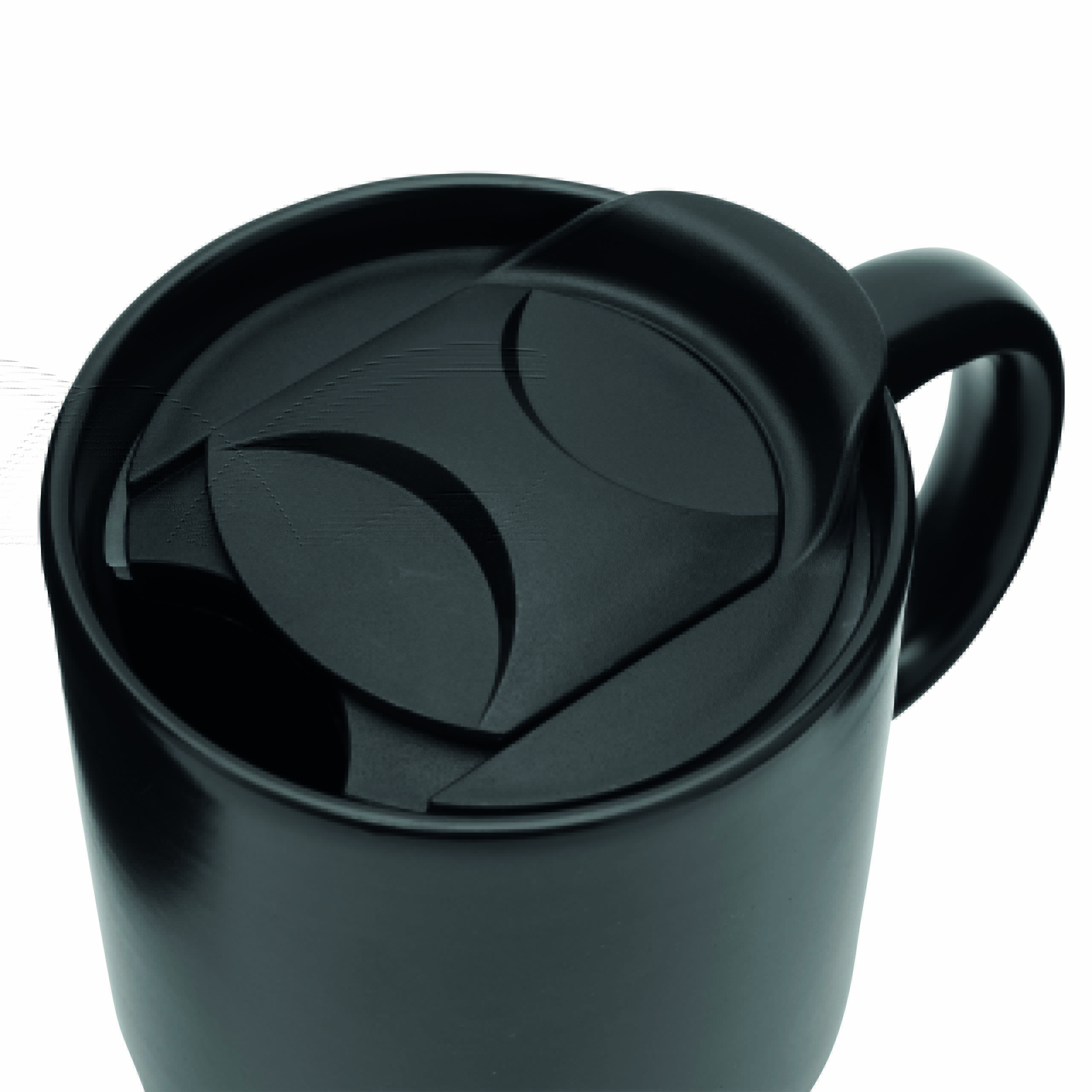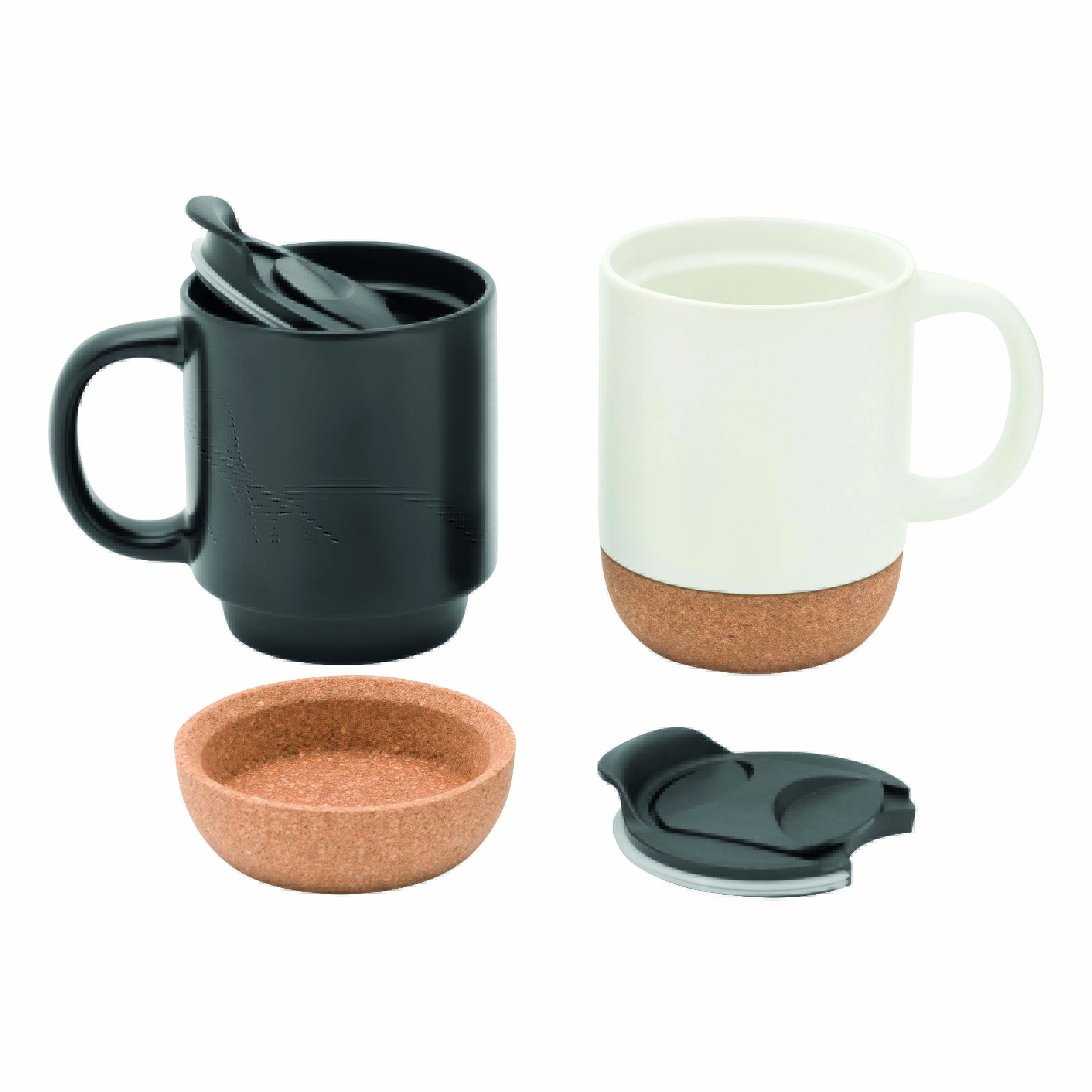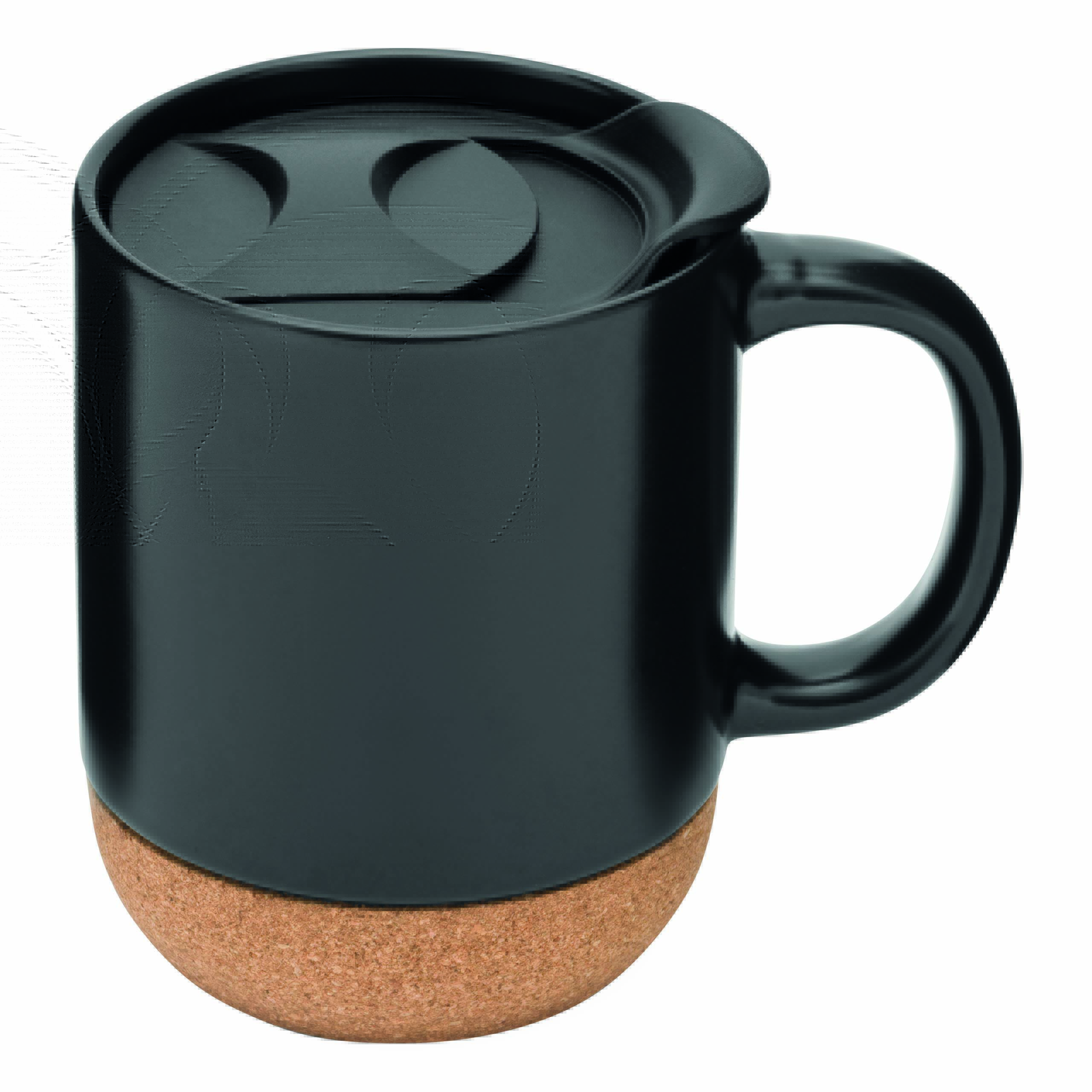 Kubek DAY & NIGHT. Ceramiczny kubek z korkowym dnem, które można zdjąć do czyszczenia. Zdejmowane wieczko. Pojemność ok. 350 ml.