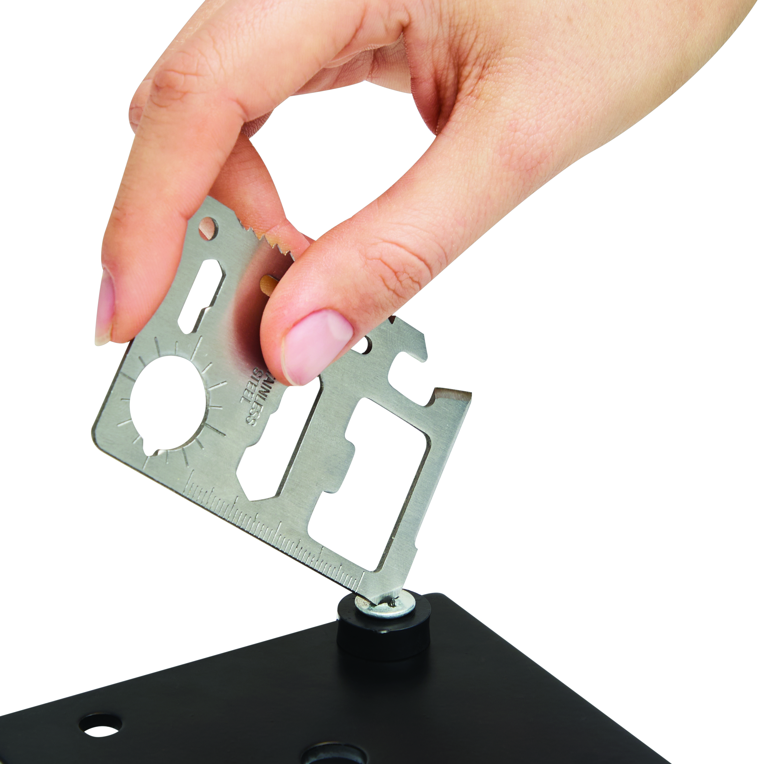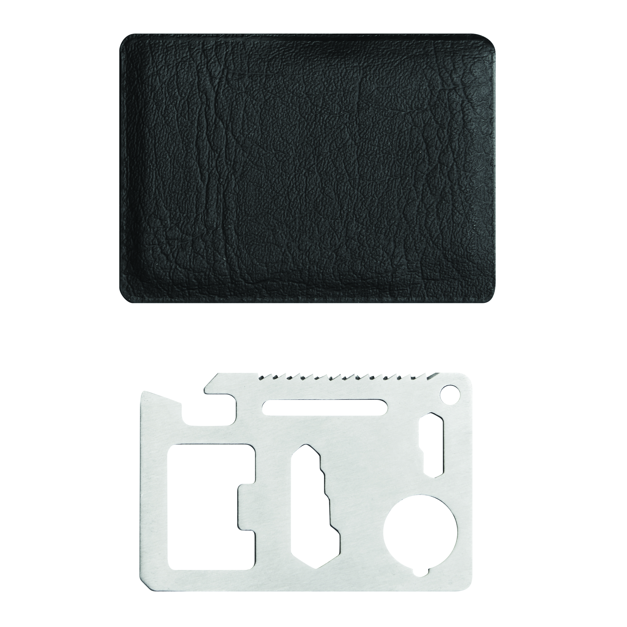Karta wielofunkcyjna POCKET CARDMa ok. 11 funkcji, takich jak otwieracz do puszek, nóż, śrubokręt, linijka, otwieracz do butelek, 4-punktowy klucz do różnych nakrętek i śrub. Dostępna w etui z PU.
