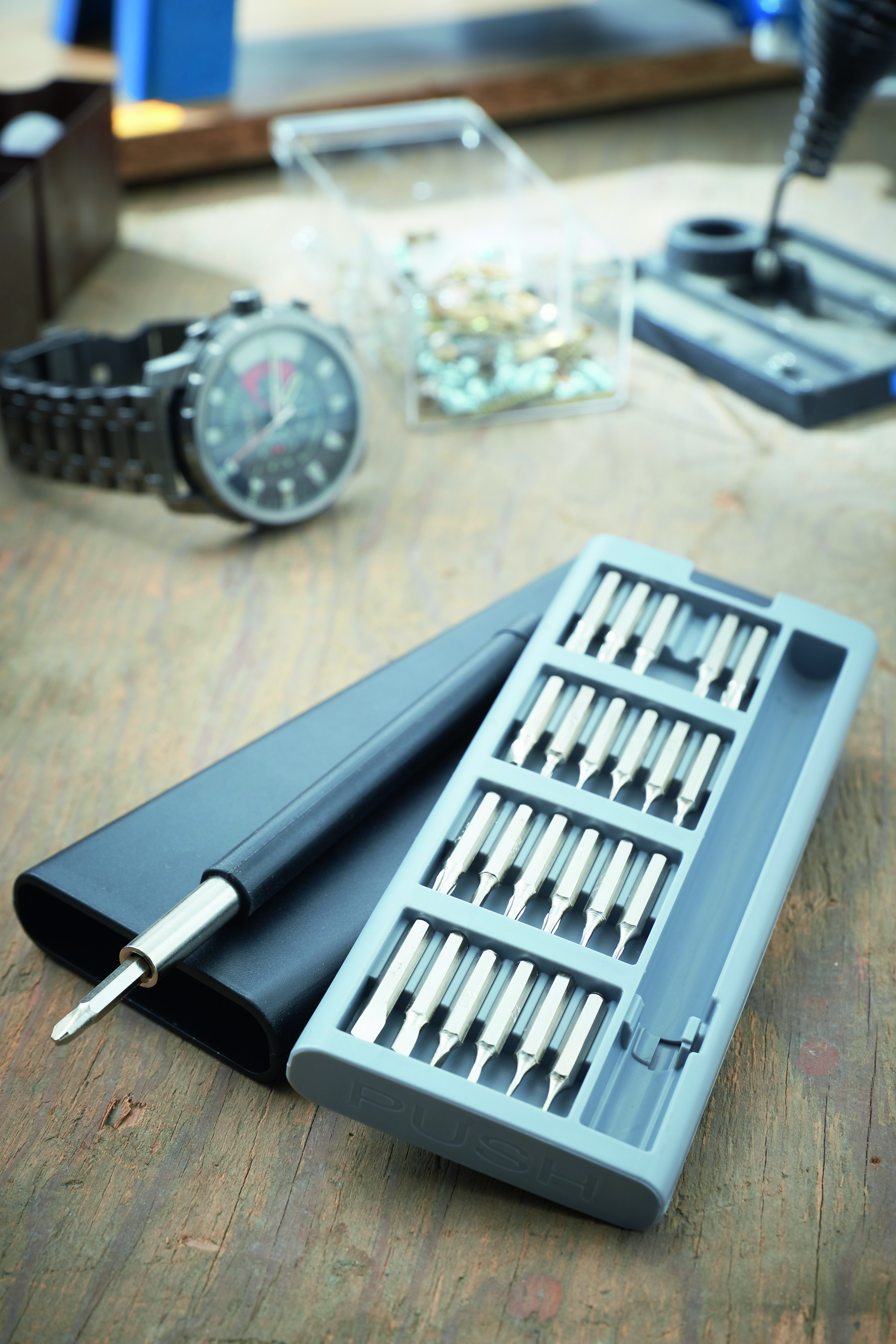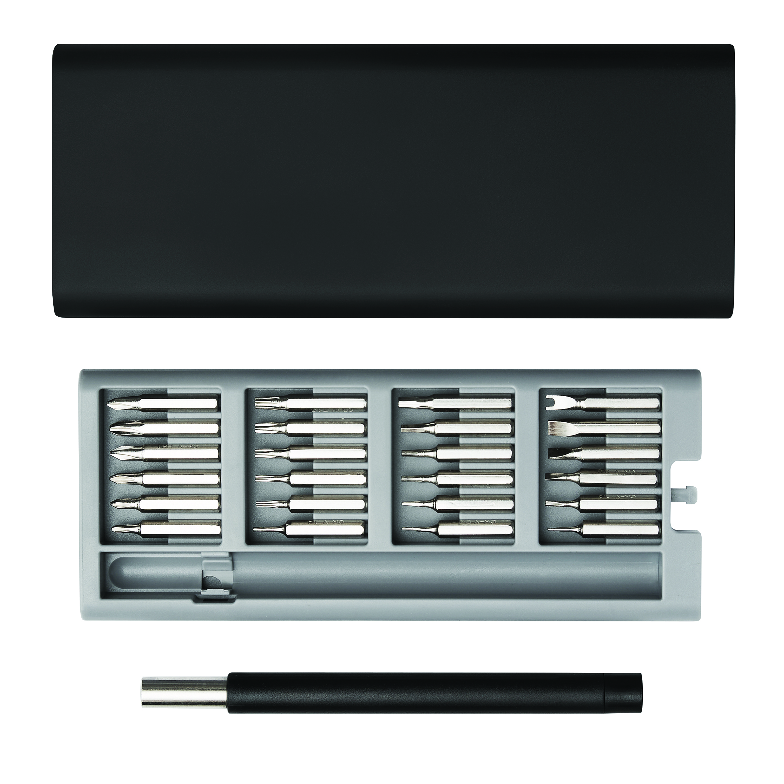 Zestaw wkrętaków BIT PRECISION zawiera śrubokręt i 24 różne końcówki. W poręcznym pudełku z przyciskiem OPEN/CLOSE.
