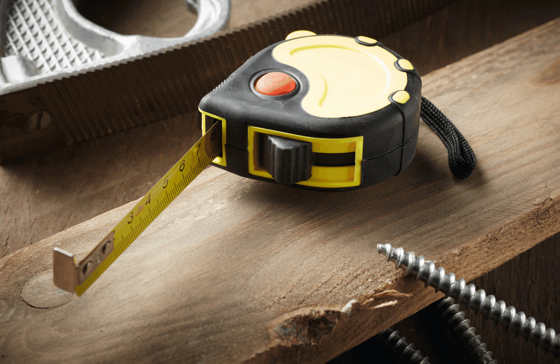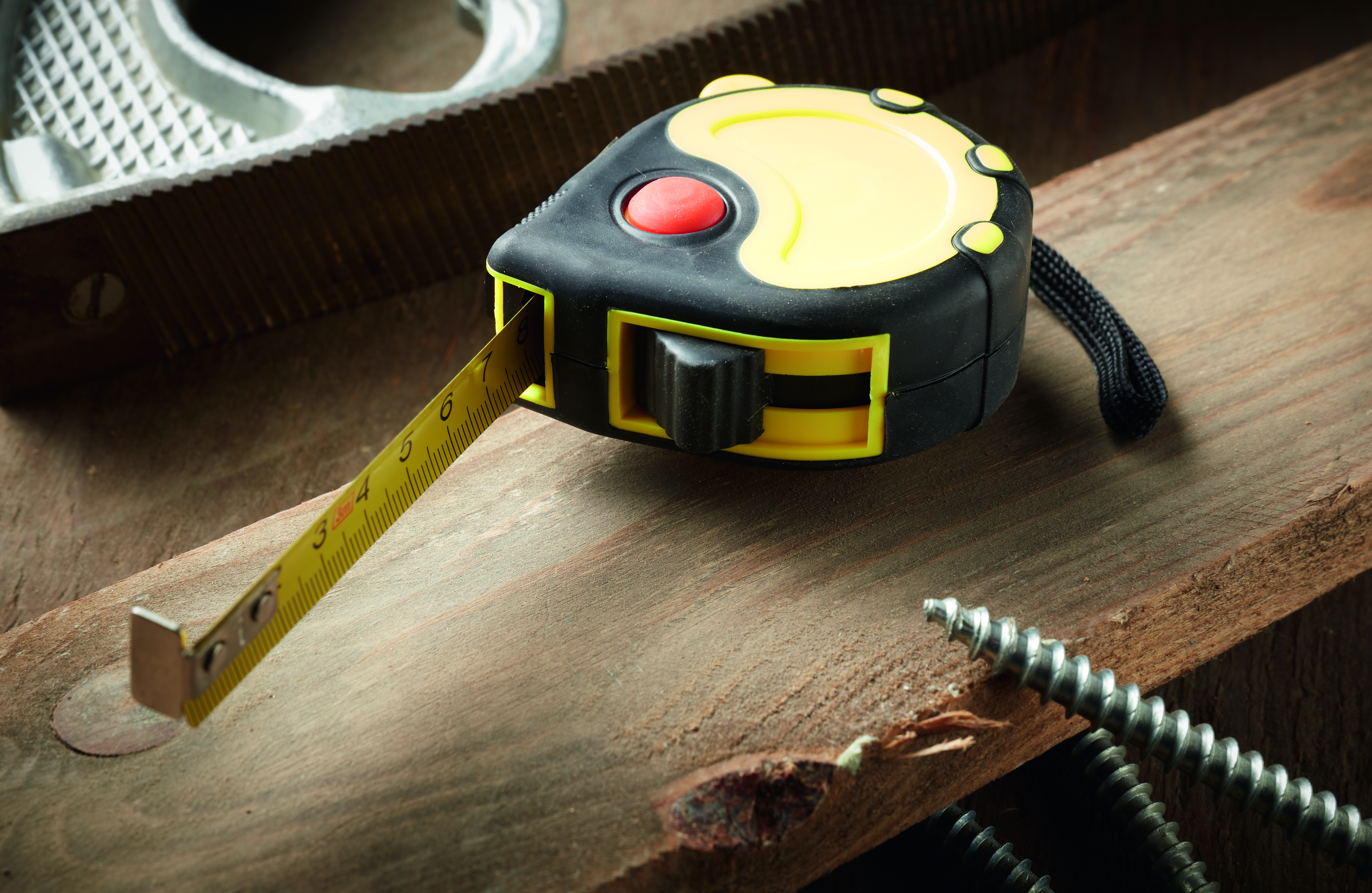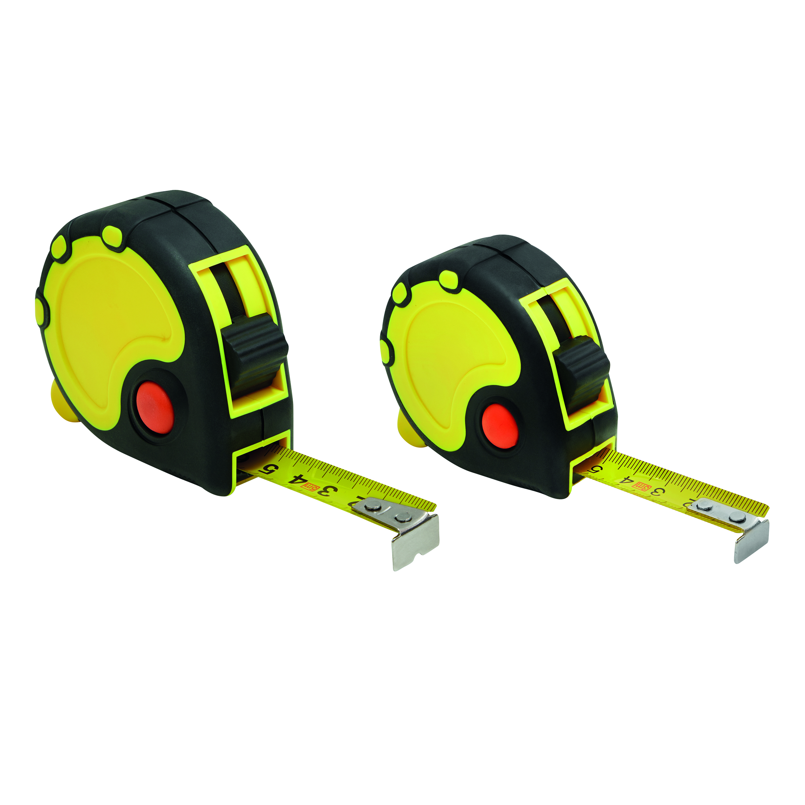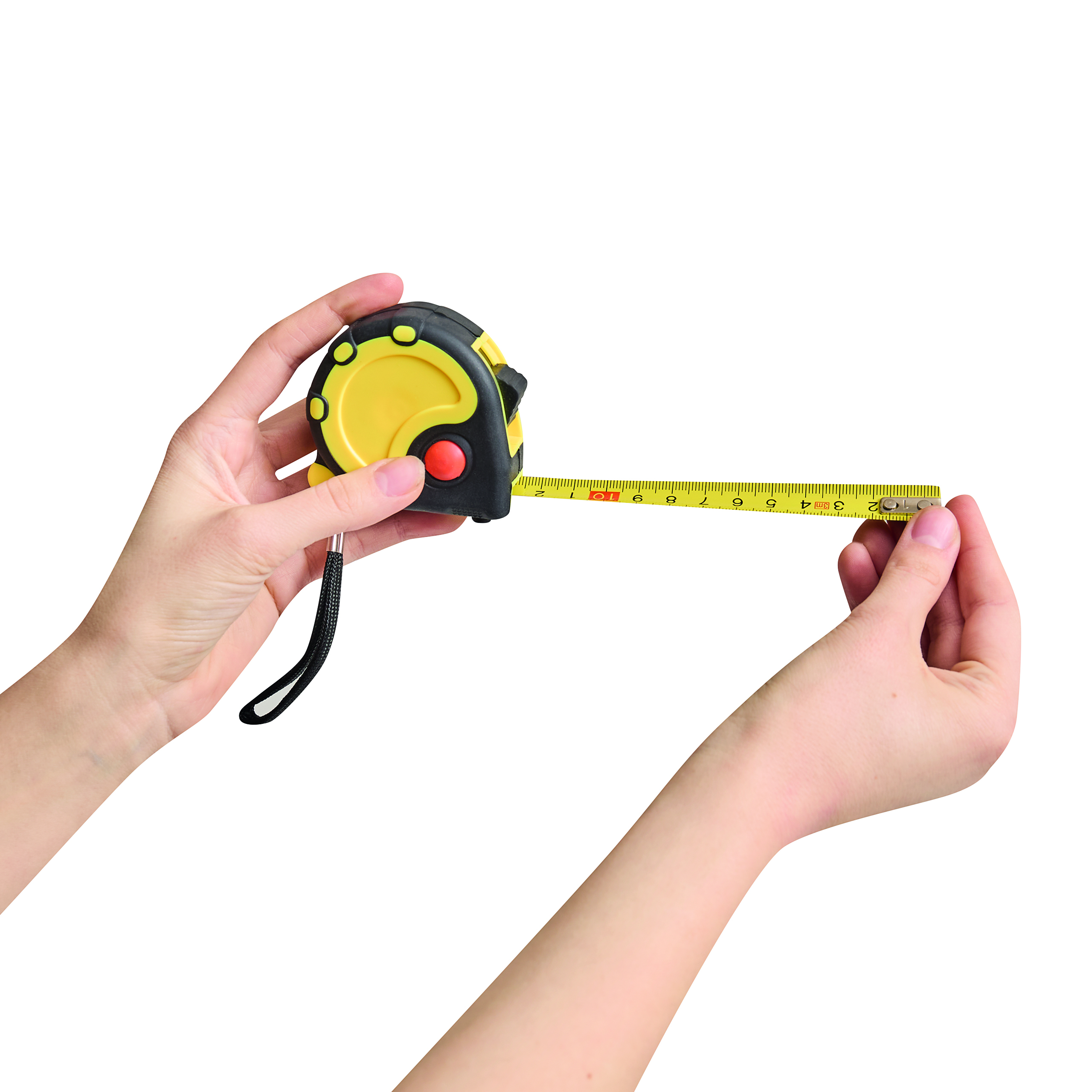 Taśma miernicza BASIC I z żółtą skalą w cm, z klipsem, pętelką na rękę. Powierzchnia obudowy gumowana, automatyczny stoper, 3 m.
