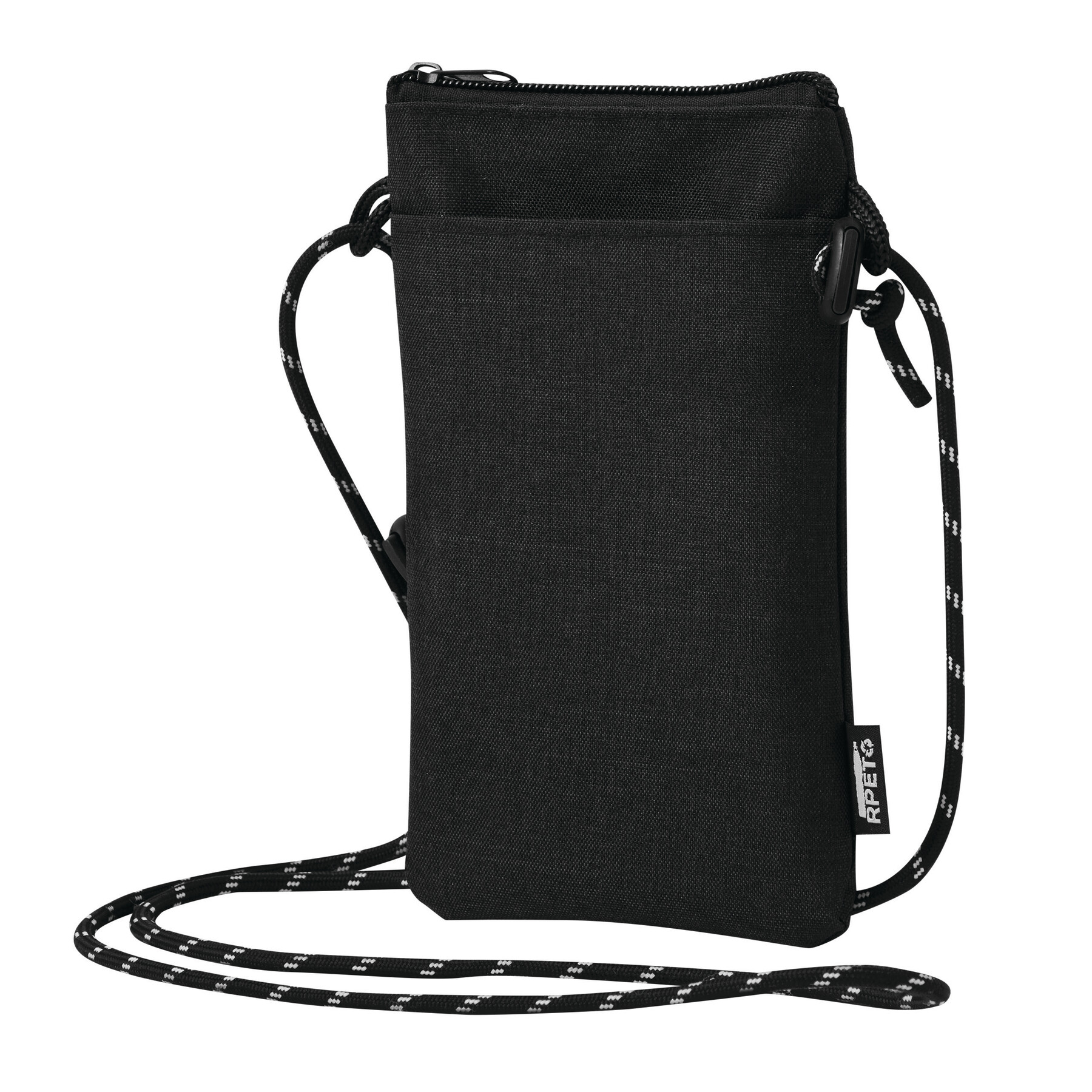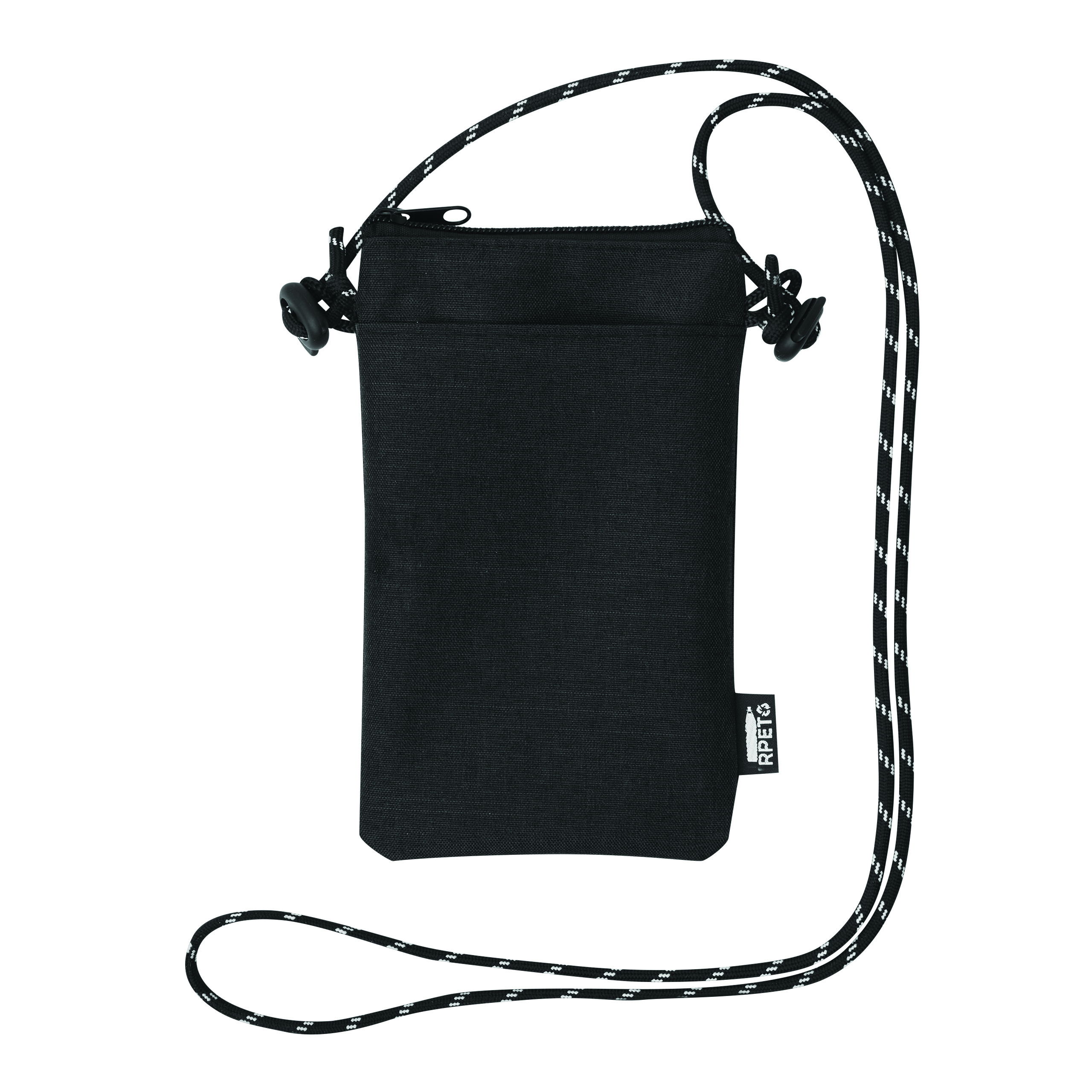 Torba na ramię na telefon URBAN. Uniwersalna torba odpowiednia dla smartfonów. Ma główną komorę zapinaną na zamek błyskawiczny oraz 1 kieszeń z przodu. Wykonana jest z poliestru pochodzącego z recyklingu (rPET). Ma regulowany pasek na ramię (długość ok. 140 cm).