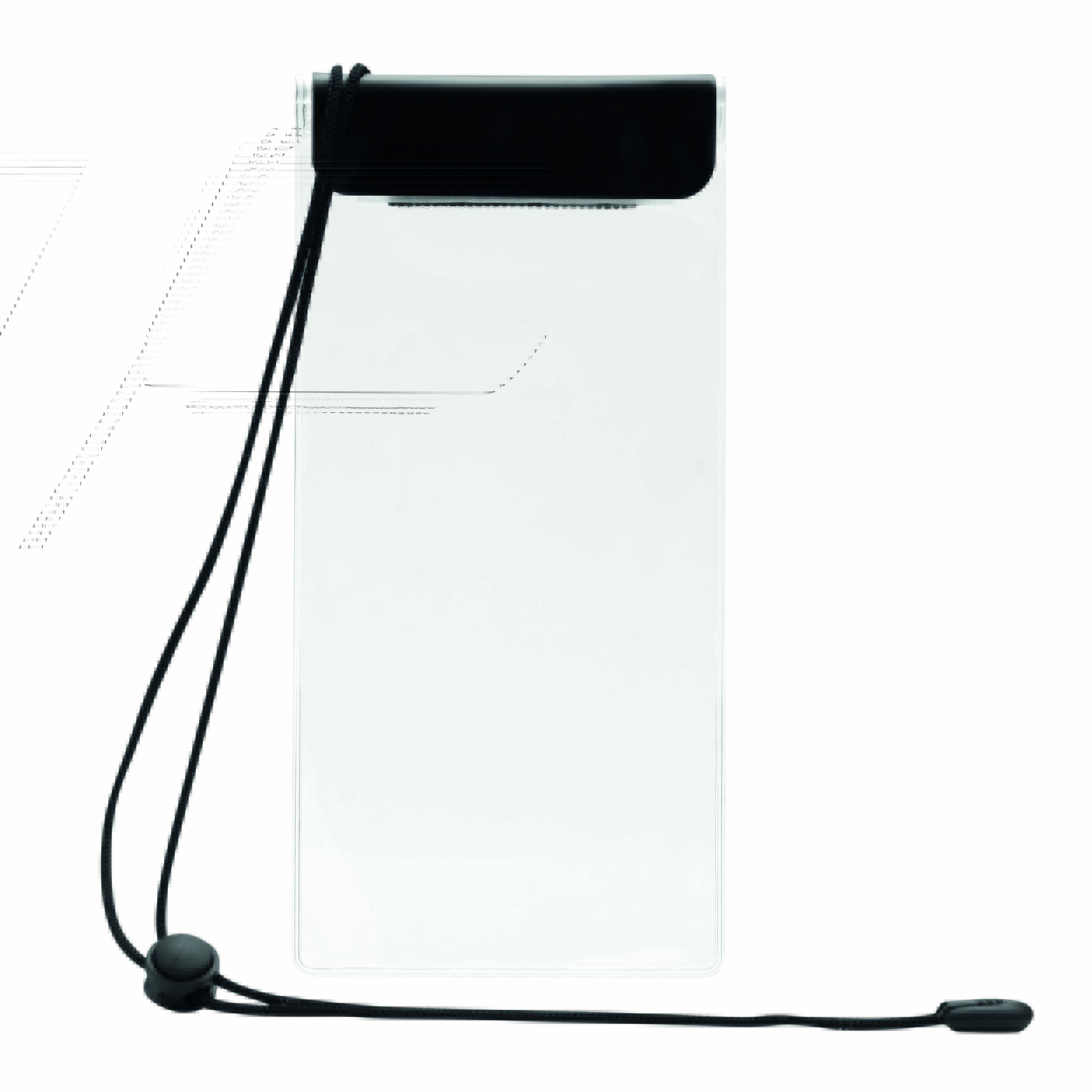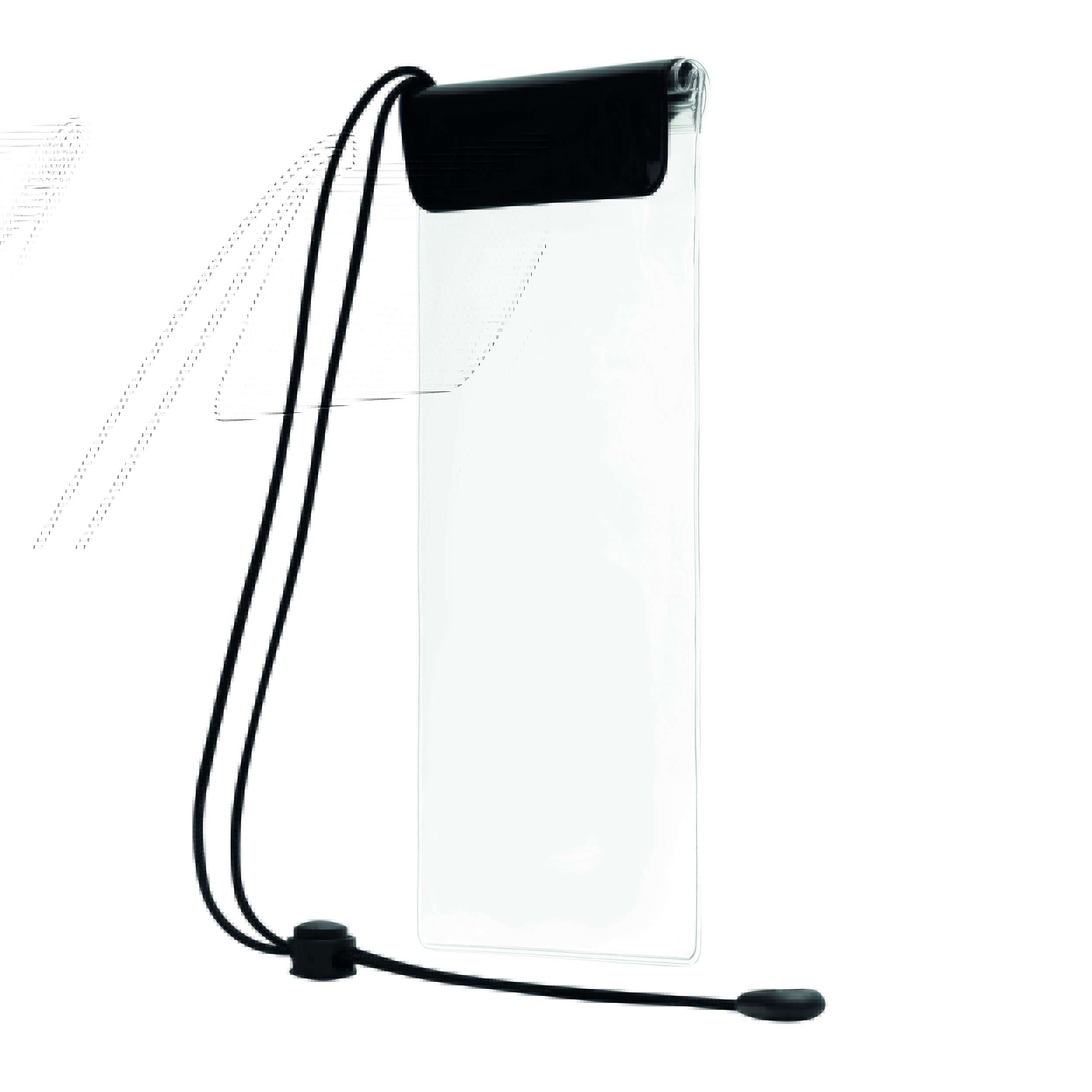 Torba na telefon SMART SPLASH XL odporna na zachlapanie: transparentna, z zamknięciem strunowym, zapięciem na rzep oraz sznurkiem z możliwością regulacji długości (ok. 45 cm) i regulowanym plastikowym stoperem. Idealna na plażę i nad jezioro, do przechowywania smartfona, portfela i innych kosztowności.