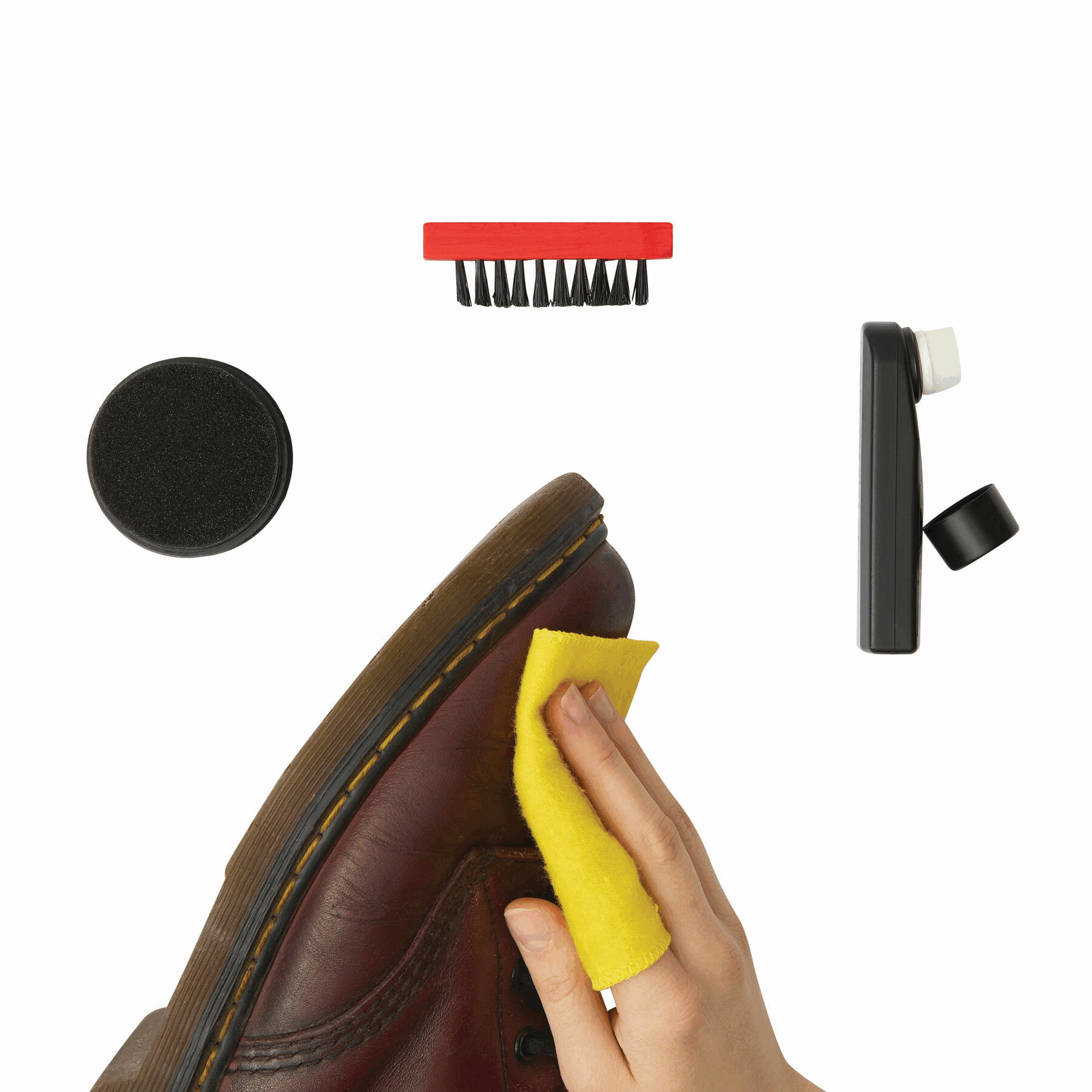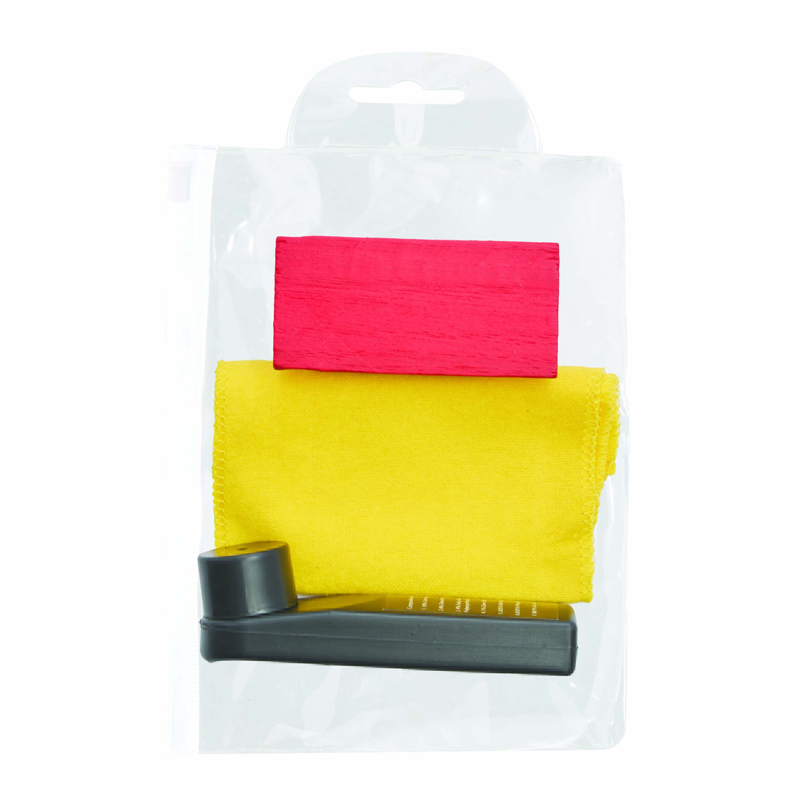 Zestaw do czyszczenia obuwia SMALL SHINE składający się z drewnianej szczotki, ściereczki do polerowania (ok. 23 x 10 cm), bezbarwnego oleju z gąbką do aplikowania, gąbki z bezbarwnym olejem silikonowym. W przezroczystym opakowaniem z zamkiem.