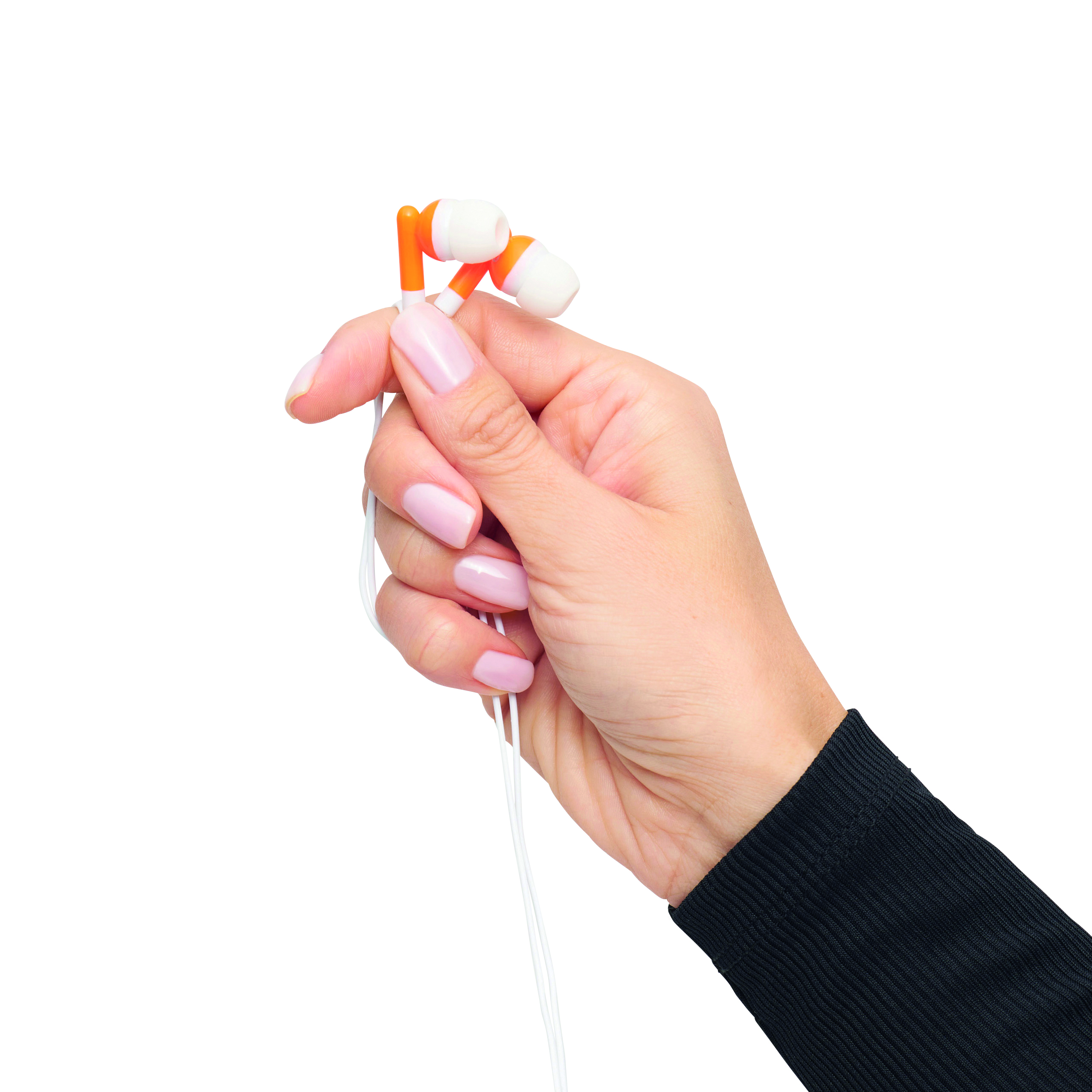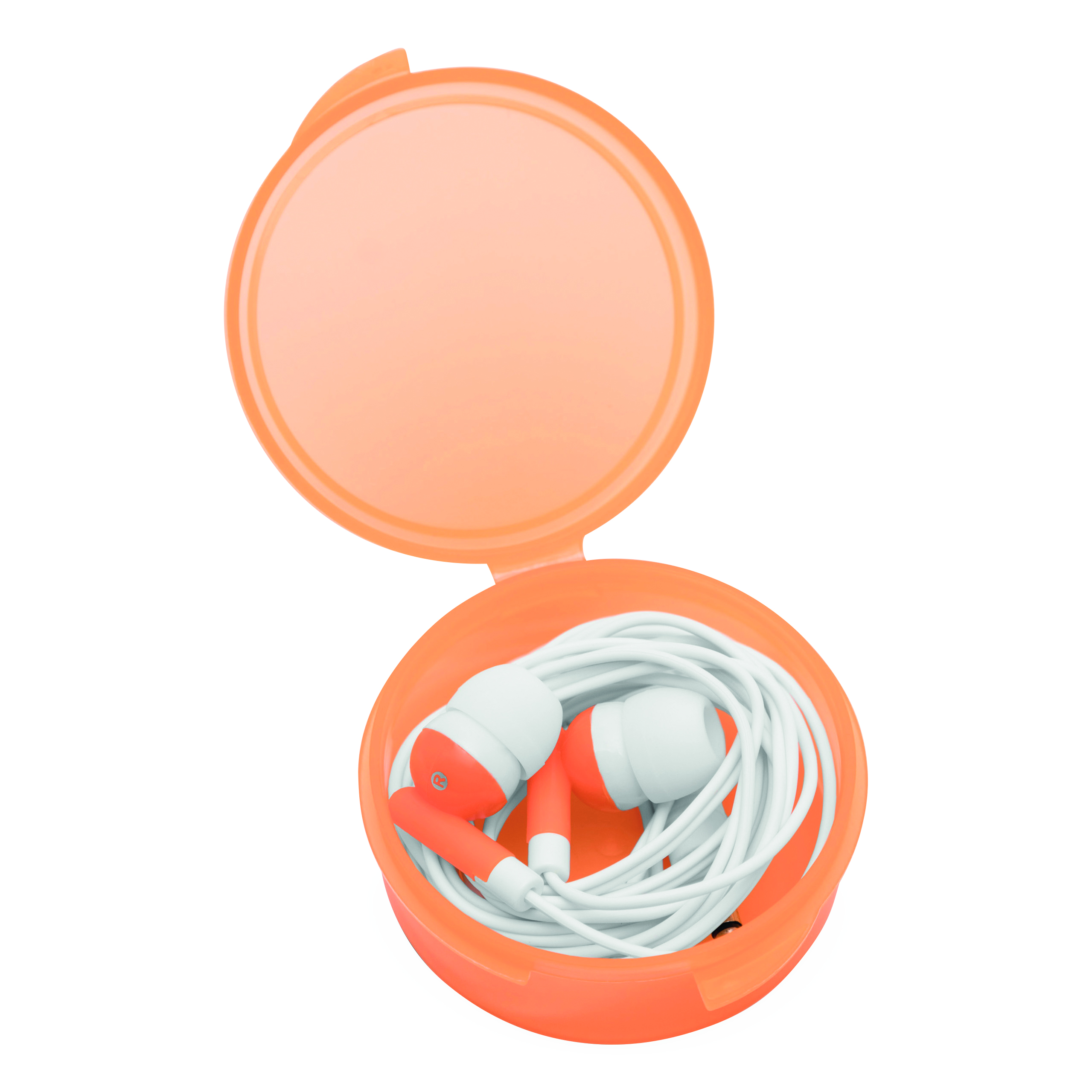 Słuchawki douszne MUSIC. Jack 3,5 mm, długość kabla ok. 117 cm, pakowane w pudełko w tym samym kolorze.