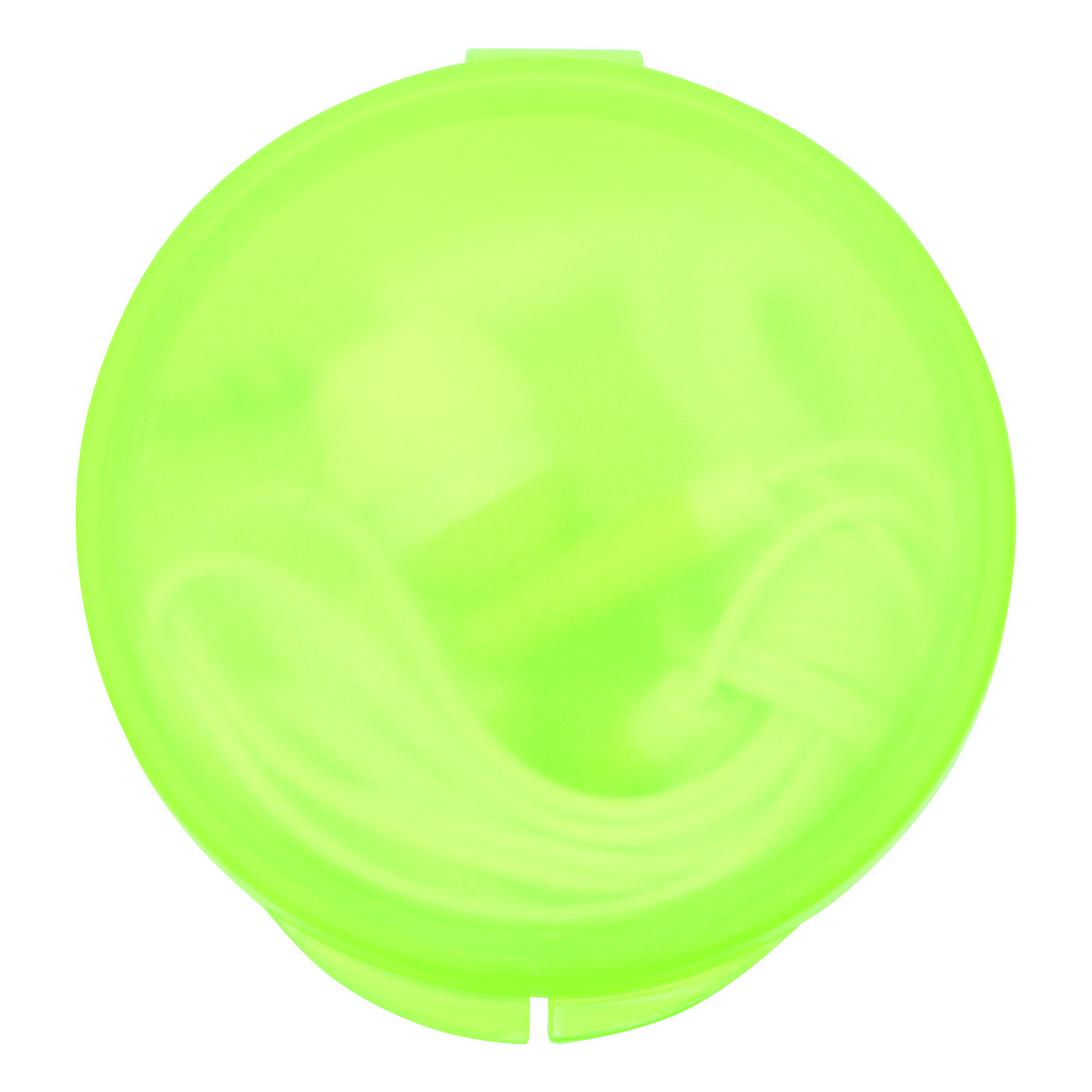 Słuchawki douszne MUSIC. Jack 3,5 mm, długość kabla ok. 117 cm, pakowane w pudełko w tym samym kolorze.