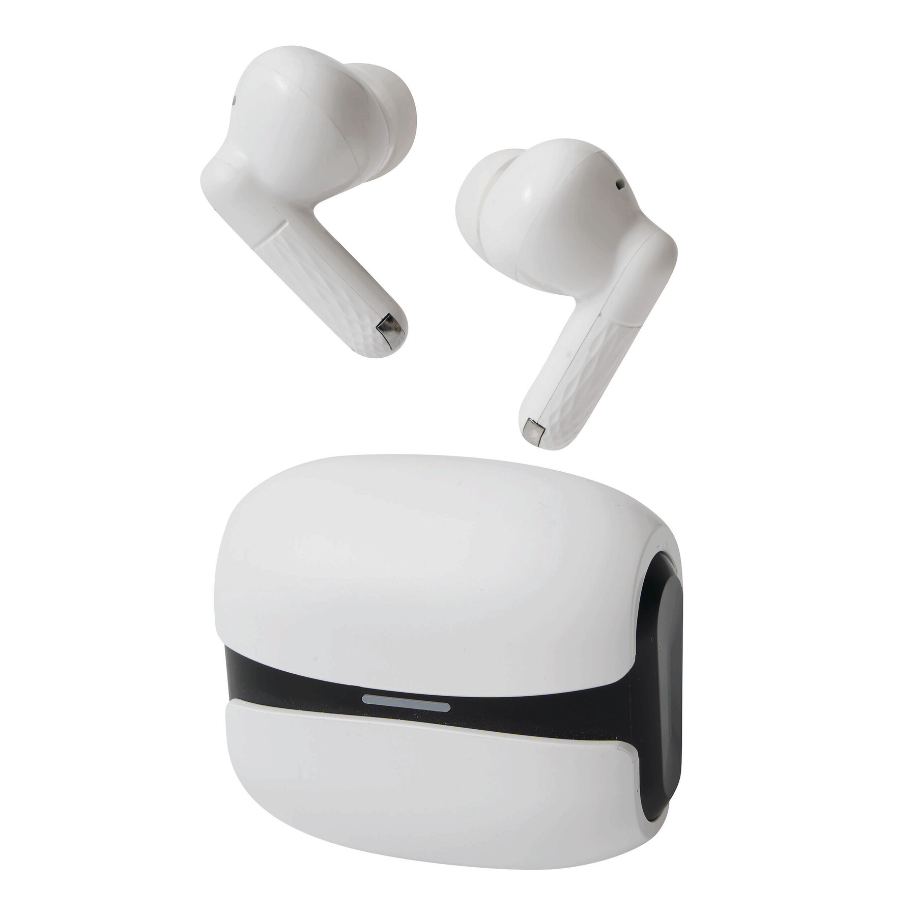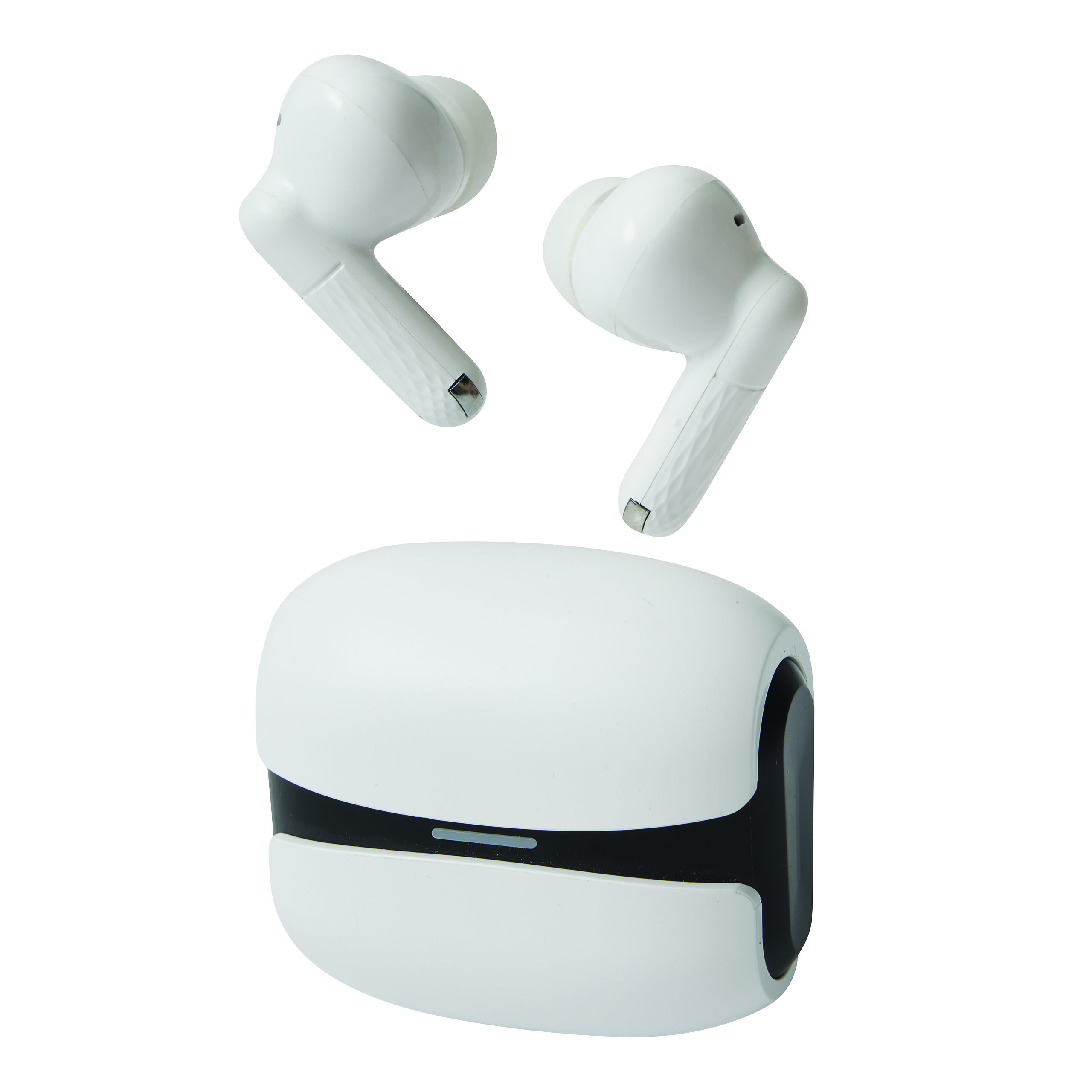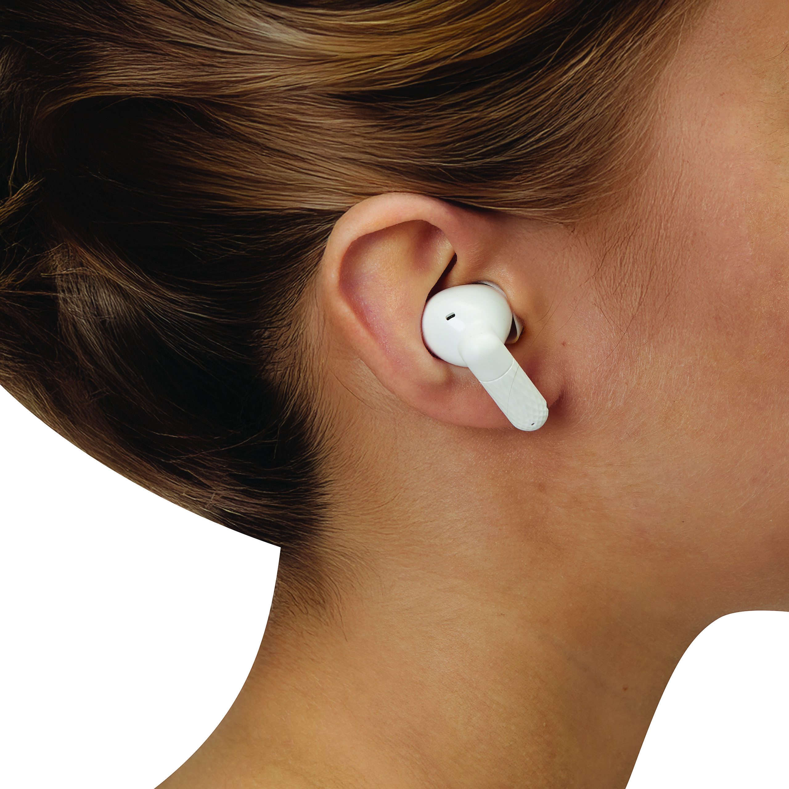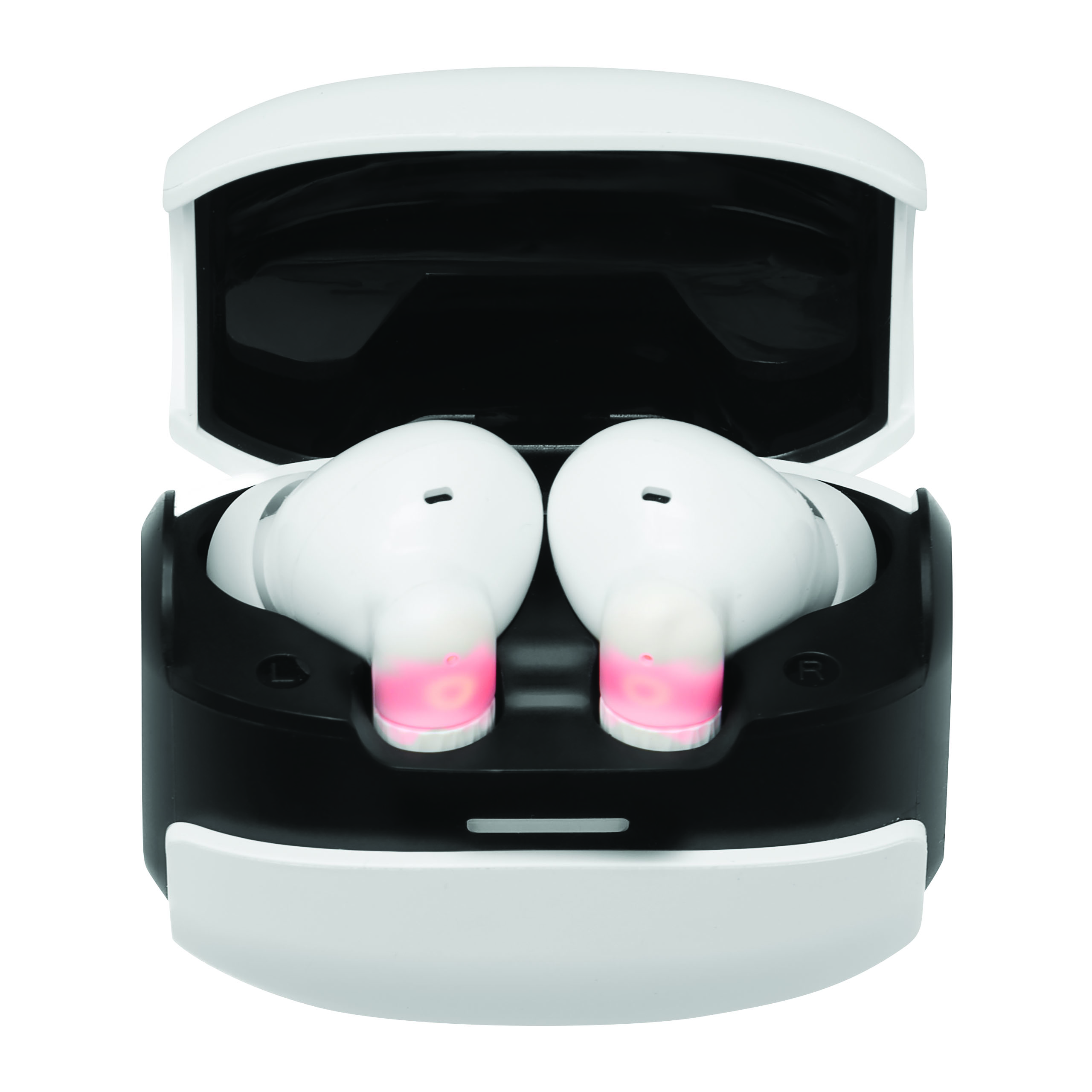 Bezprzewodowe słuchawki douszne RHYTHM. Mają funkcją głośnomówiącą i zasięg ok. 10 m, są kompatybilne z Bluetooth®. Posiadają przycisk wielofunkcyjny do odbierania i kończenia połączeń, a także odtwarzania/wstrzymywania muzyki, zmiany utworu i regulacji głośności oraz czerwoną diodę LED (kontrola ładowania). Można ich używać również pojedynczo. W zestawie jest kabel USB do ładowania ze złączem typu C (długość ok. 20 cm) i etui do przechowywania, które służy również jako stacja ładująca. Pojemność słuchawek to 28 mAh, a etui do ładowania: 150 mAh. Zapakowane są w pudełko.