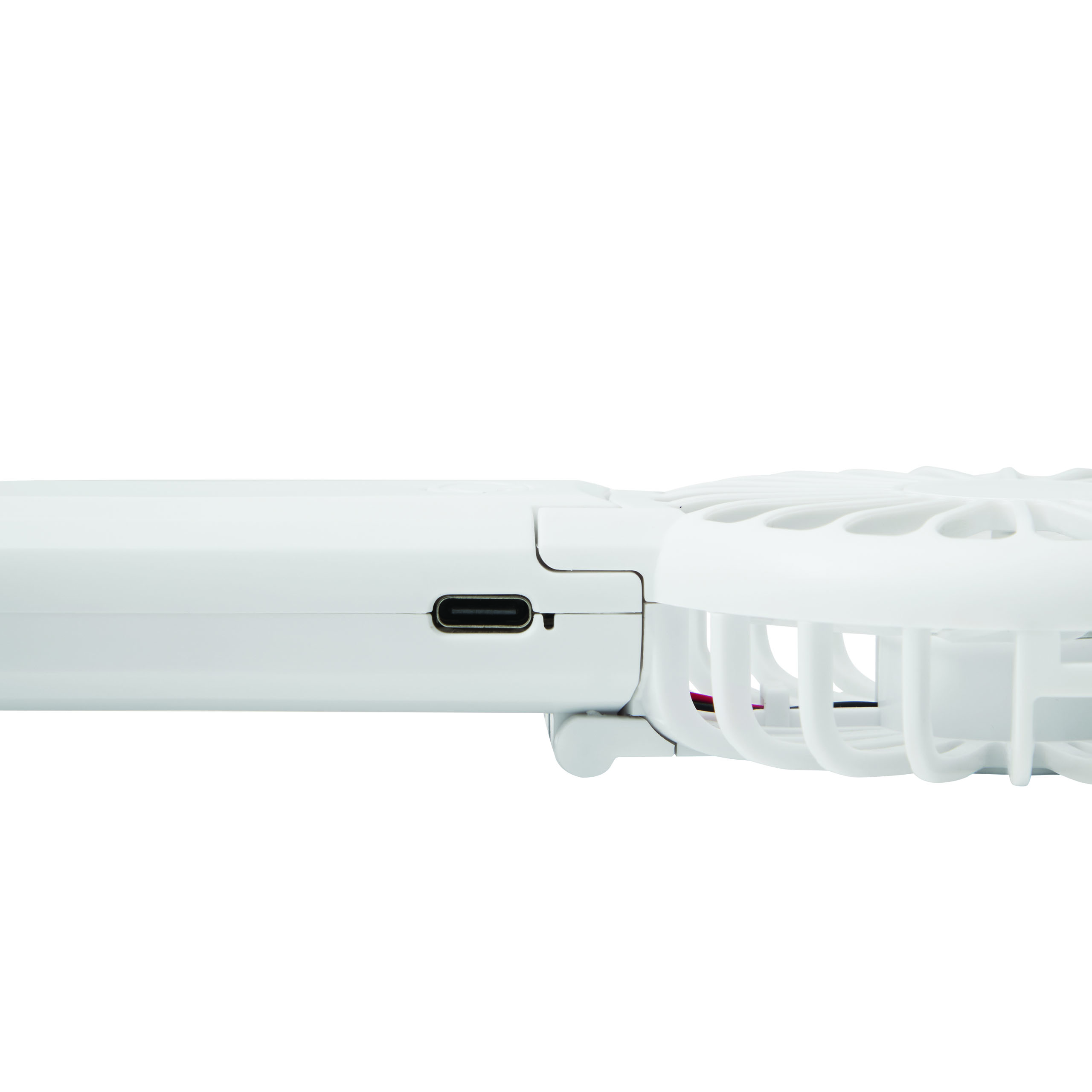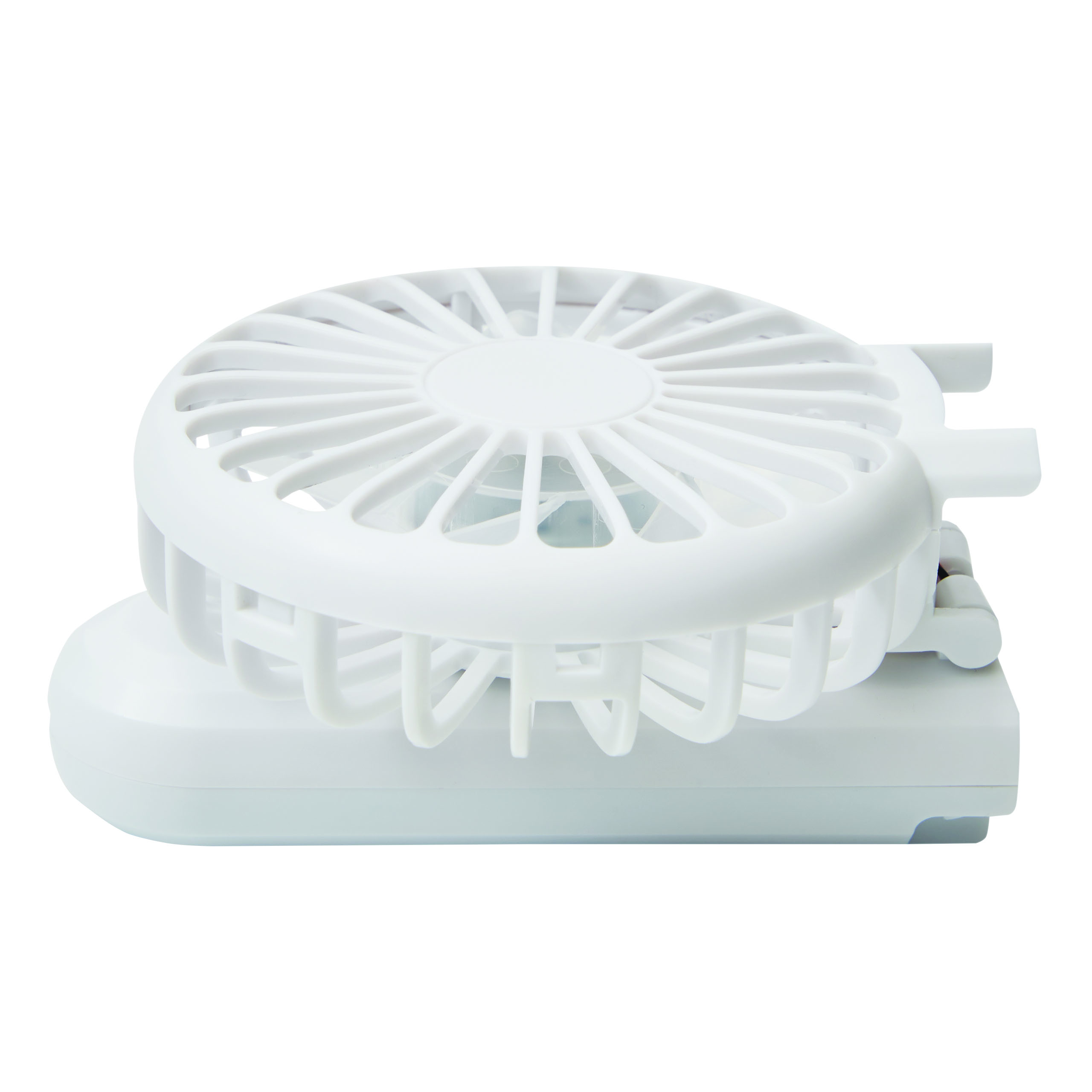 Przenośny wentylator TYPHOON. Składany miniwentylator z 3 ustawieniami prędkości. Posiada akumulator litowy o pojemności 300 mAh oraz kabel do ładowania USB-C (ok. 30 cm). Zapakowany jest w pudełko.