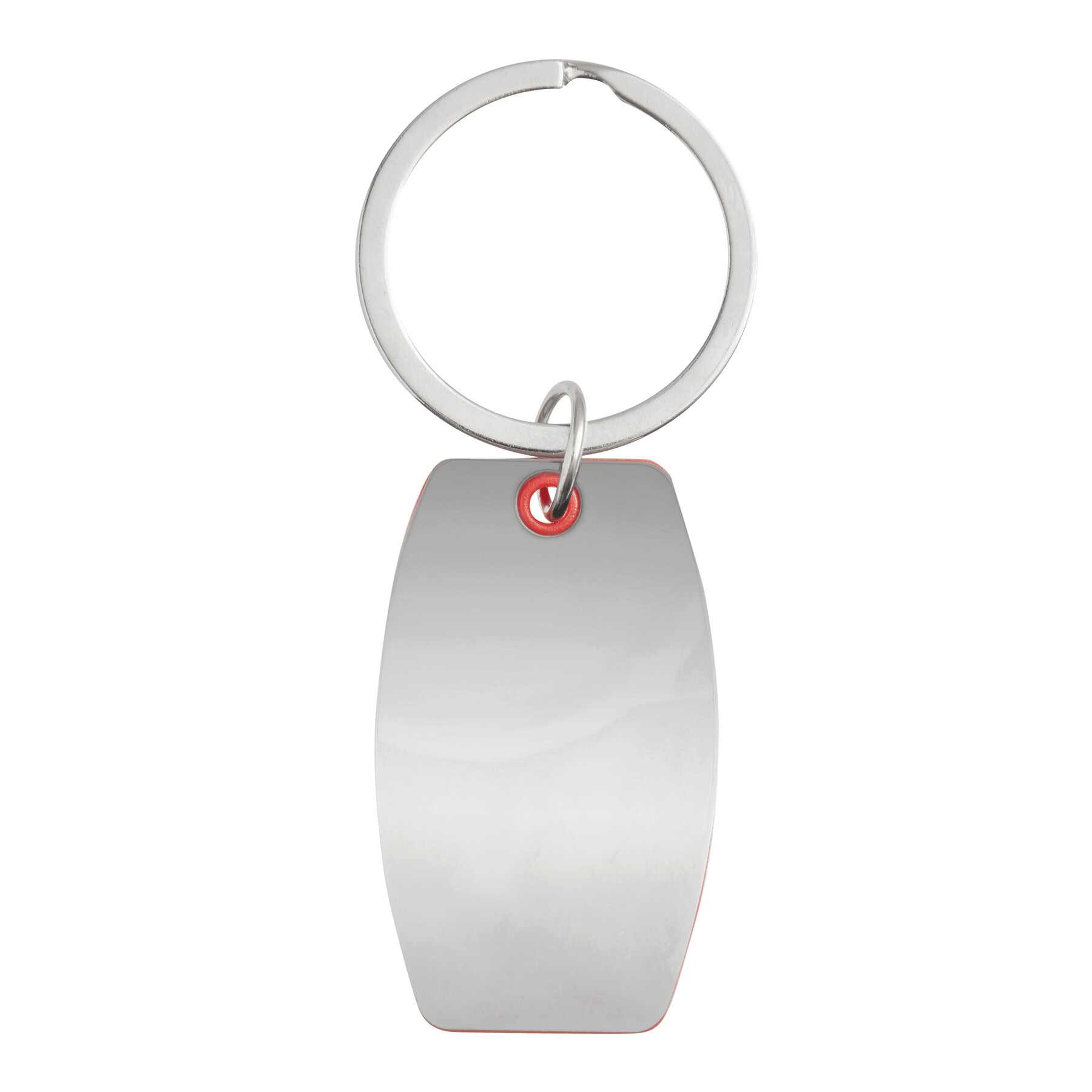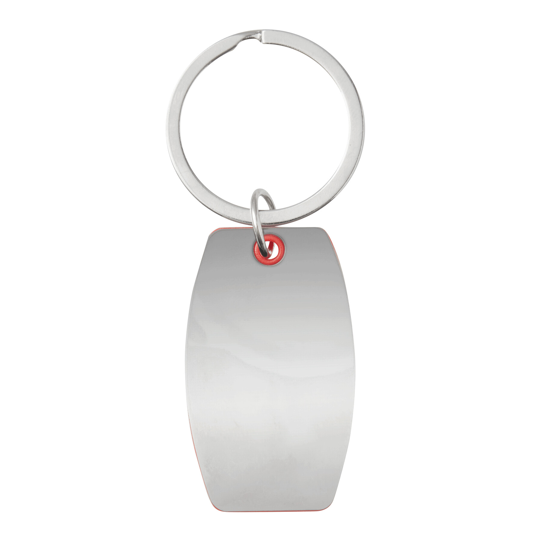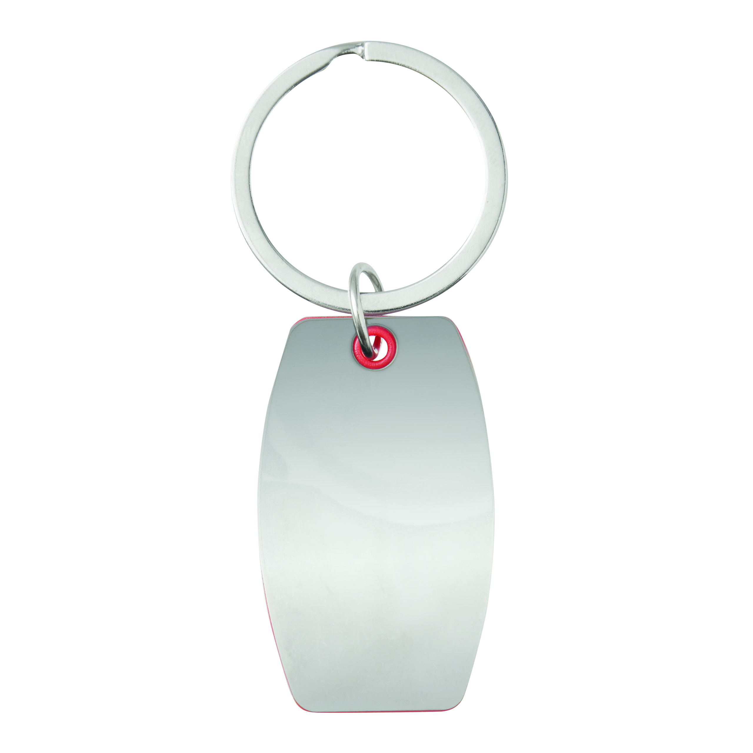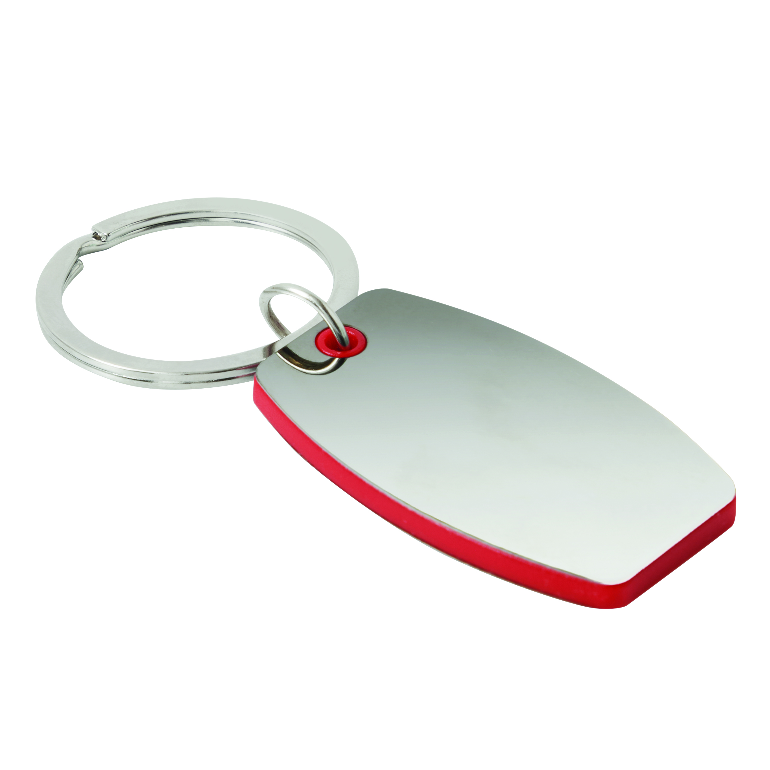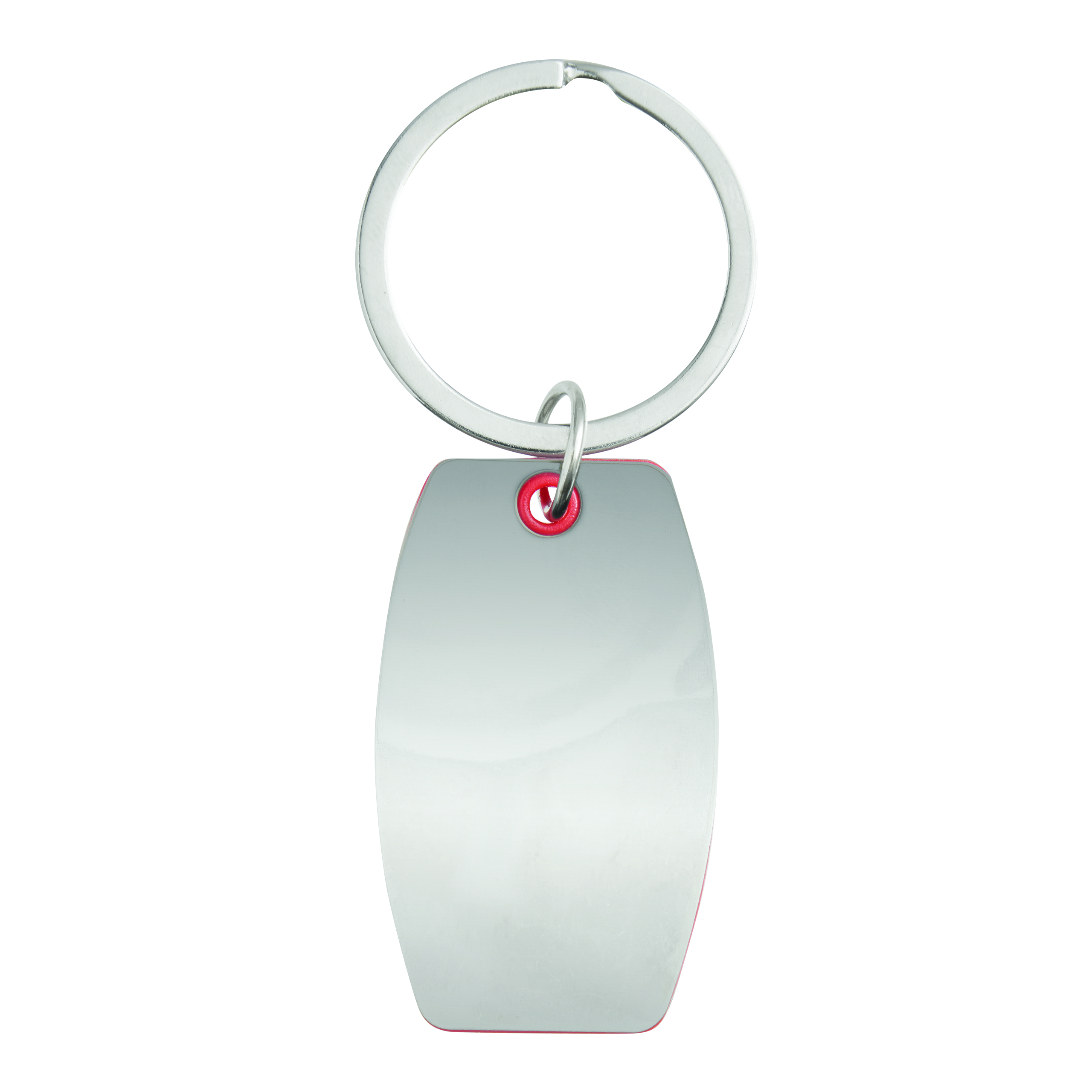 Breloczek do kluczy MIRROR. Jest to kolorowy plastikowy element pomiędzy polerowanymi na wysoki połysk stalowymi płytkami.