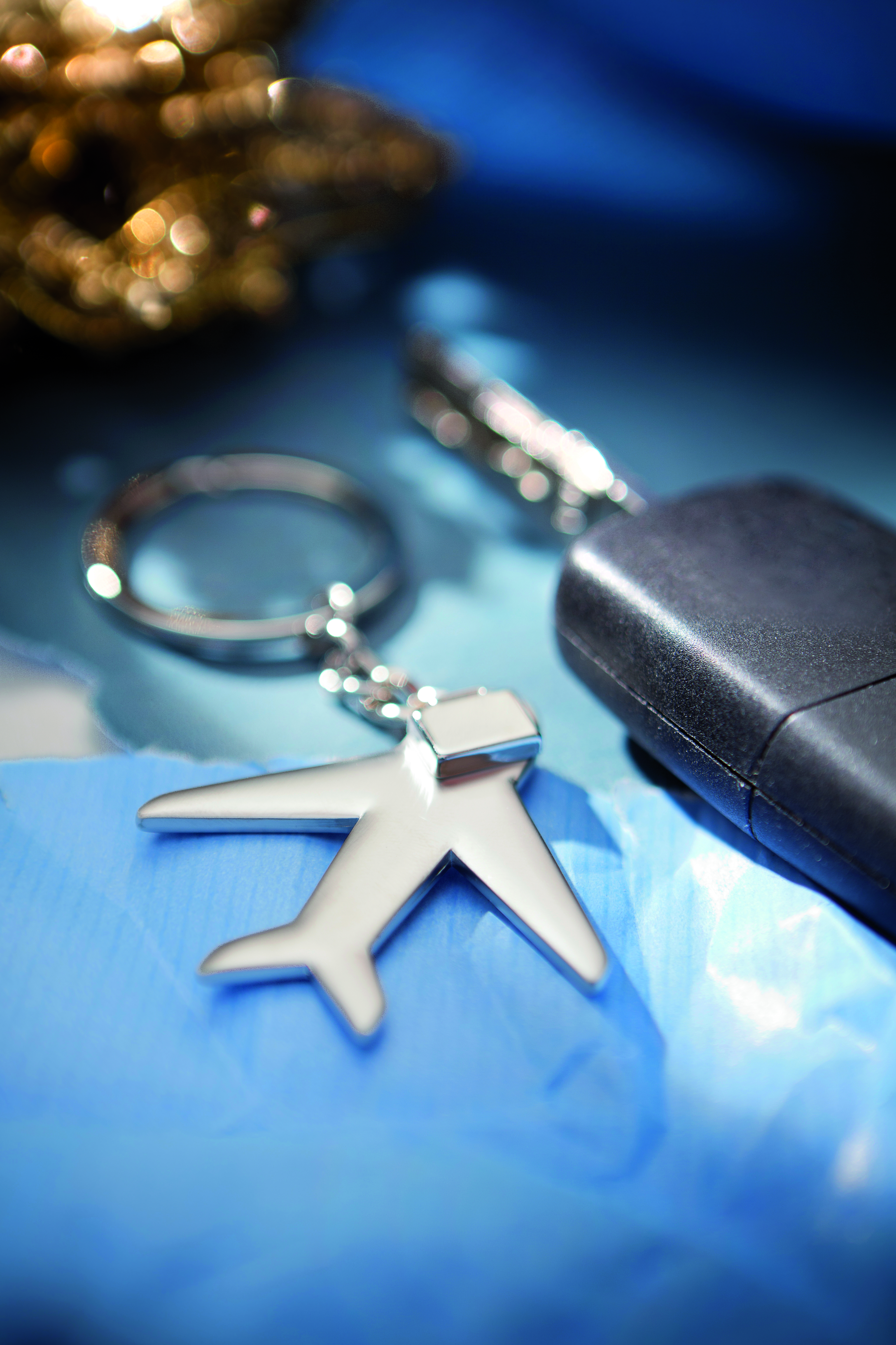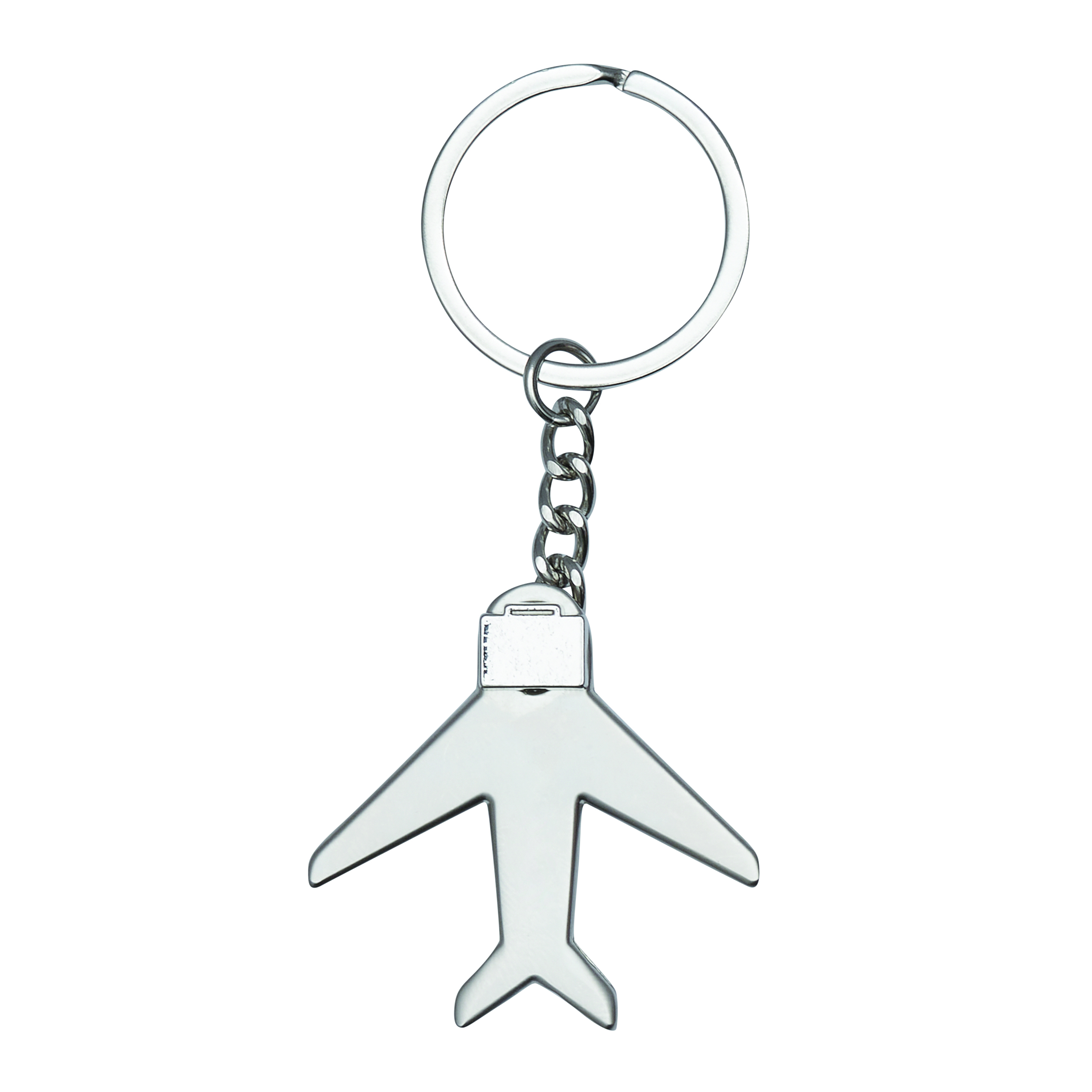 Brelok na klucze AIRCARFT, wykonany z metalu, w kształcie samolotu.