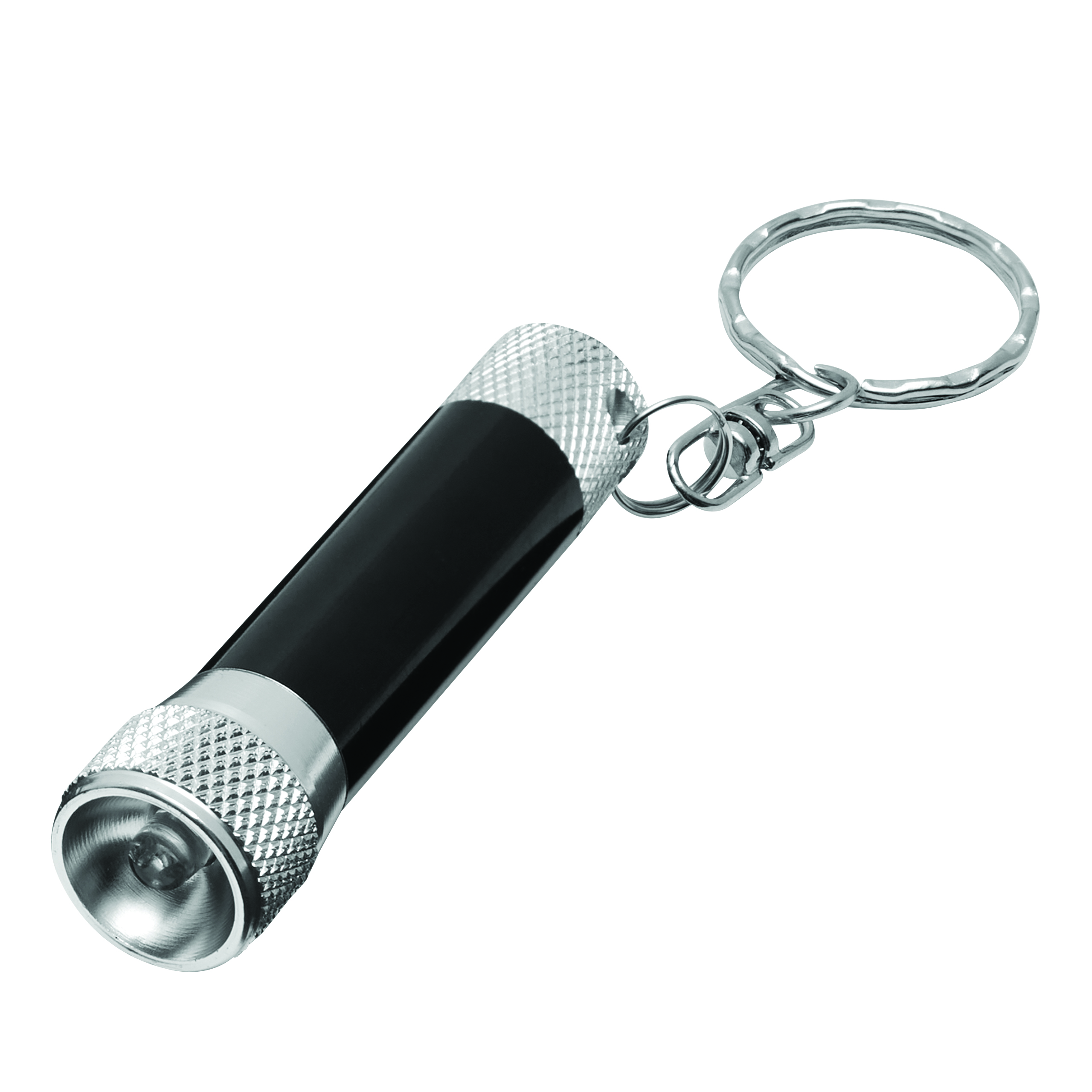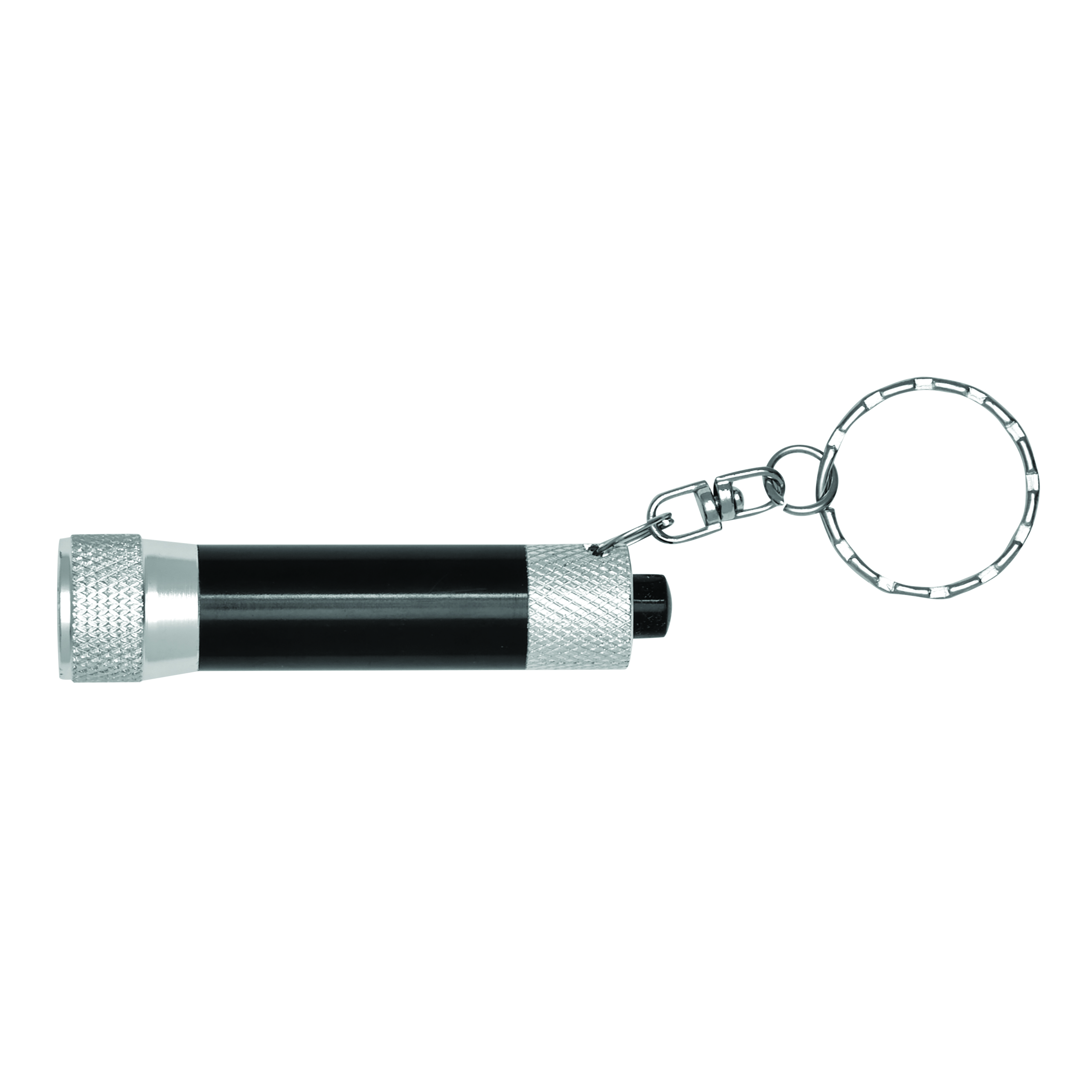 Breloczek FLARE z latarką LED oraz gumowym przyciskiem ON/OFF.