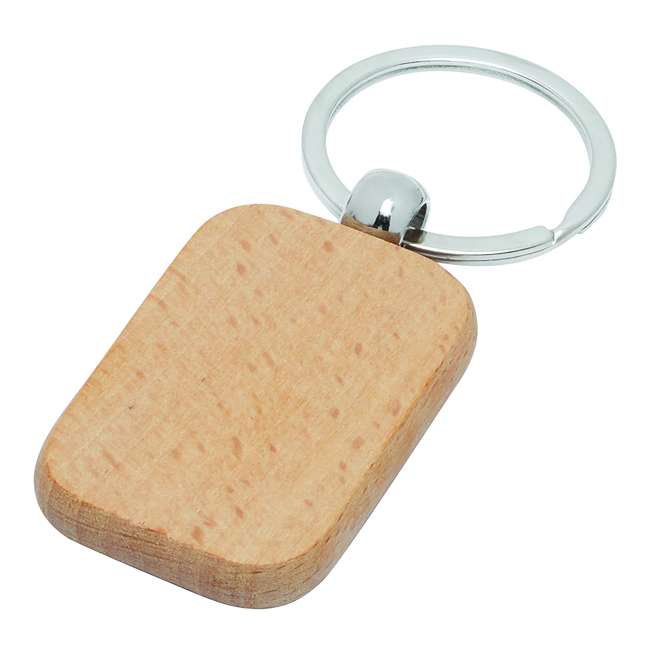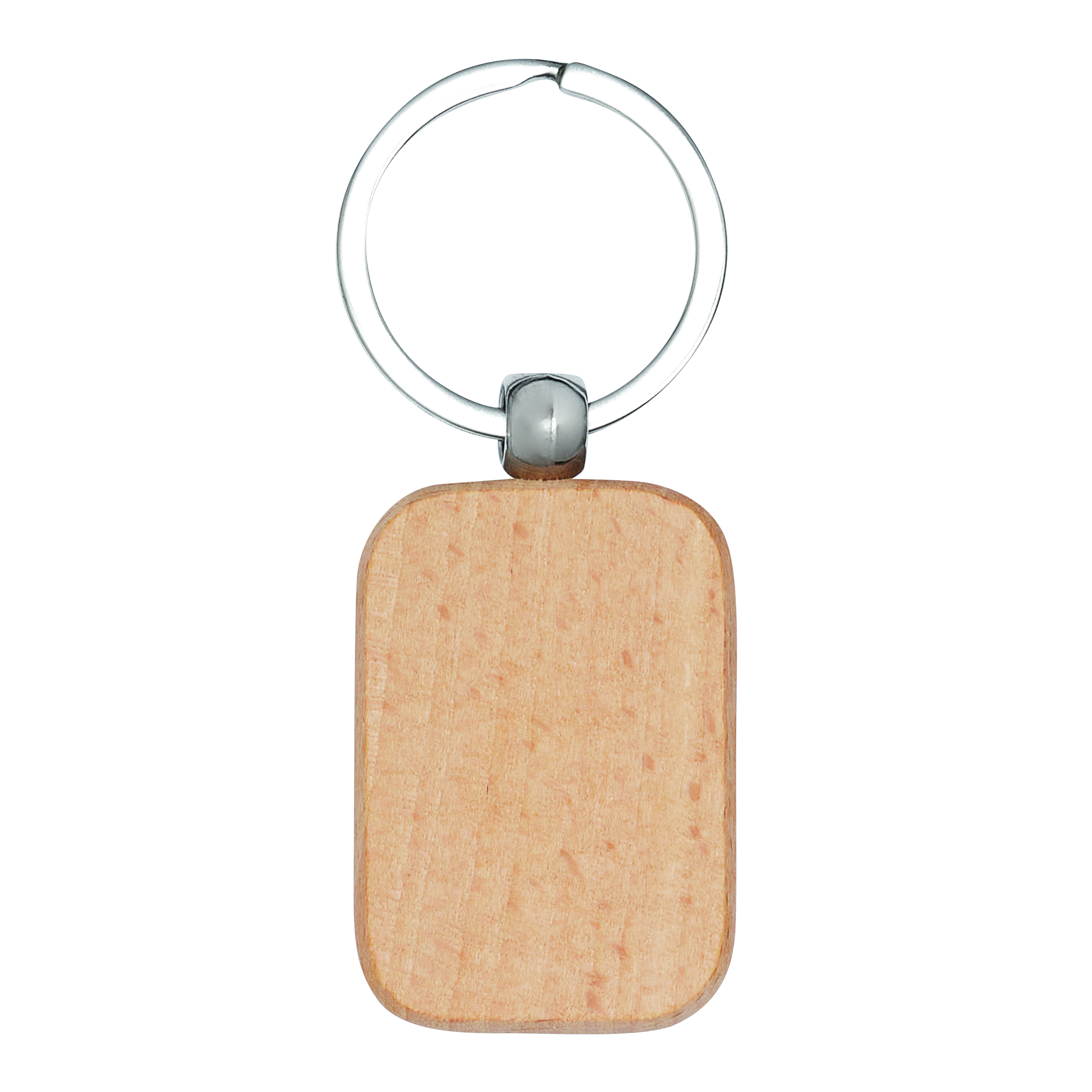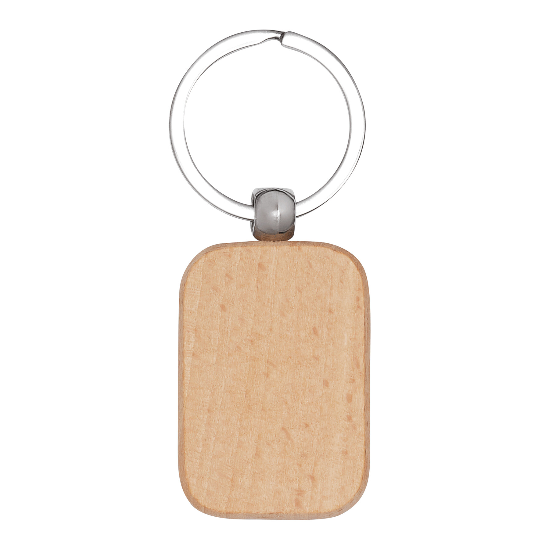 Brelok na klucze TIMBER, drewniany, prostokątny, z kółkiem na klucze w kolorze srebrnym.