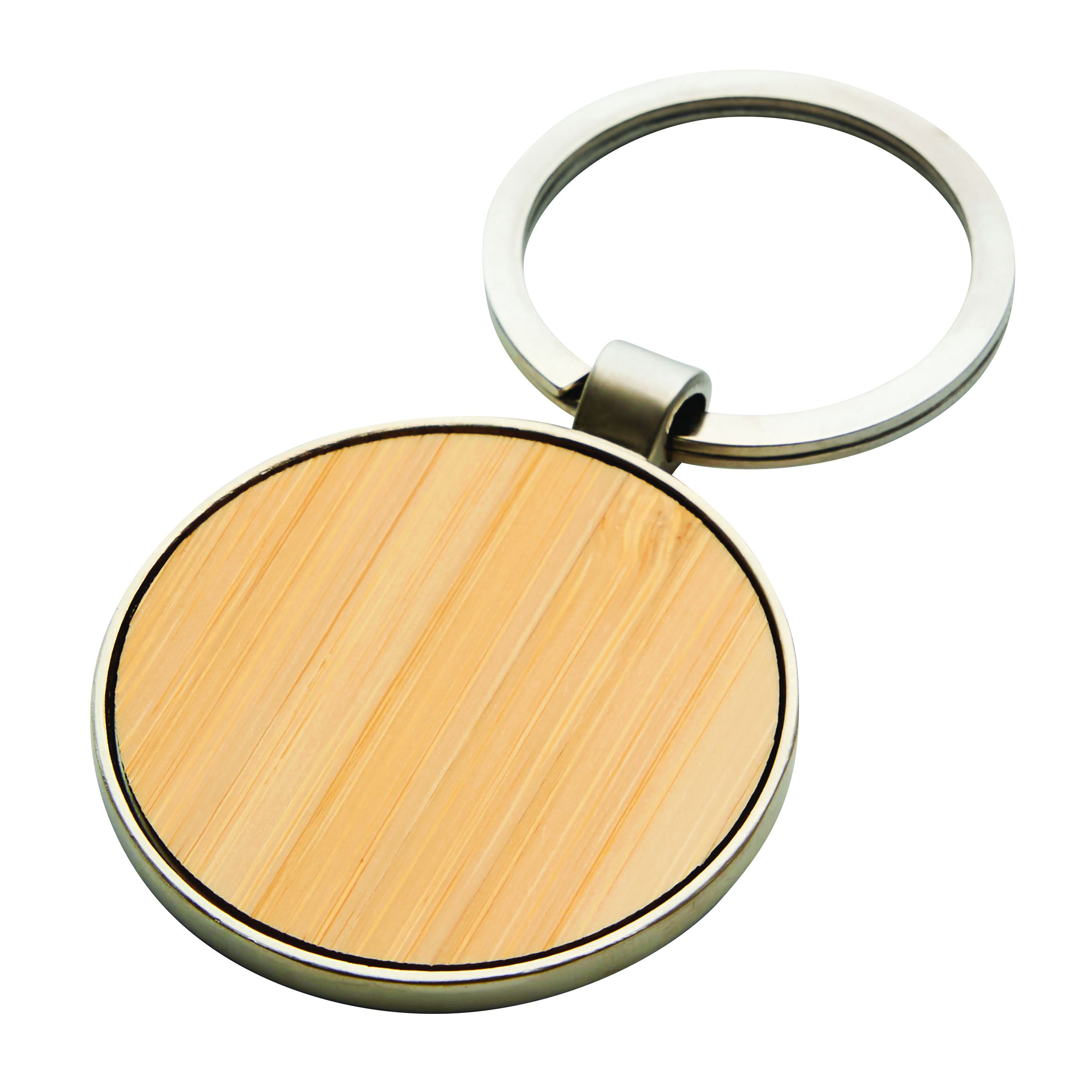 Brelok CIRCLE. Okrągła metalowa zawieszka z bambusowym wykończeniem.