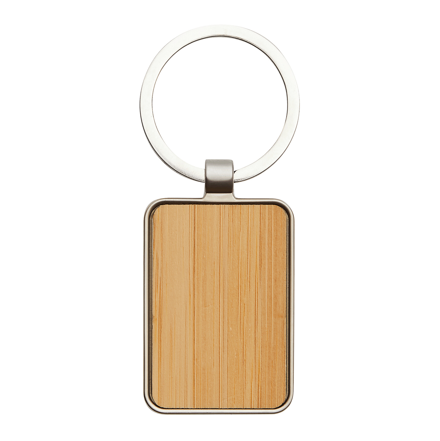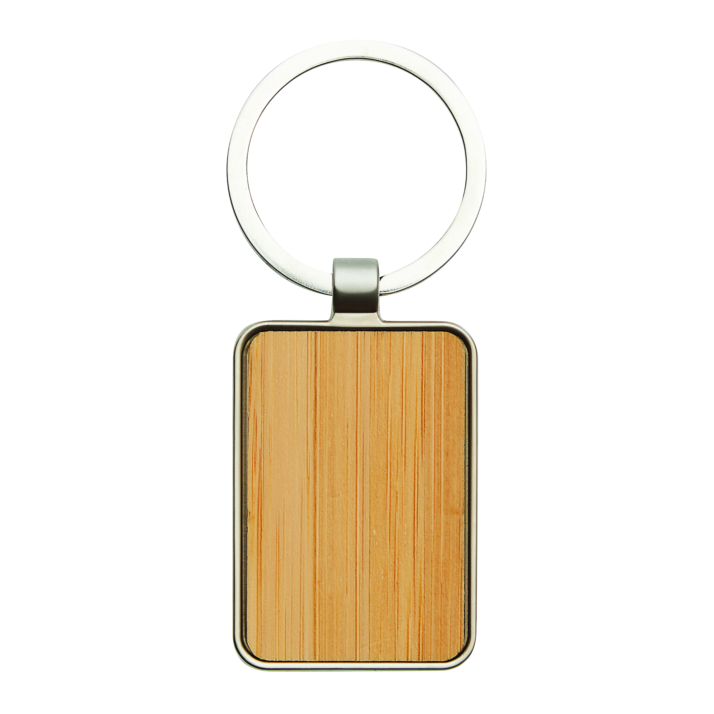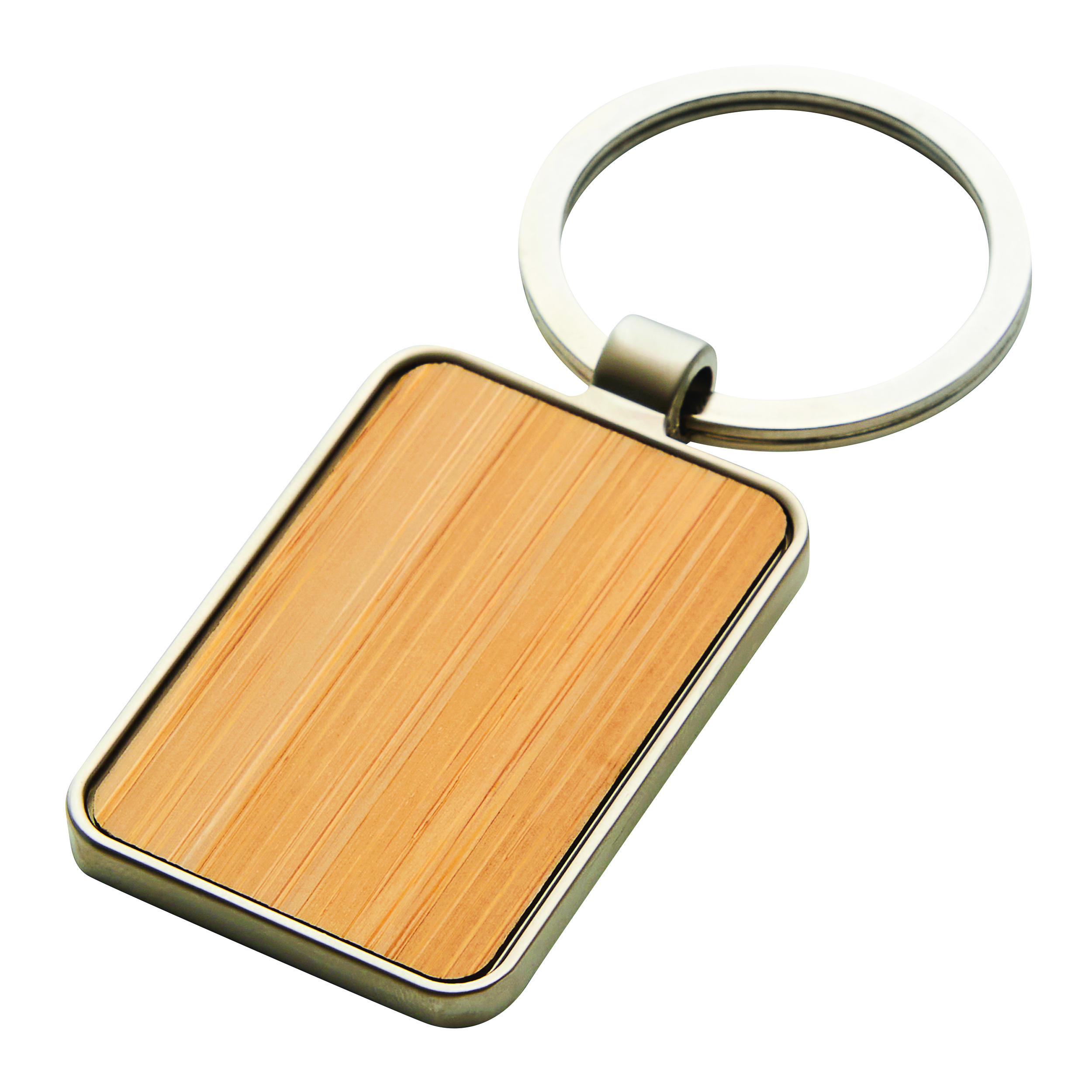 Brelok FIELD. Prostokątna metalowa zawieszka z bambusowym wykończeniem.