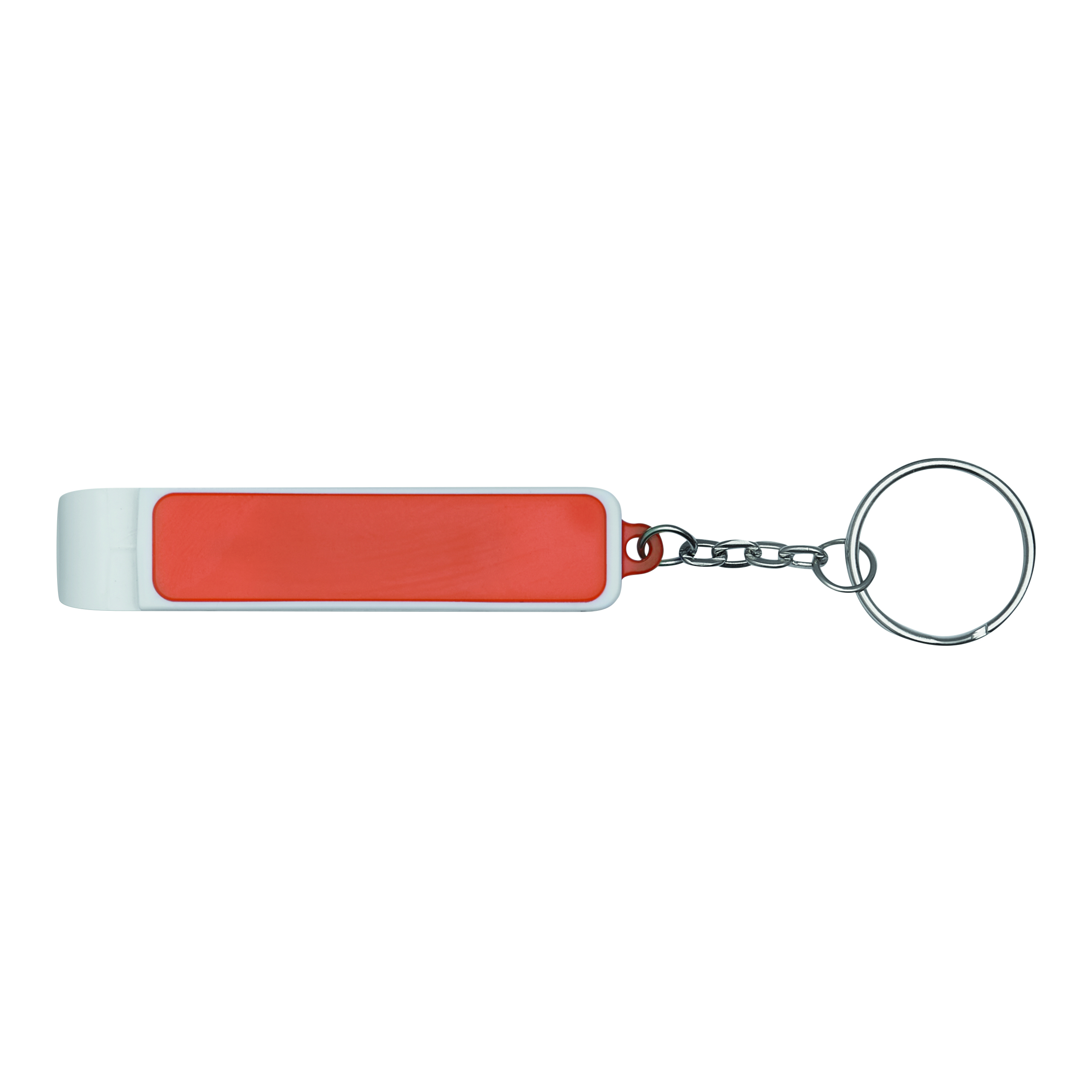 Brelok DOUBLE OPEN z wysuwaną podstawką na smartfon i zintegrowanym otwieraczem do butelek.