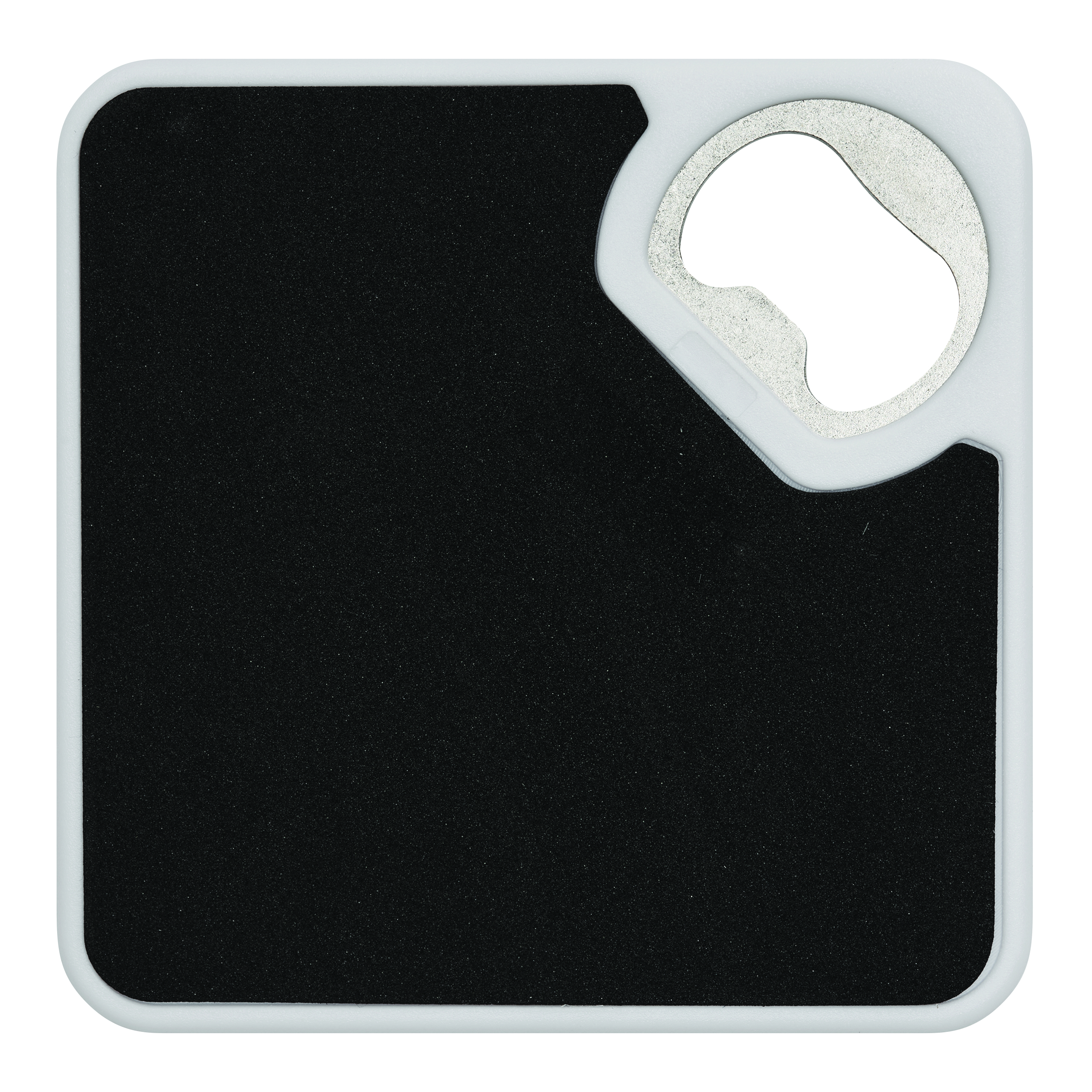 Podkładka pod szklankę TOGETHER wyposażona w otwieracz do butelek, antypoślizgową powłokę na spodzie, z dużą powierzchnią przeznaczoną na nadruk.
