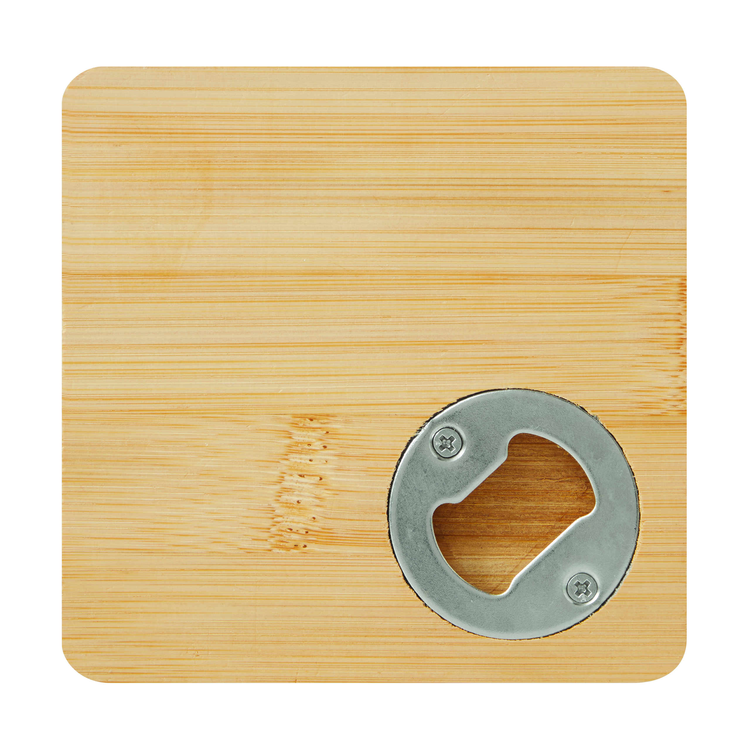 Bambusowa podstawka TOGETHER BAMBOO. Posiada zintegrowany otwieracz do butelek i duży obszar nadruku na logo.