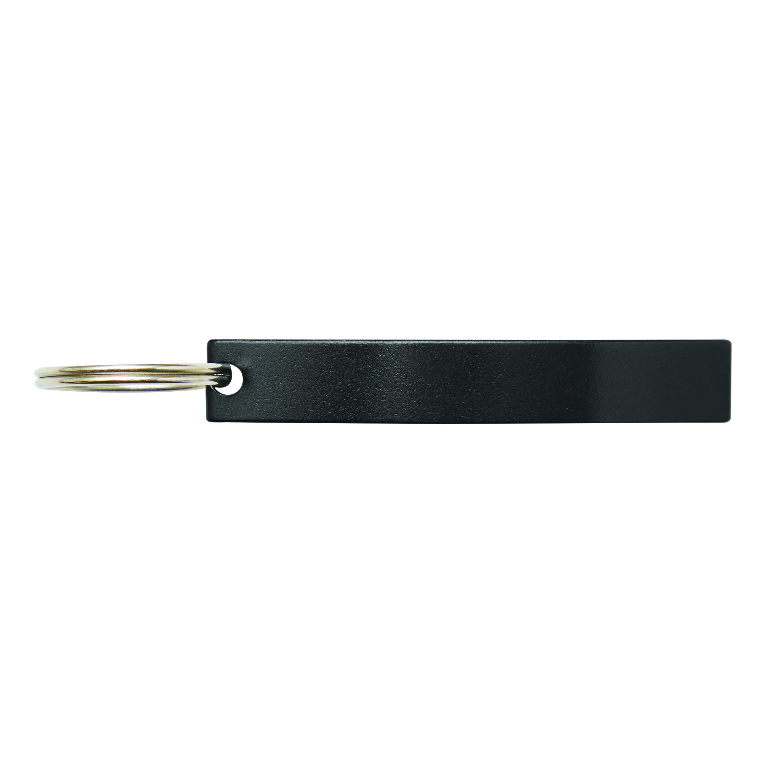 Brelok ALBOP. Ma wbudowany otwieracz do butelek i kółko na klucze.
