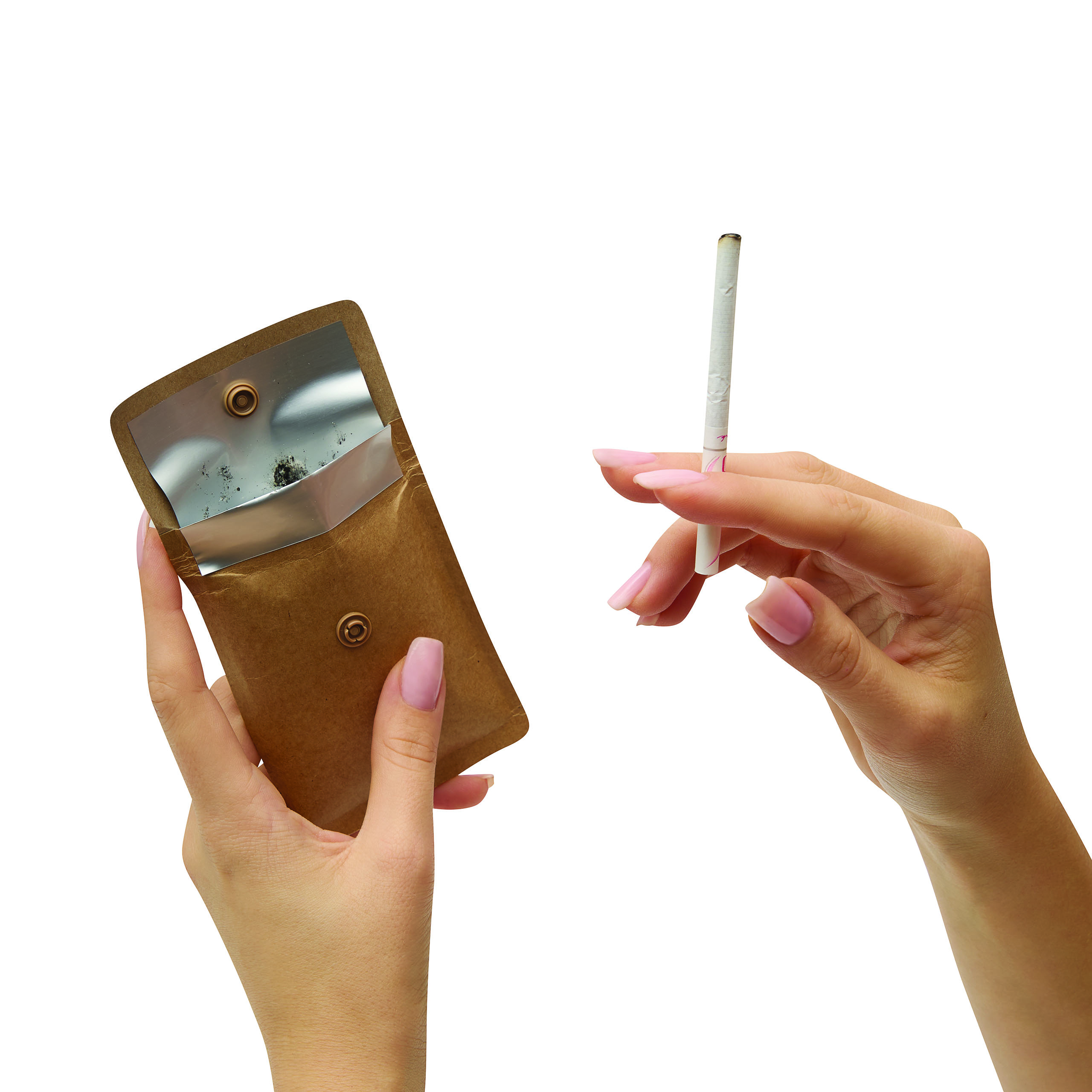 Kieszonkowa popielniczka CLEAN. Zewnętrzna część wykonana jest z papieru, a wewnętrzna z ognioodpornego aluminium. Zamykana jest na zatrzask.