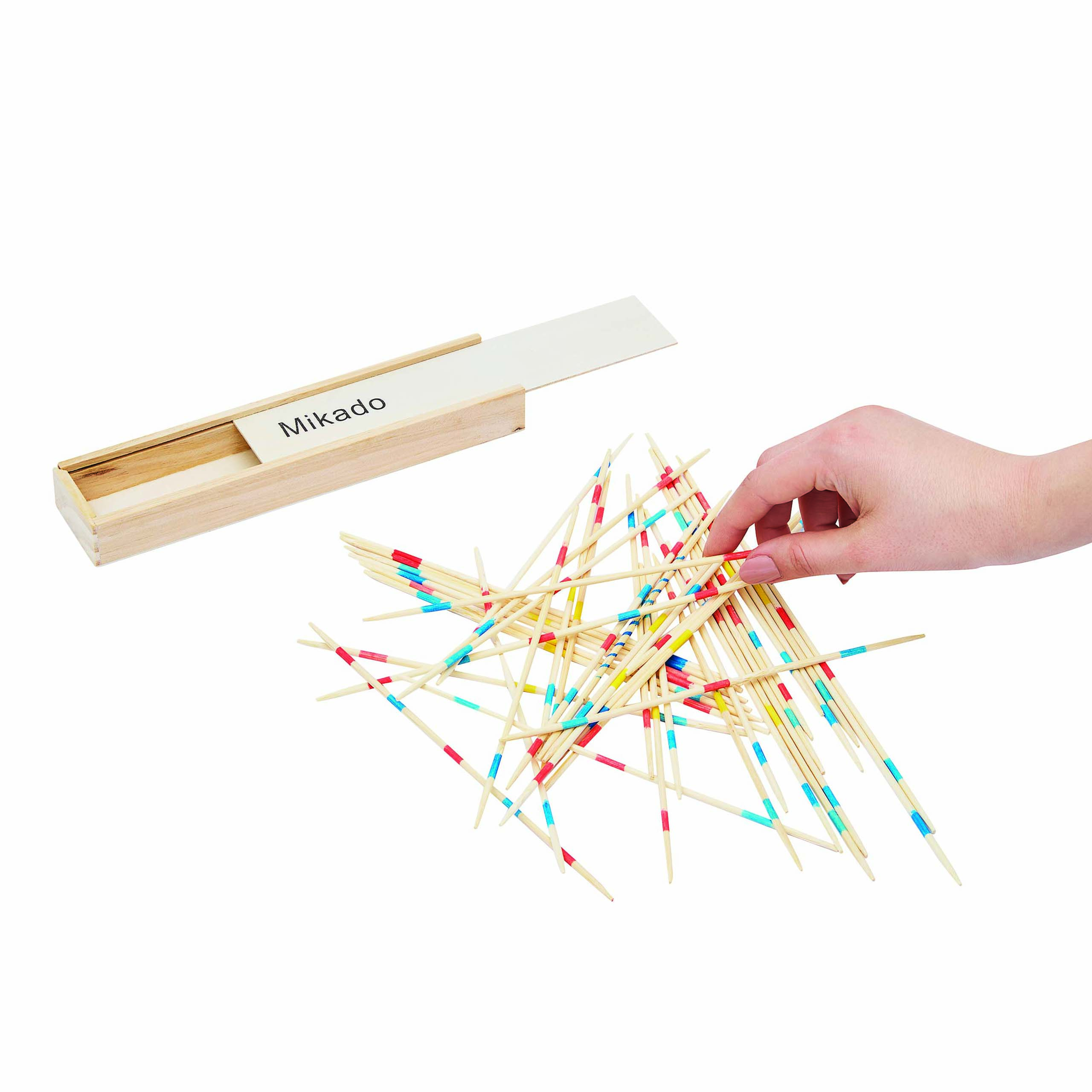 Gra bierki FOCUS z 41 bierkami zapakowanymi w drewniane pudełko z wysuwanym wieczkiem.