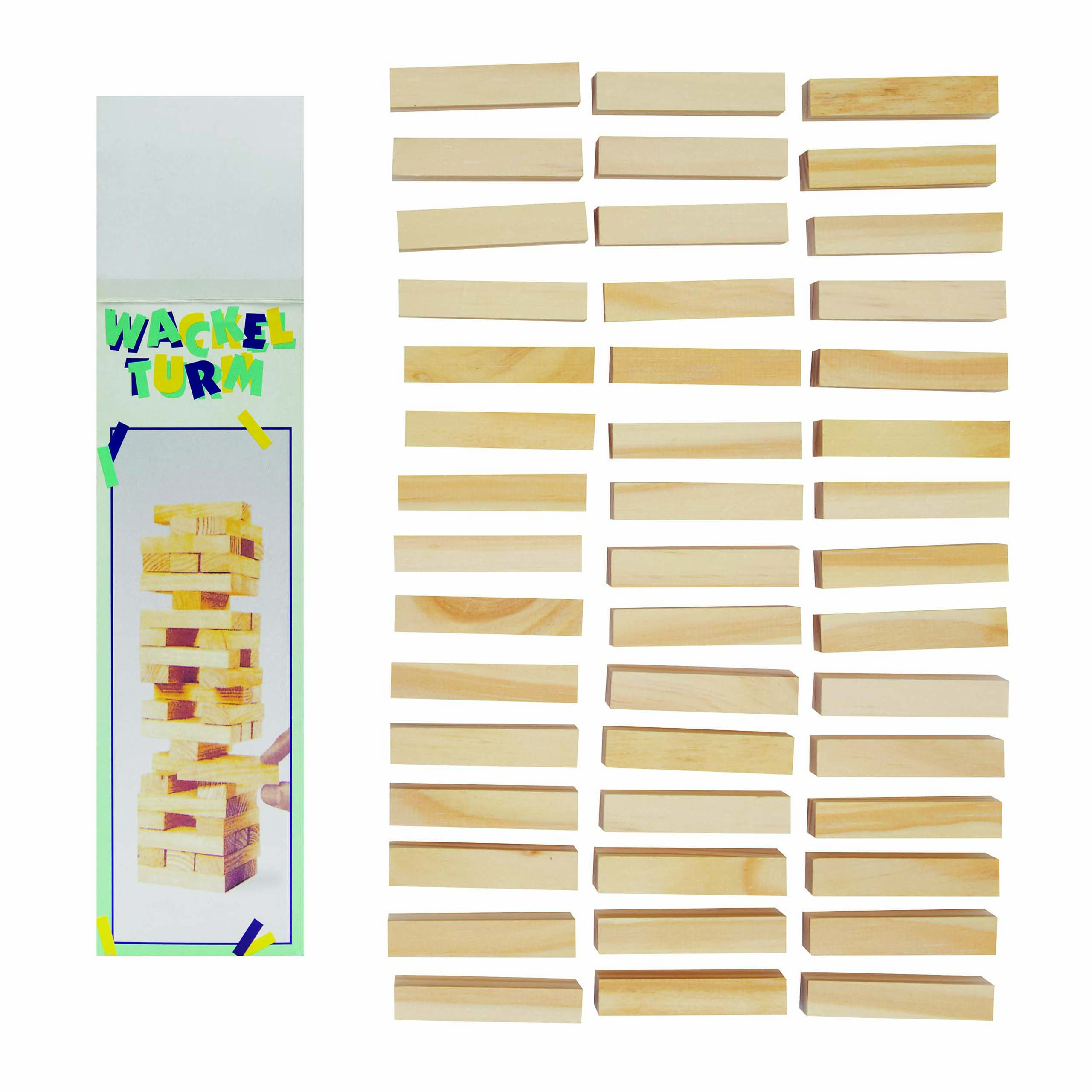 Gra zręcznościowa wieża HIGH-RISE składa się z 45 drewnianych elementów.