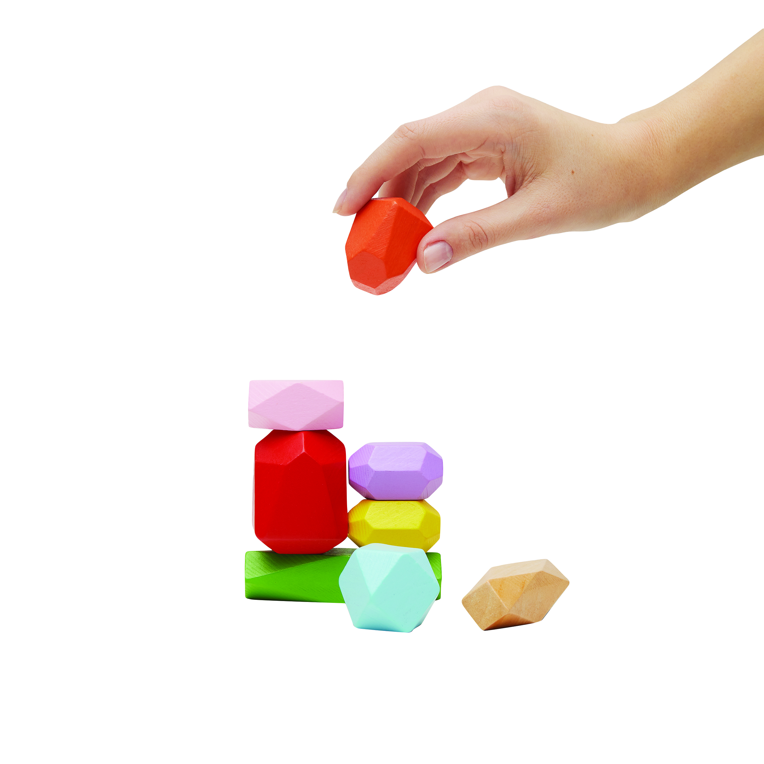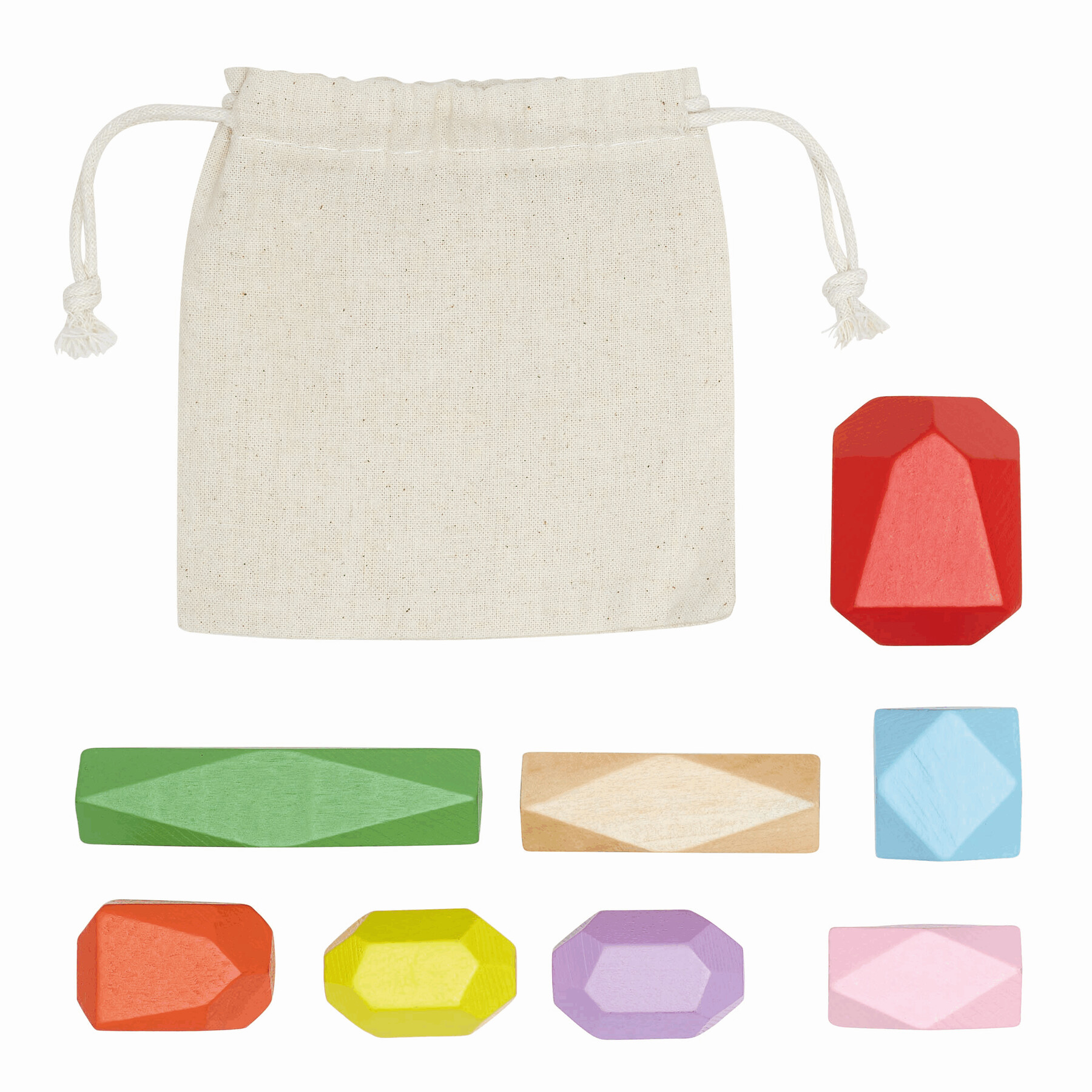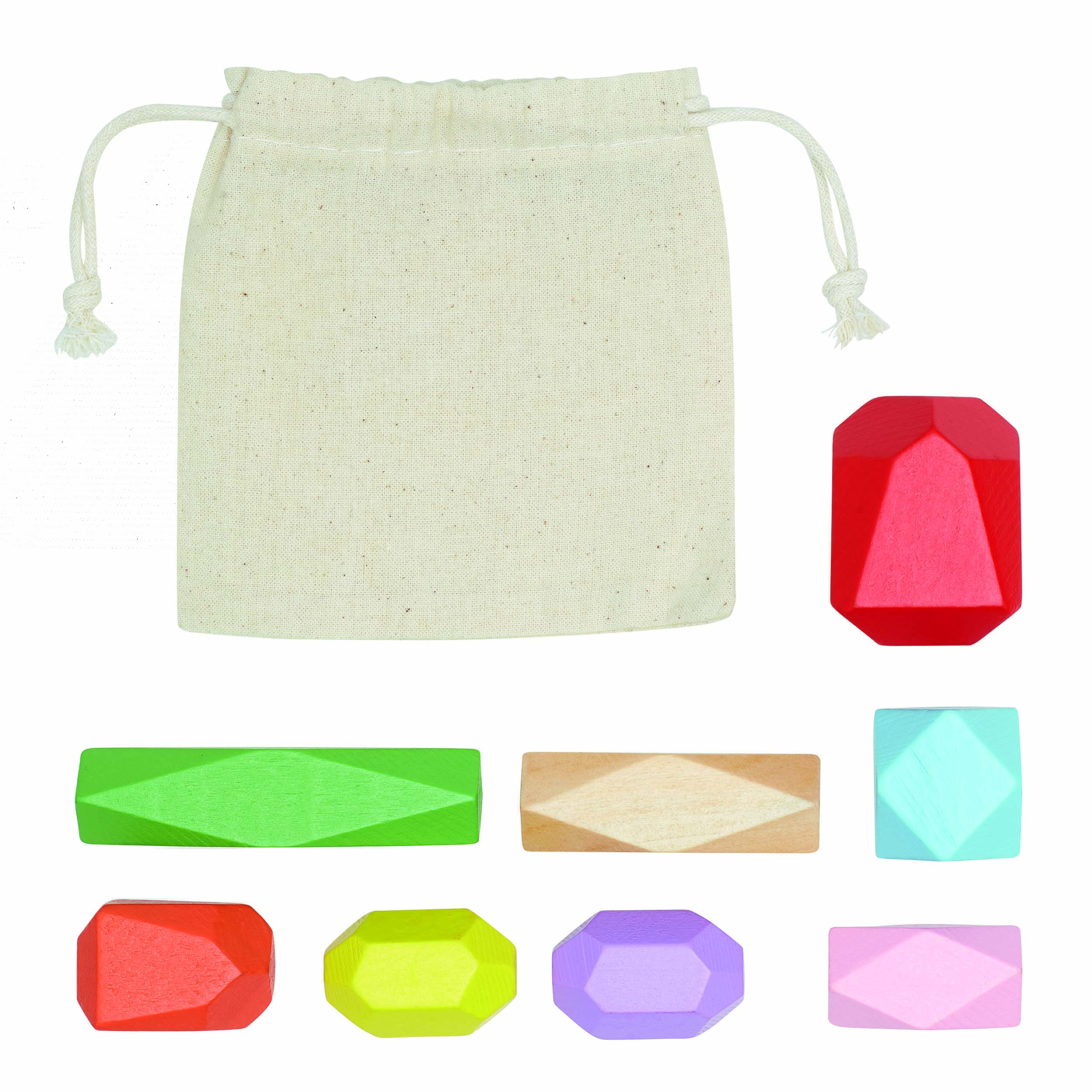 Gra zręcznościowa EACH OTHER: składająca się z 8 kolorowych drewnianych elementów do gry, w przyjaznej dla środowiska bawełnianej torbie.