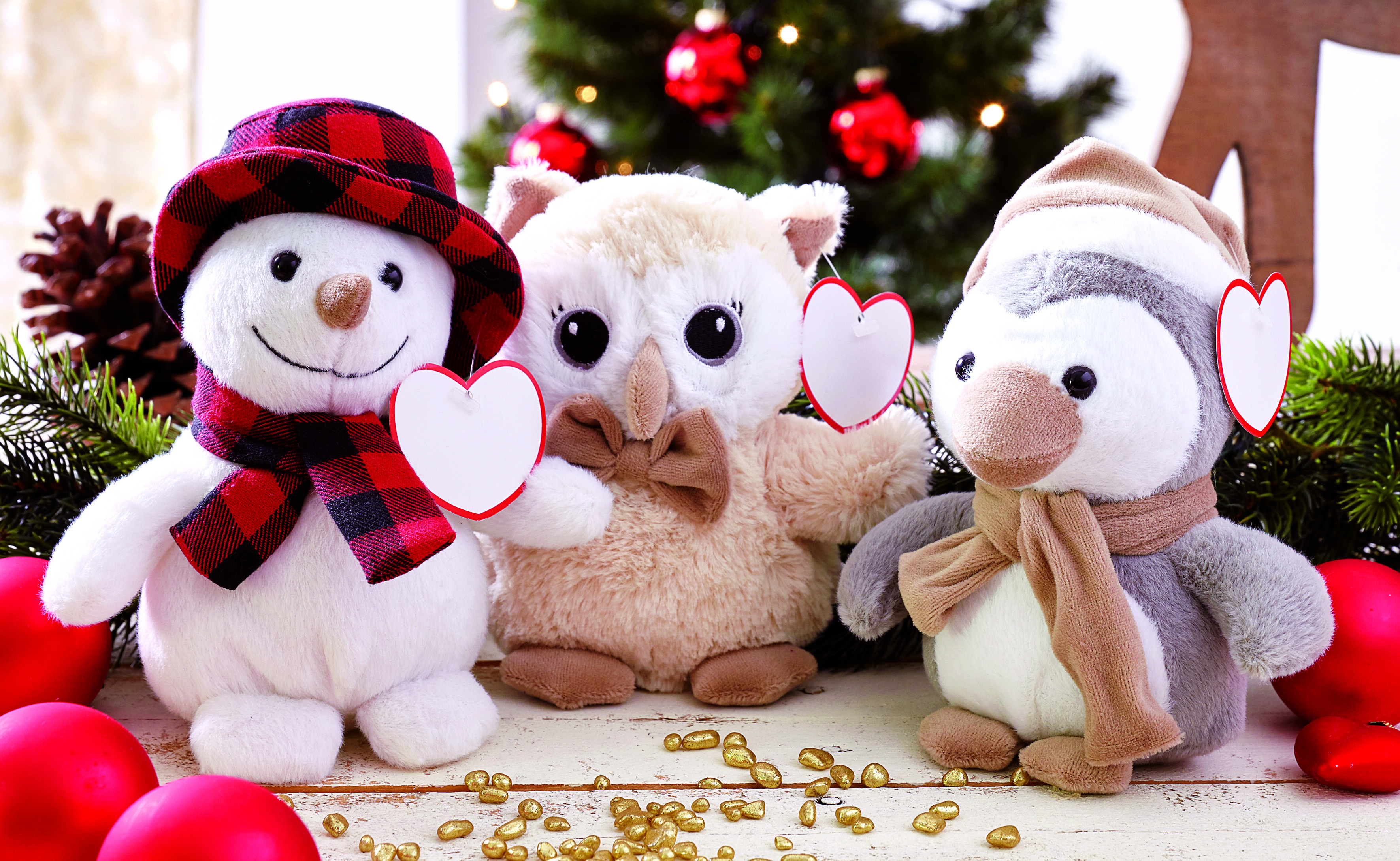 Pluszowy bałwan JOHANN z bardzo miękkim futerkiem. Kapelusz i szalik z czerwonego materiału w kratkę. Serce do nadruku.