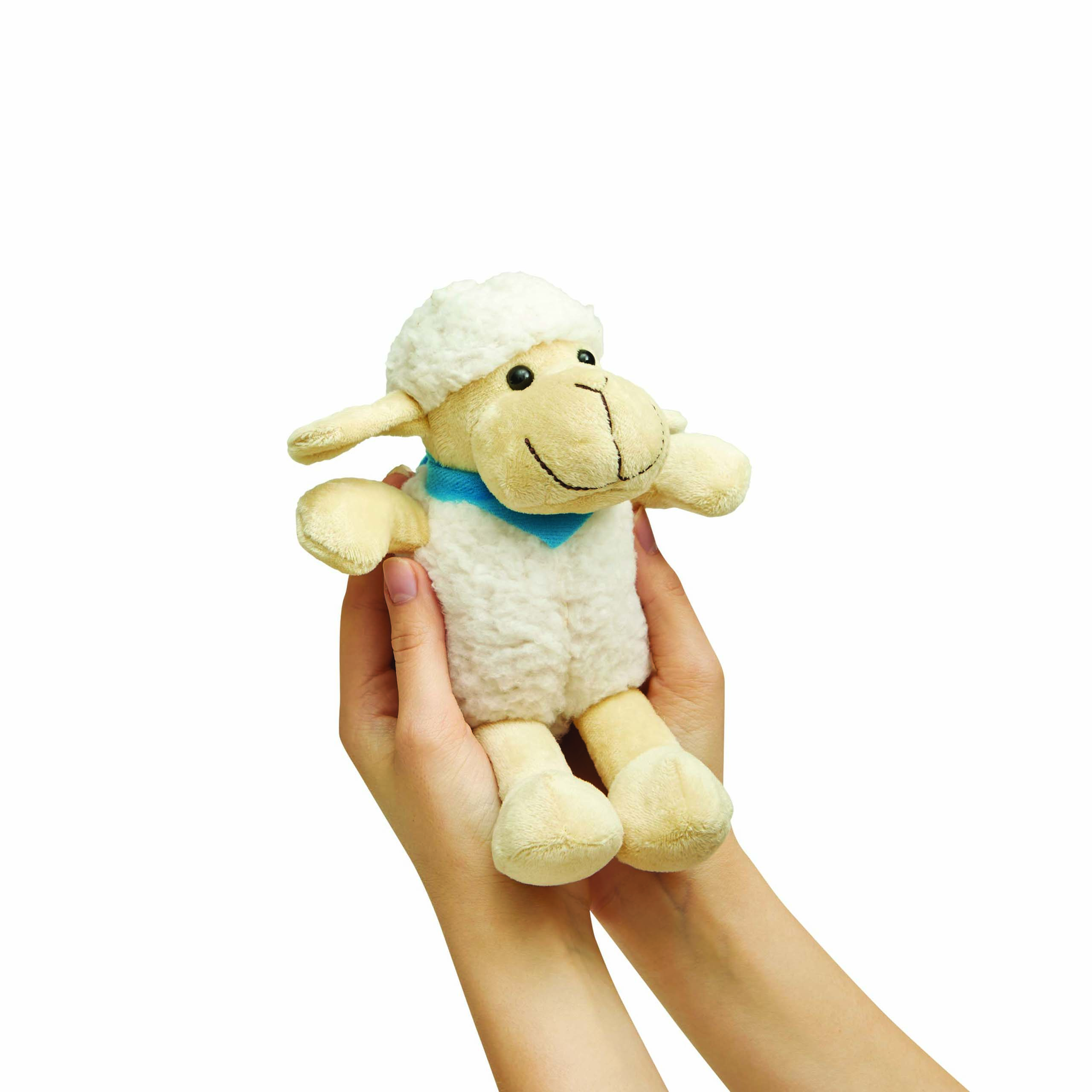 Pluszowa owieczka ROSI z miękkim futerkiem i jasnoniebieską apaszką do nadruku (pakowana osobno).
