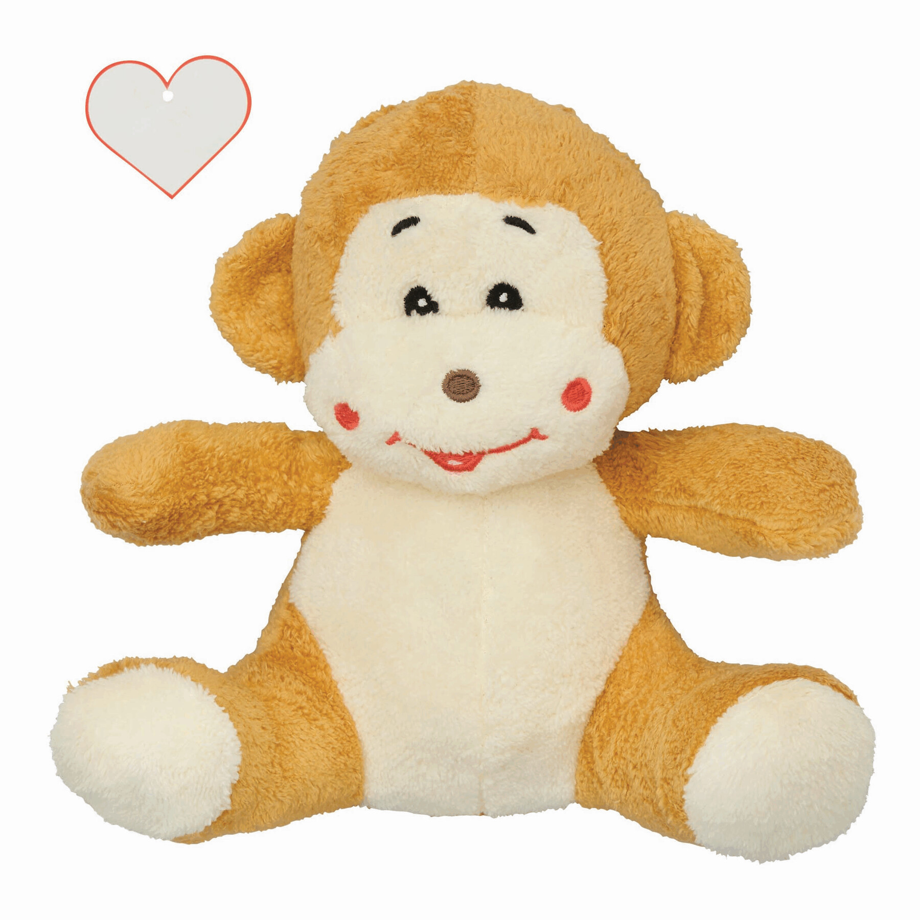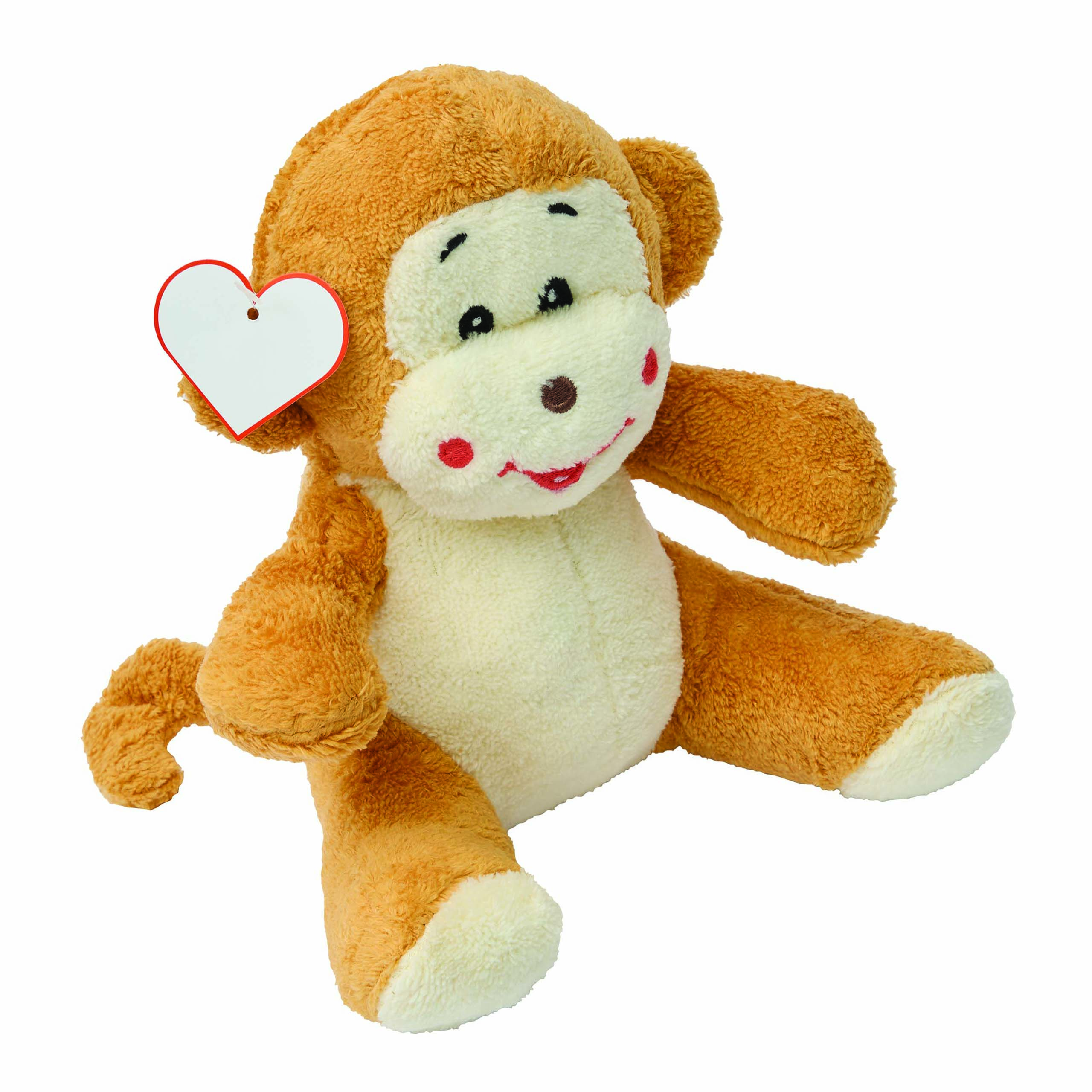 Pluszowa małpka ELIAS z miękkim futerkiem i serduszkiem do nadruku. Wyprodukowana w Europie.