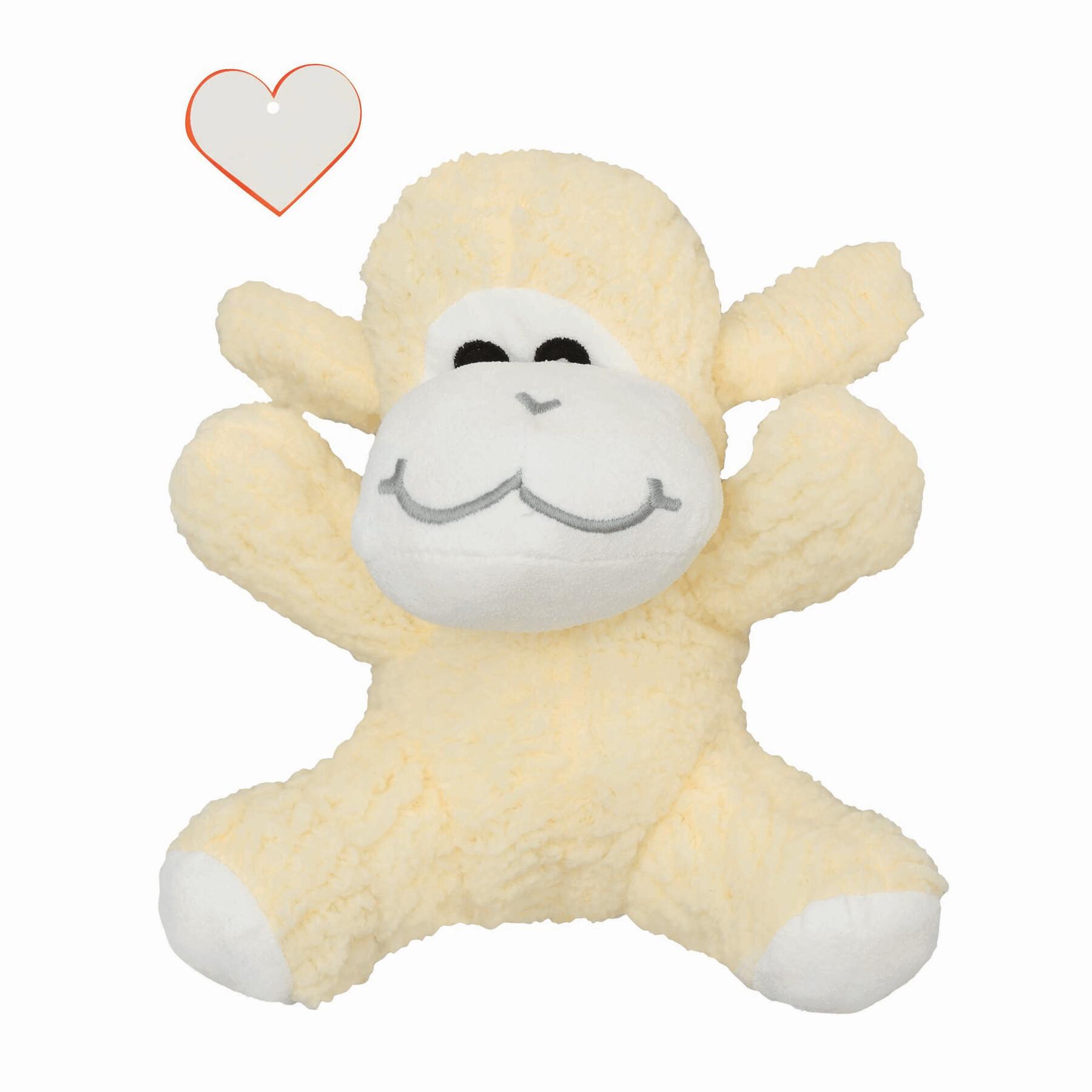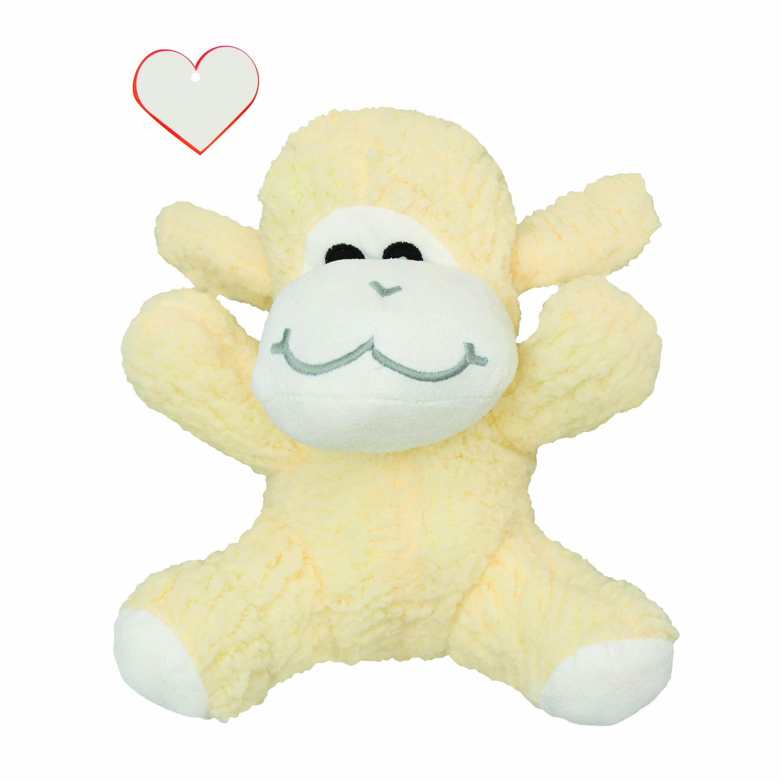 Pluszowa owca MELINA z miękkim futerkiem i serduszkiem do nadruku. Wyprodukowana w Europie.