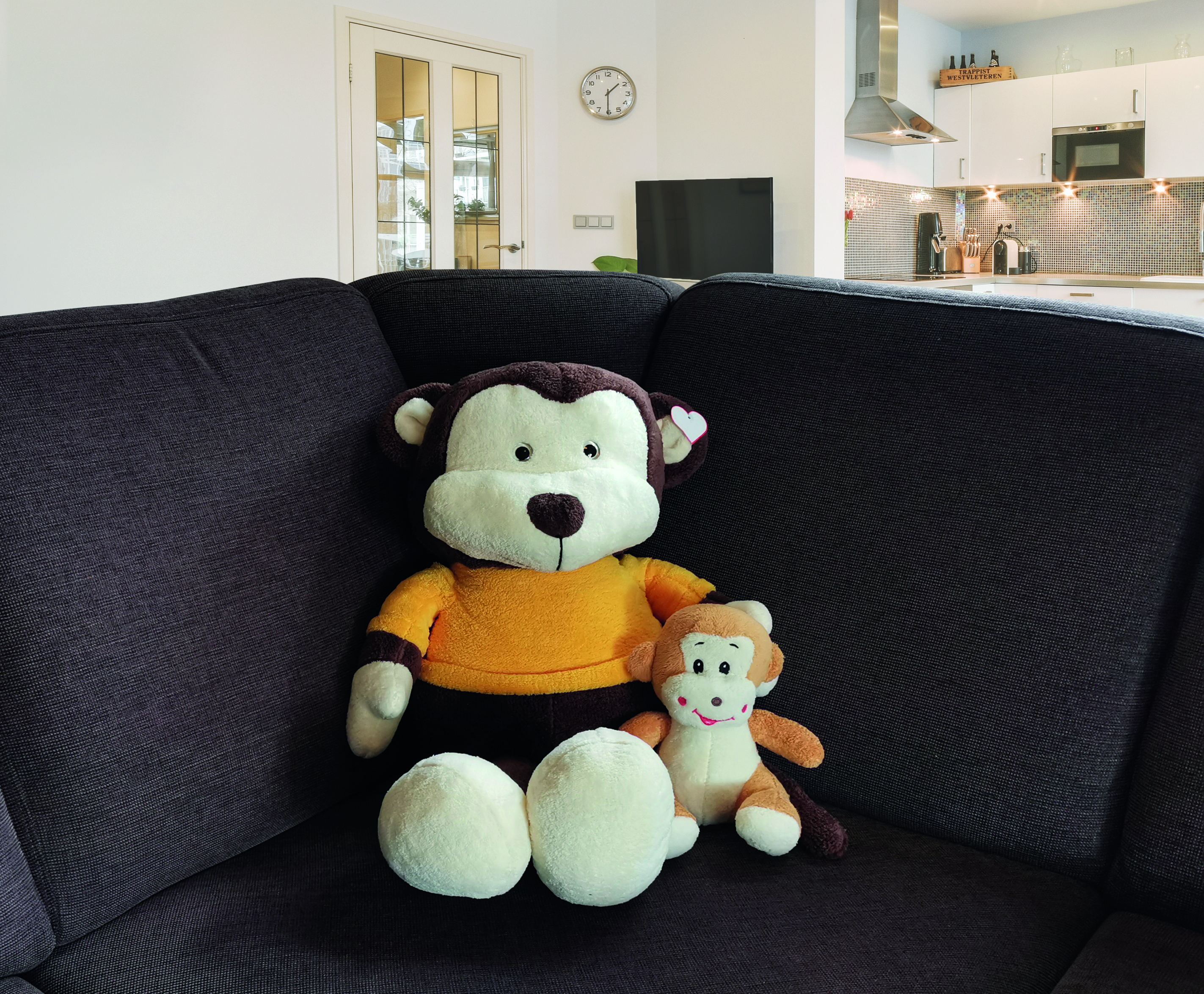 Duża pluszowa małpka BATU z miękkim futerkiem i serduszkiem do nadruku. Wyprodukowana w Europie.
