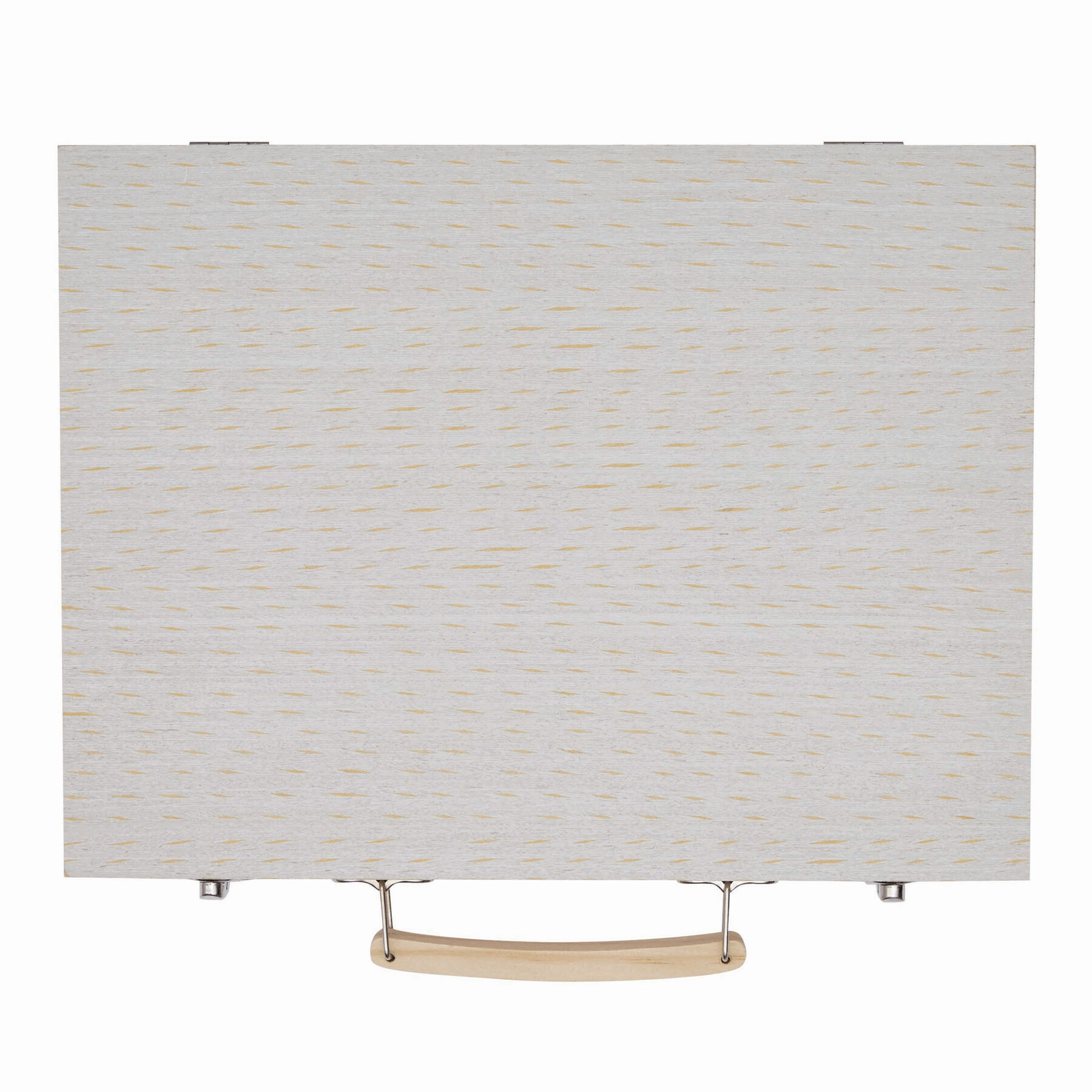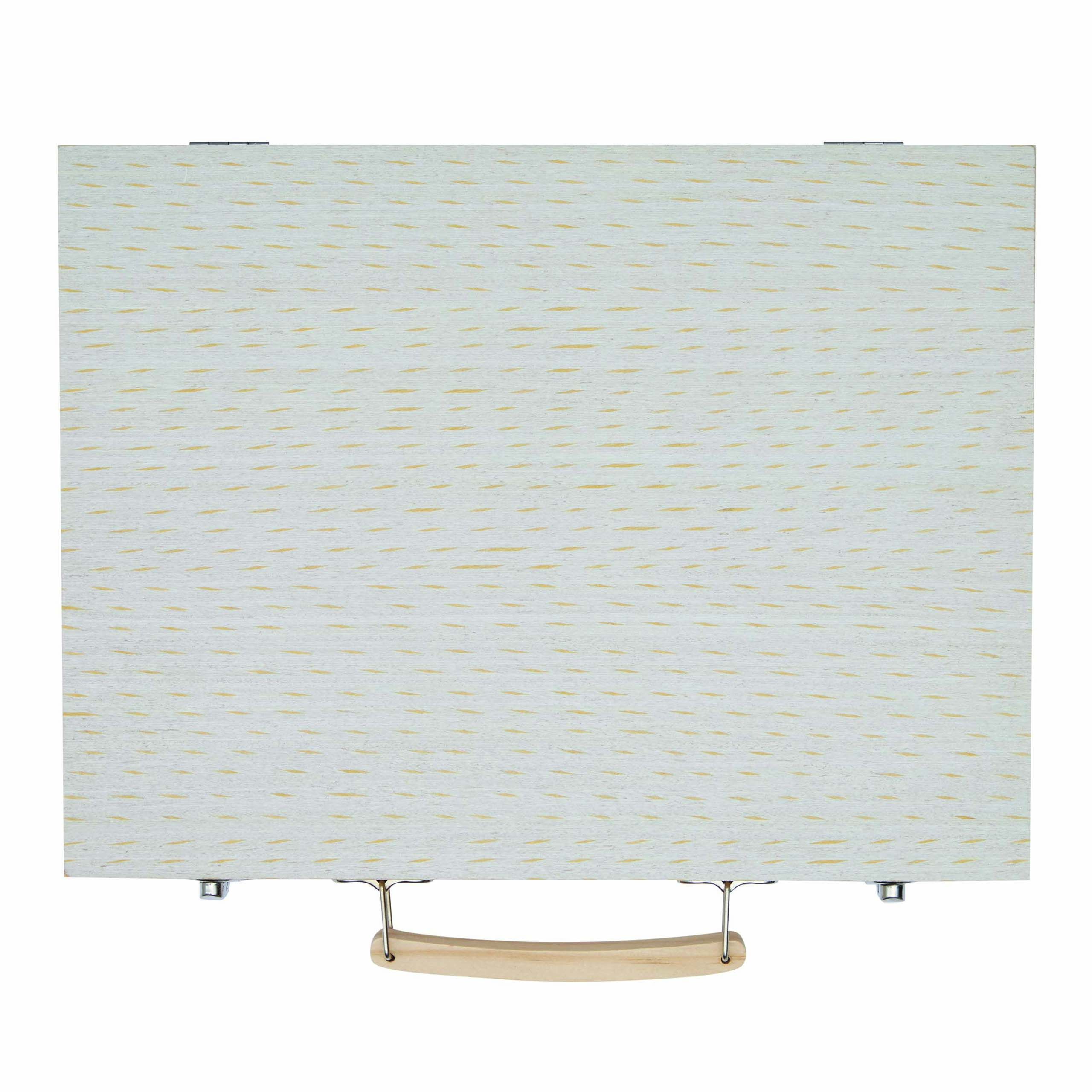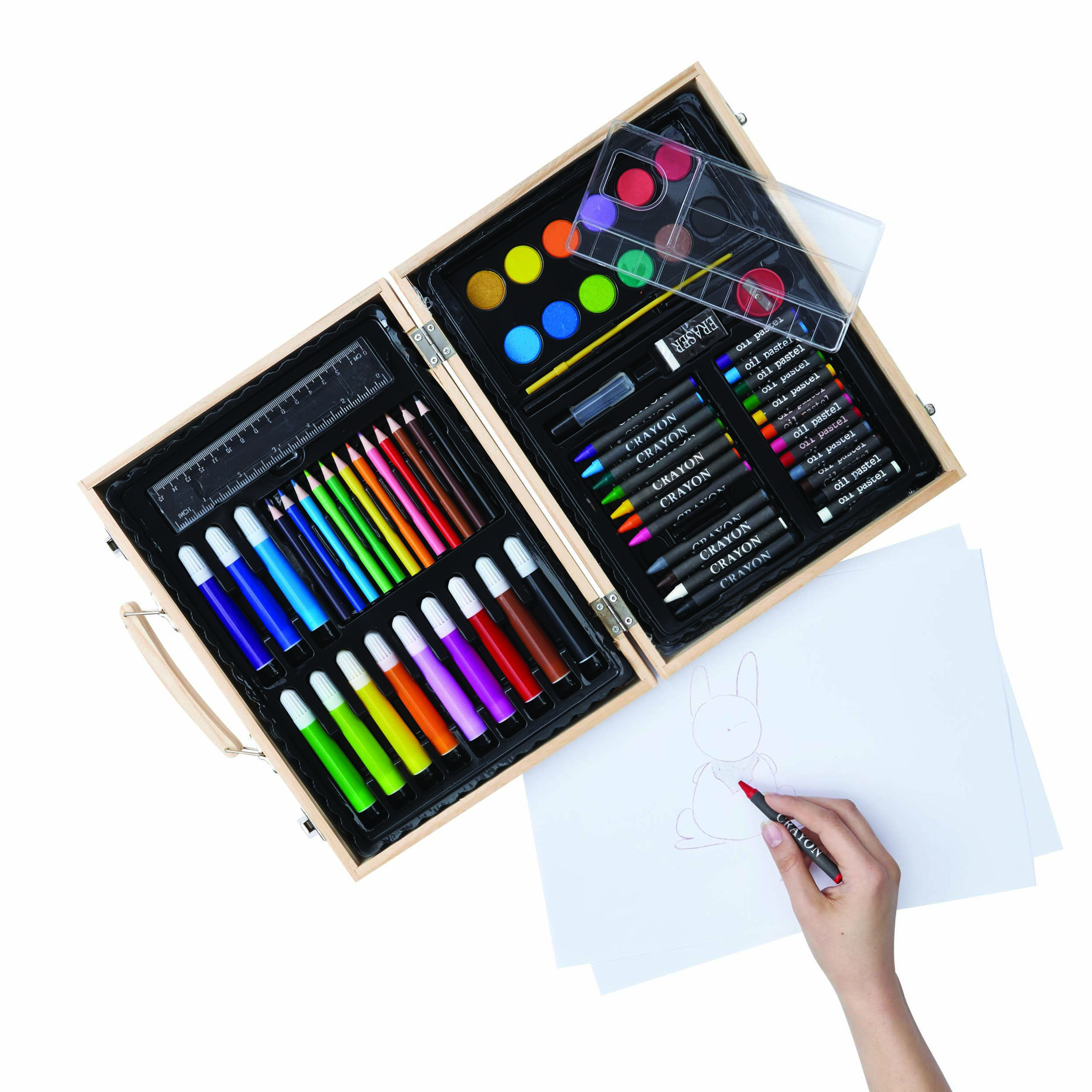 Zestaw do kolorowania GAUDY. 12 kolorowych kredek, 12 flamastrów, 12 kredek świecowych, 12 olejnych kredek pastelowych, 12 farb akwarelowych, 1 pędzel, 1 ołówek, 1 strugaczka, 1 gumka do mazania, 1 linijka (15 cm), w drewnianym zamykanym pudełku z uchwytem.