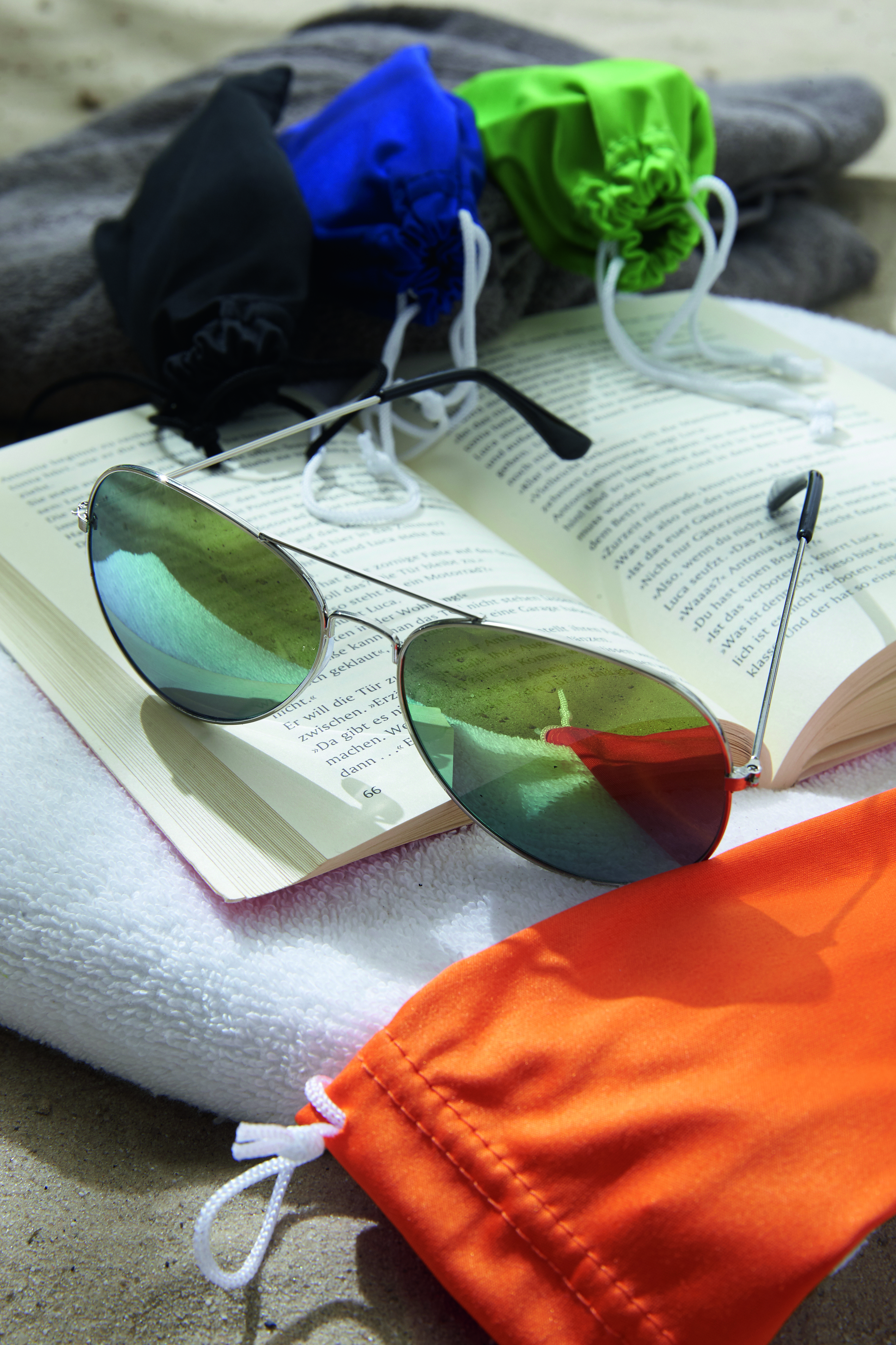 Okulary przeciwsłoneczne NEW STYLE z ciemnymi szkłami, certyfikatem UV 400, pakowane w torebkę, z miejscem na Twoje logo.