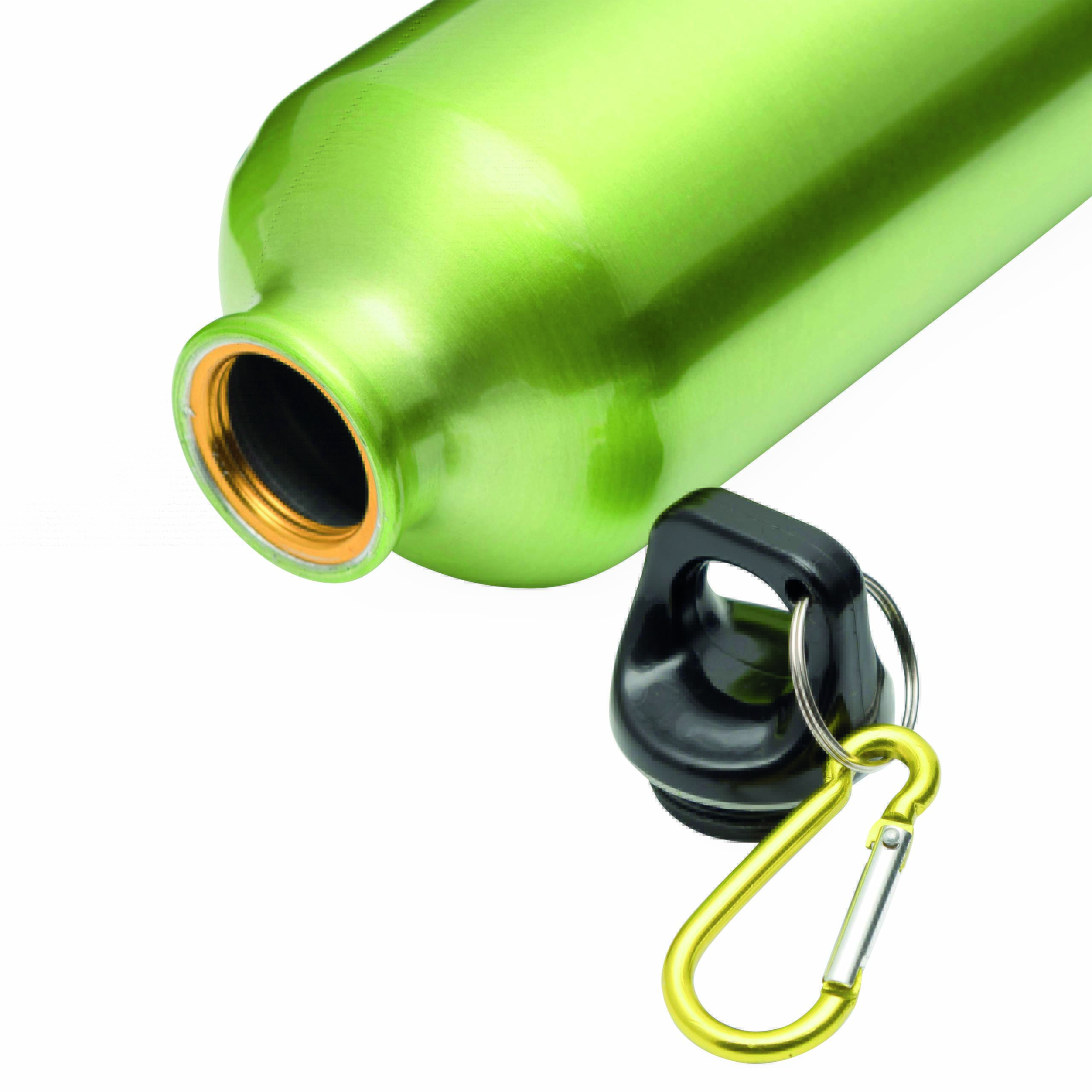 Aluminiowy bidon BIG TRANSIT z plastikową pokrywą z dopasowanym kolorystycznie karabińczykiem. Pojemność ok. 750 ml.