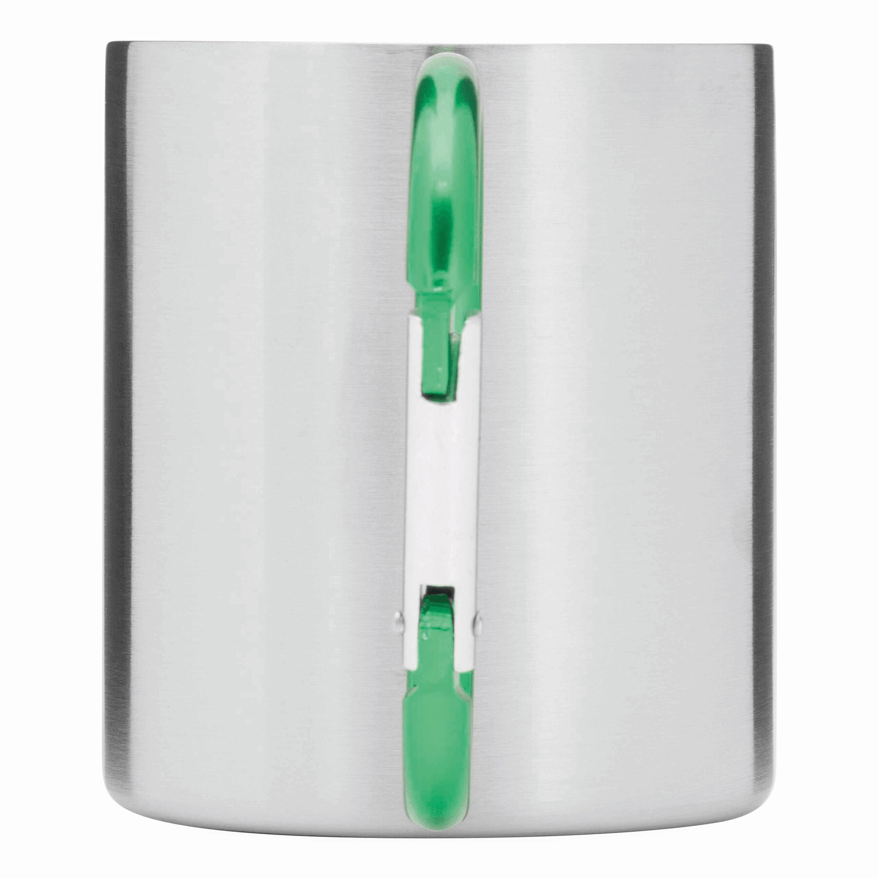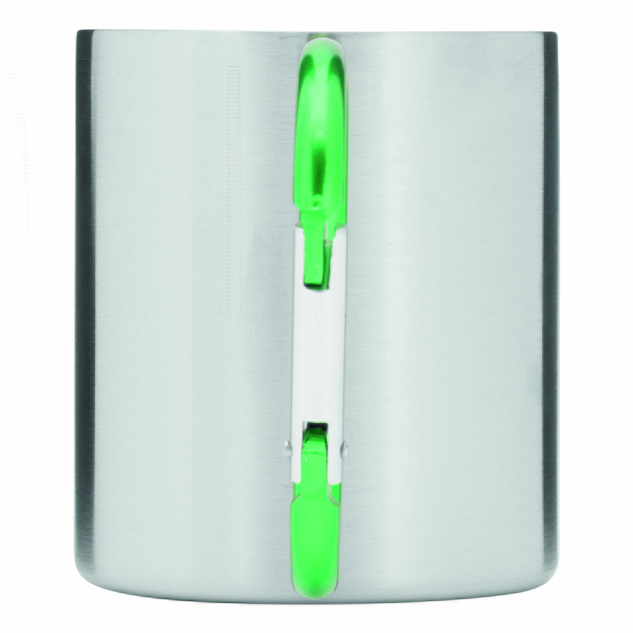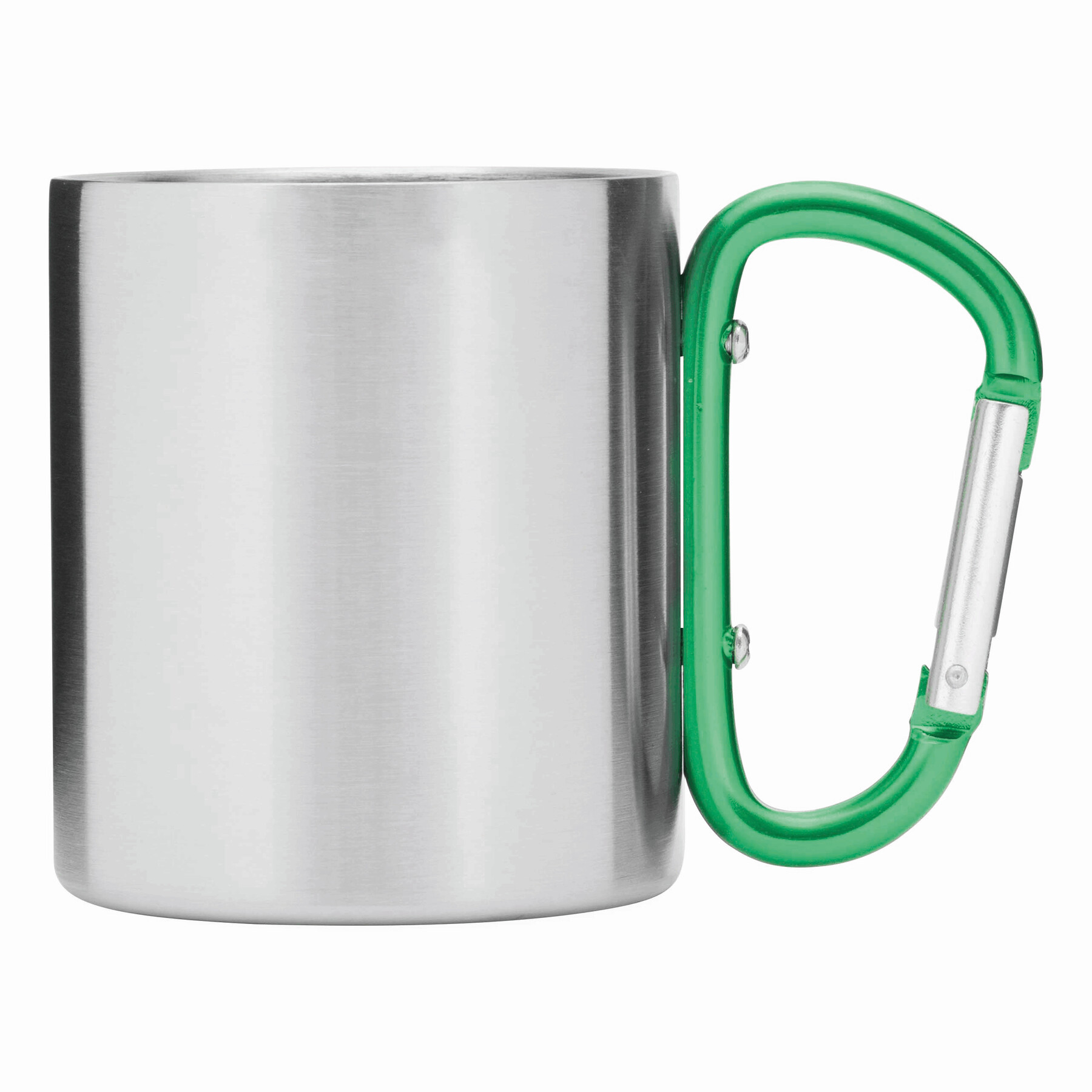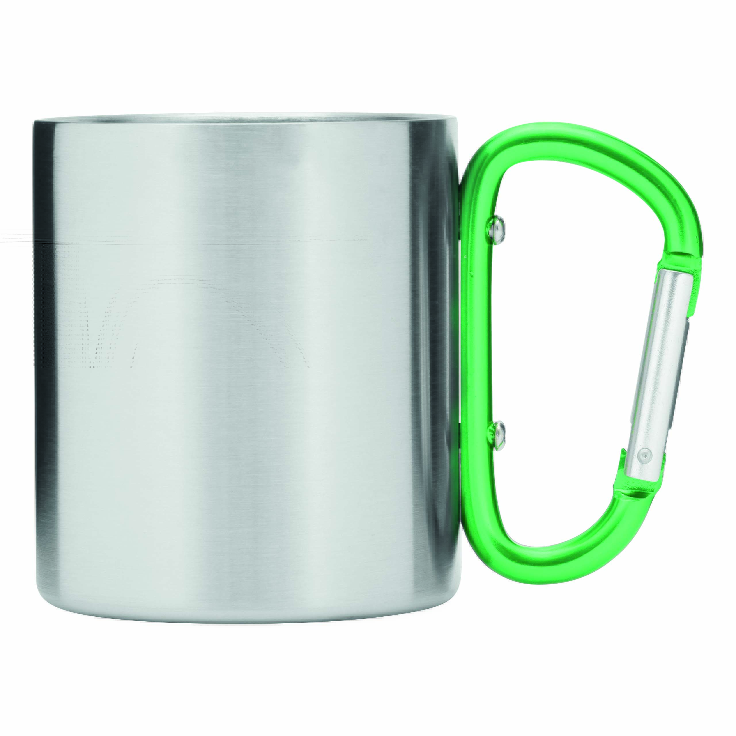 Kubek HIKING DAY ze stali nierdzewnej wewnątrz i na zewnątrz, pojemność ok. 200 ml, z kolorowym karabińczykiem.