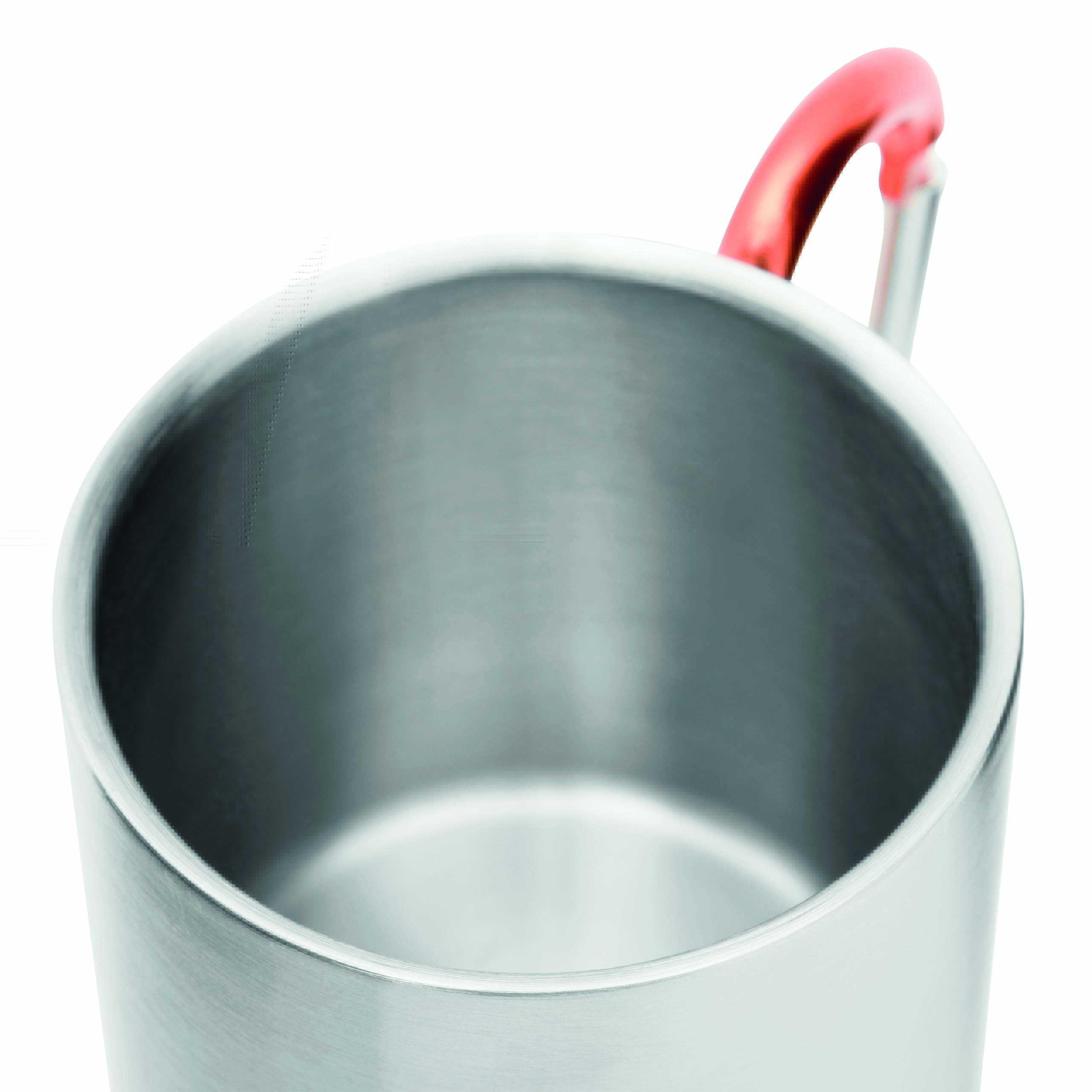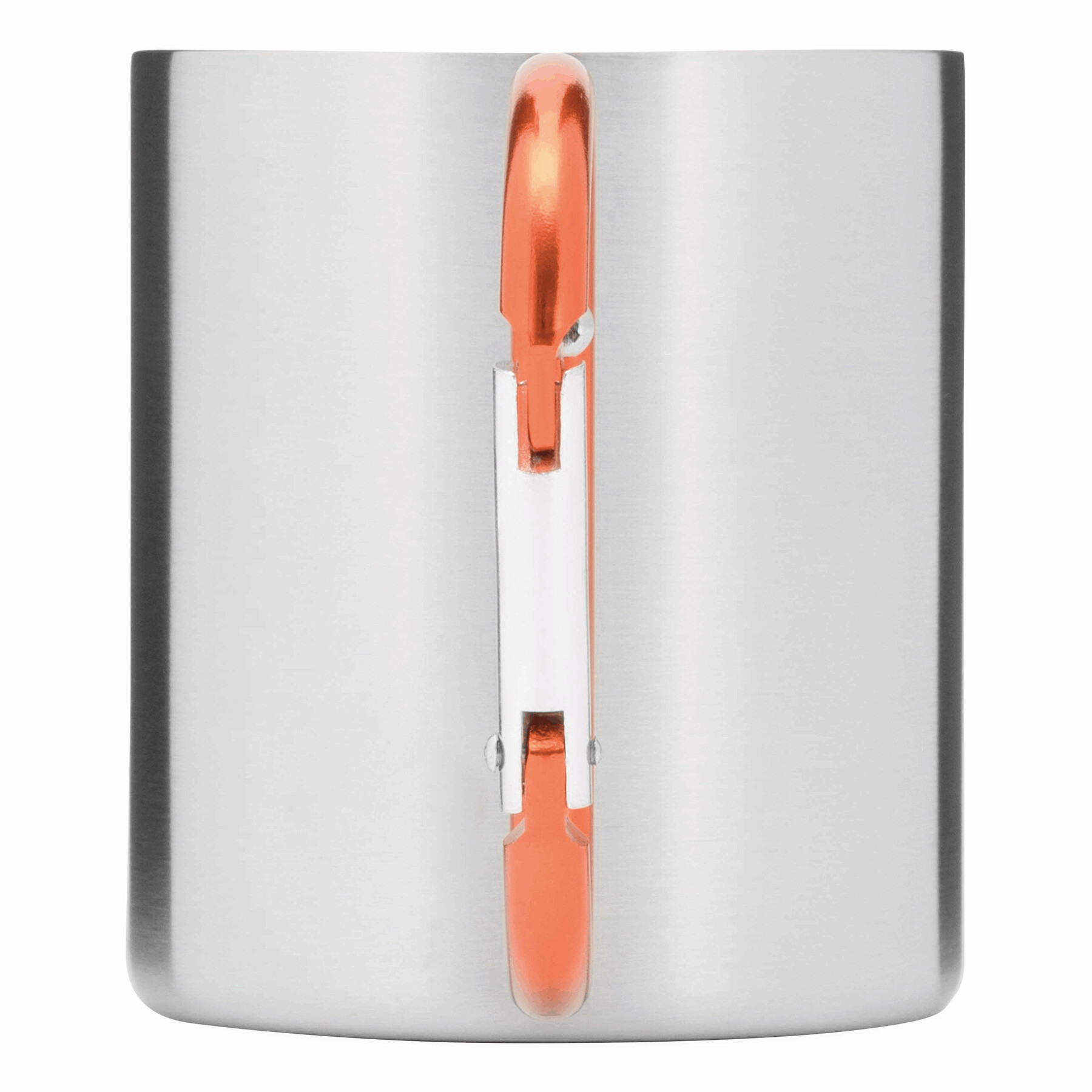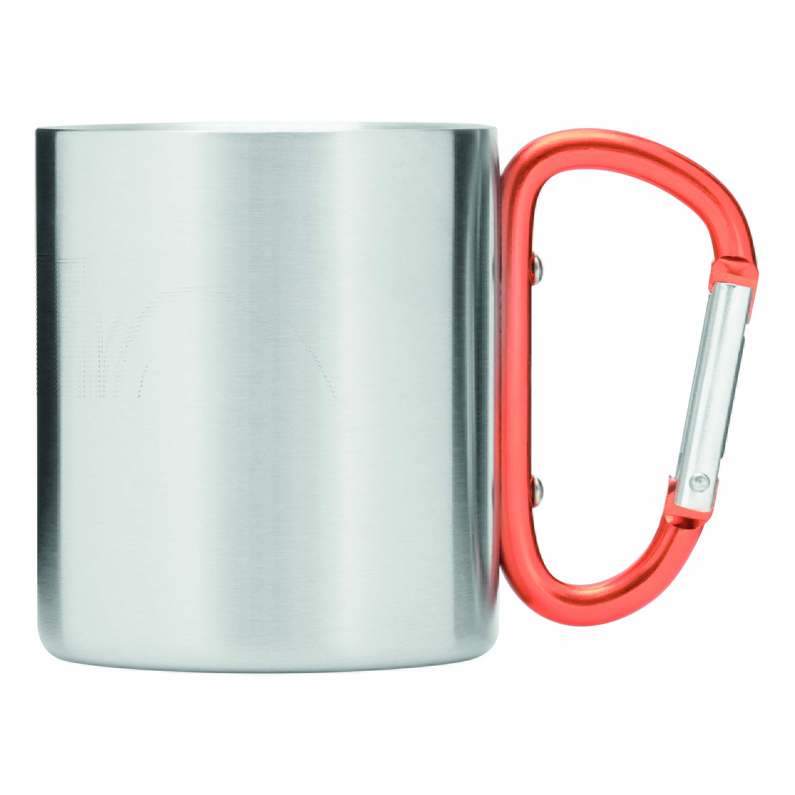 Kubek HIKING DAY ze stali nierdzewnej wewnątrz i na zewnątrz, pojemność ok. 200 ml, z kolorowym karabińczykiem.