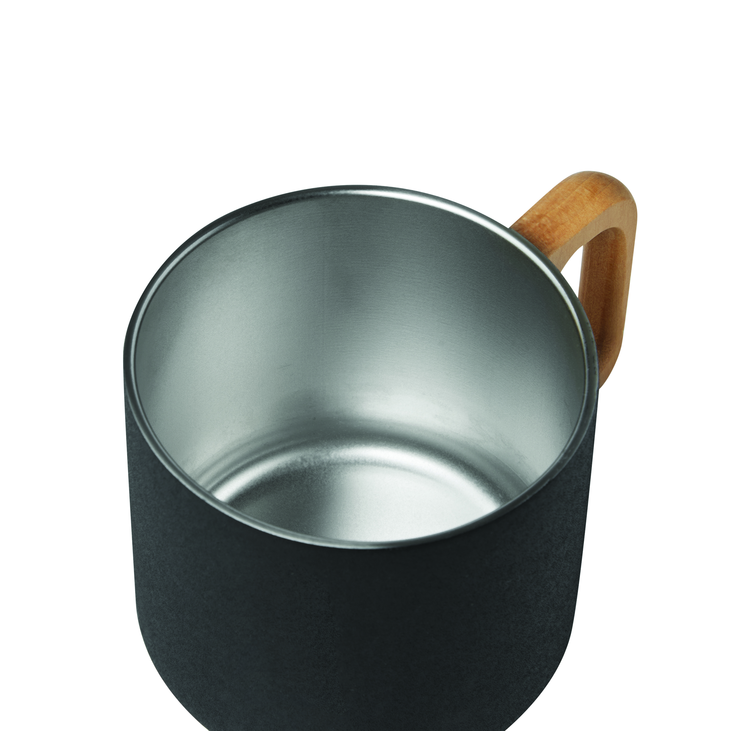 Kubek ze stali nierdzewnej RUSTIC TRIP, z podwójną izolacją. Posiada drewniany uchwyt, kolorową matowa powłokę proszkową na zewnątrz i srebrną wewnątrz. Pojemność kubka to ok. 350 ml.