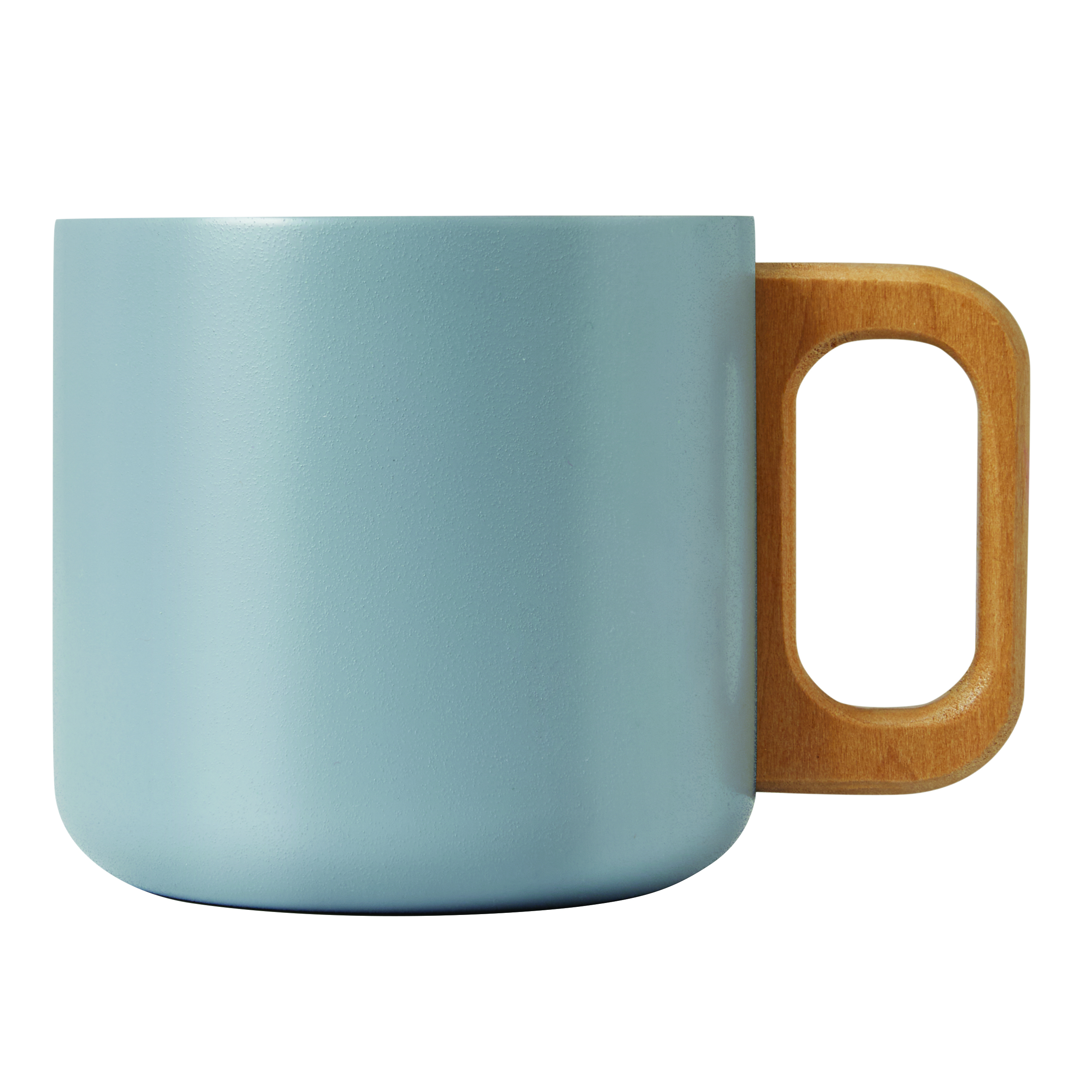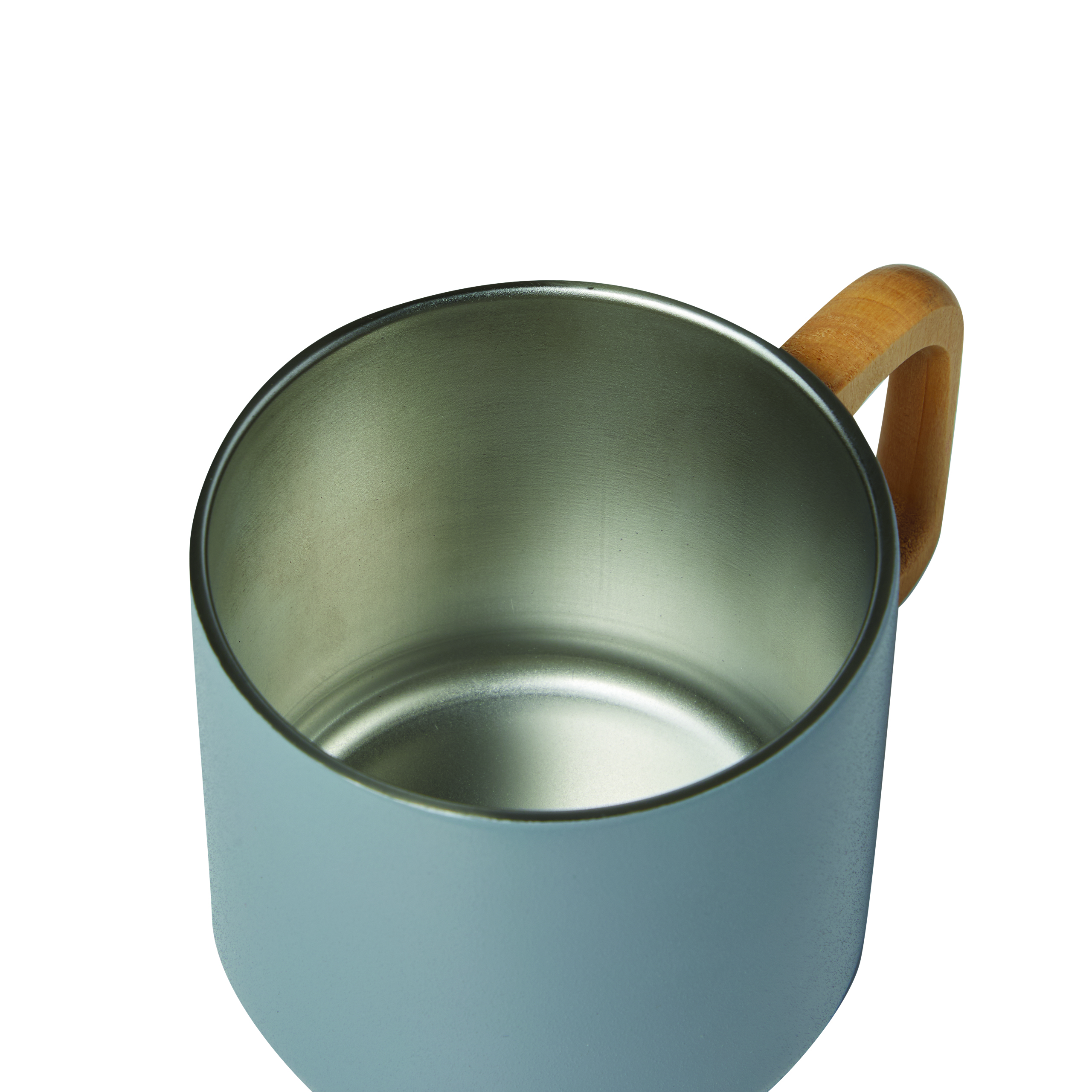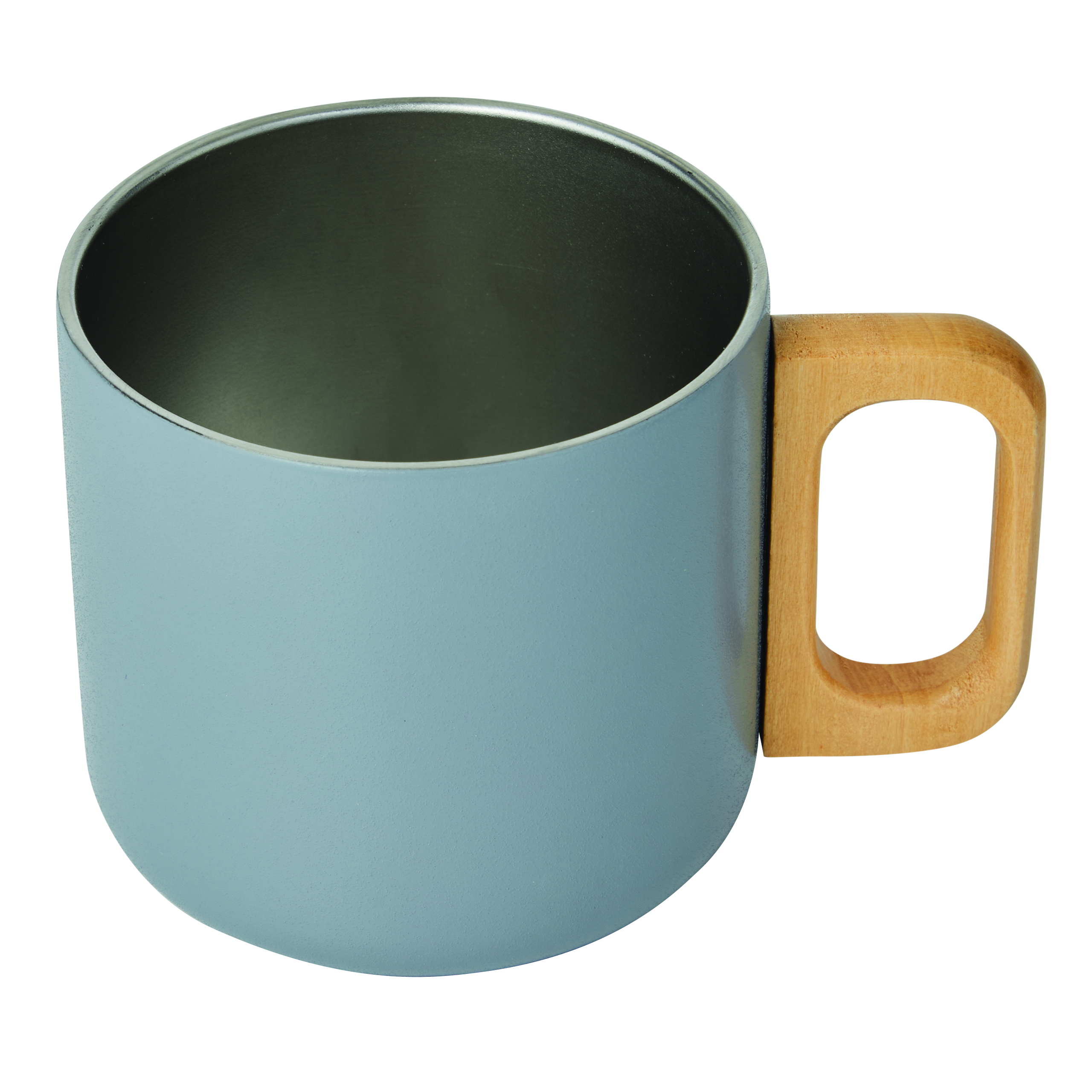 Kubek ze stali nierdzewnej RUSTIC TRIP, z podwójną izolacją. Posiada drewniany uchwyt, kolorową matowa powłokę proszkową na zewnątrz i srebrną wewnątrz. Pojemność kubka to ok. 350 ml.