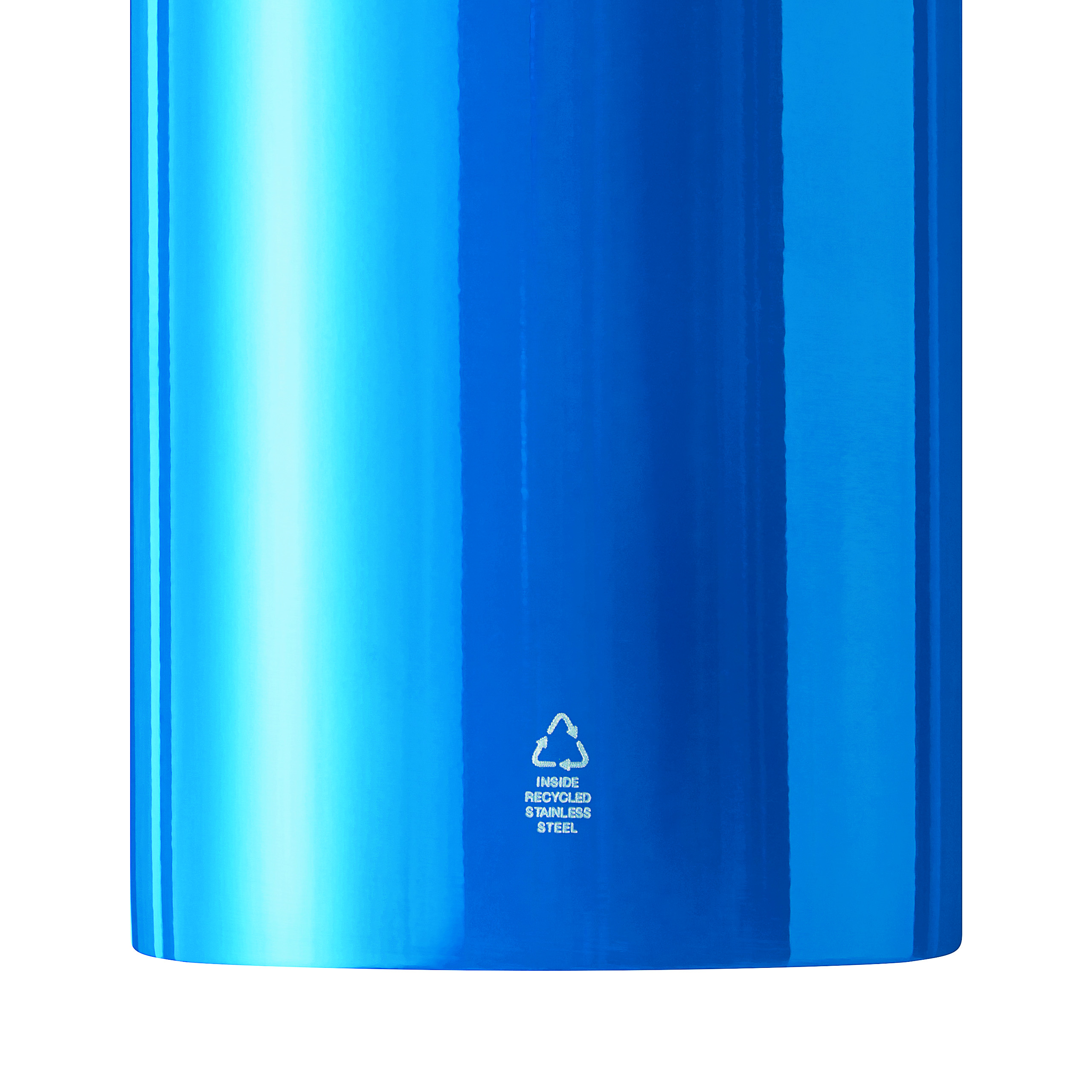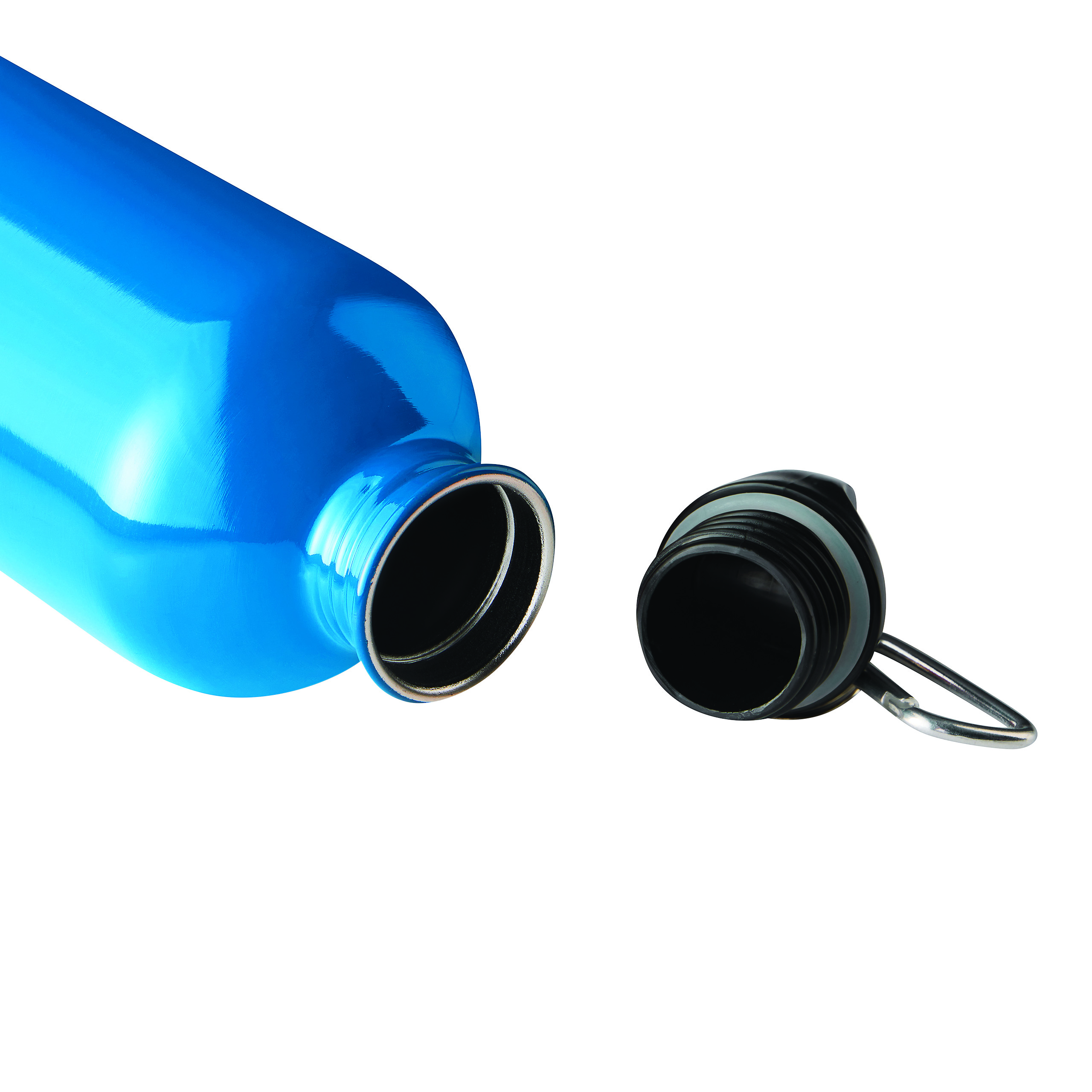 Butelka STEELTRANSIT z pojedynczą izolacją. Wykonana jest z recyklingowanej stali nierdzewnej. Posiada bezpieczną czarną zakrętkę z tworzywa sztucznego, silikonowy pierścień uszczelniający, uchwyt do przenoszenia, kółko na klucze i karabińczyk (karabińczyk NIE nadaje się do wspinaczki). Ma pojemność ok. 750 ml.