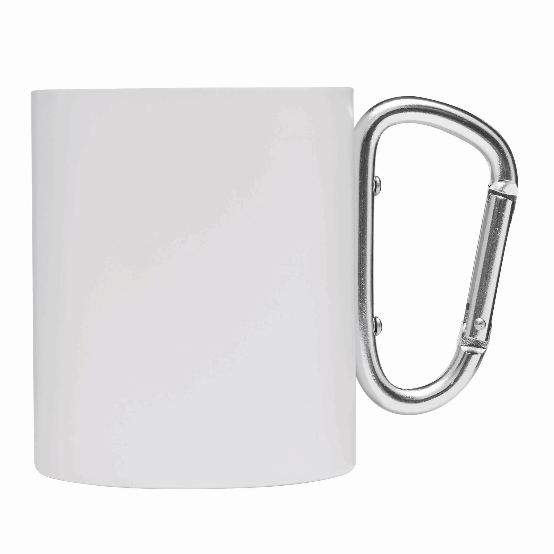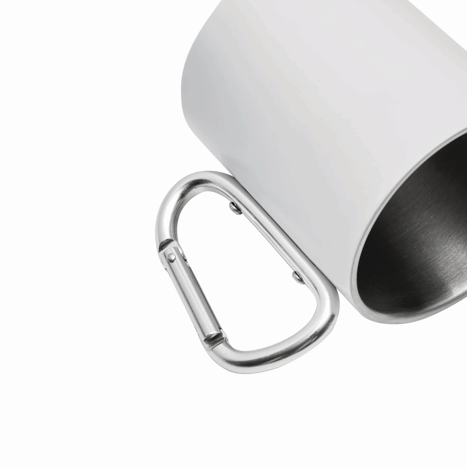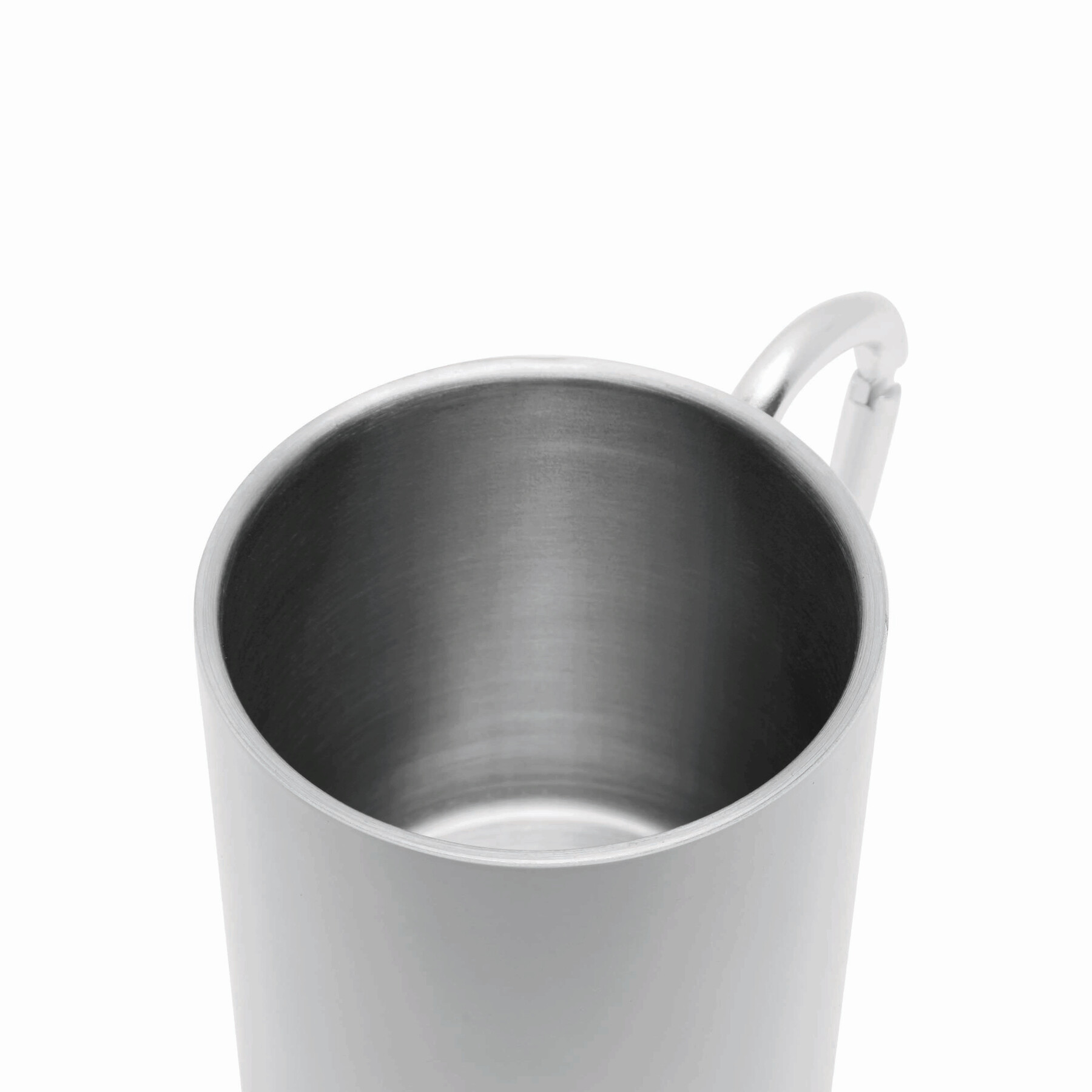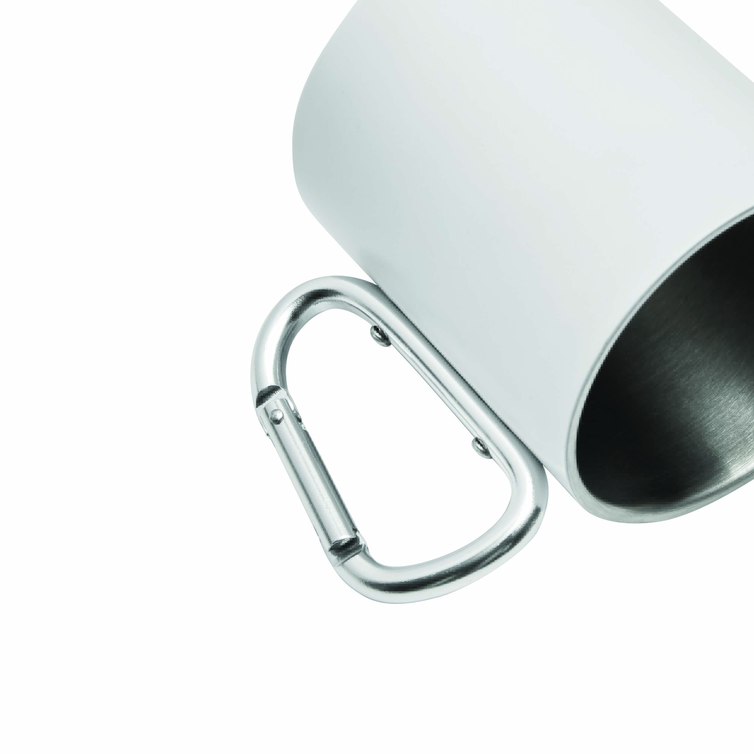 Kubek ze stali nierdzewnej DEEP VALLEY, dwuścienny: kolorowy na zewnątrz, ze srebrnym karabińczykiem (ten karabinek NIE nadaje się do wspinaczki), pojemność ok. 300ml.