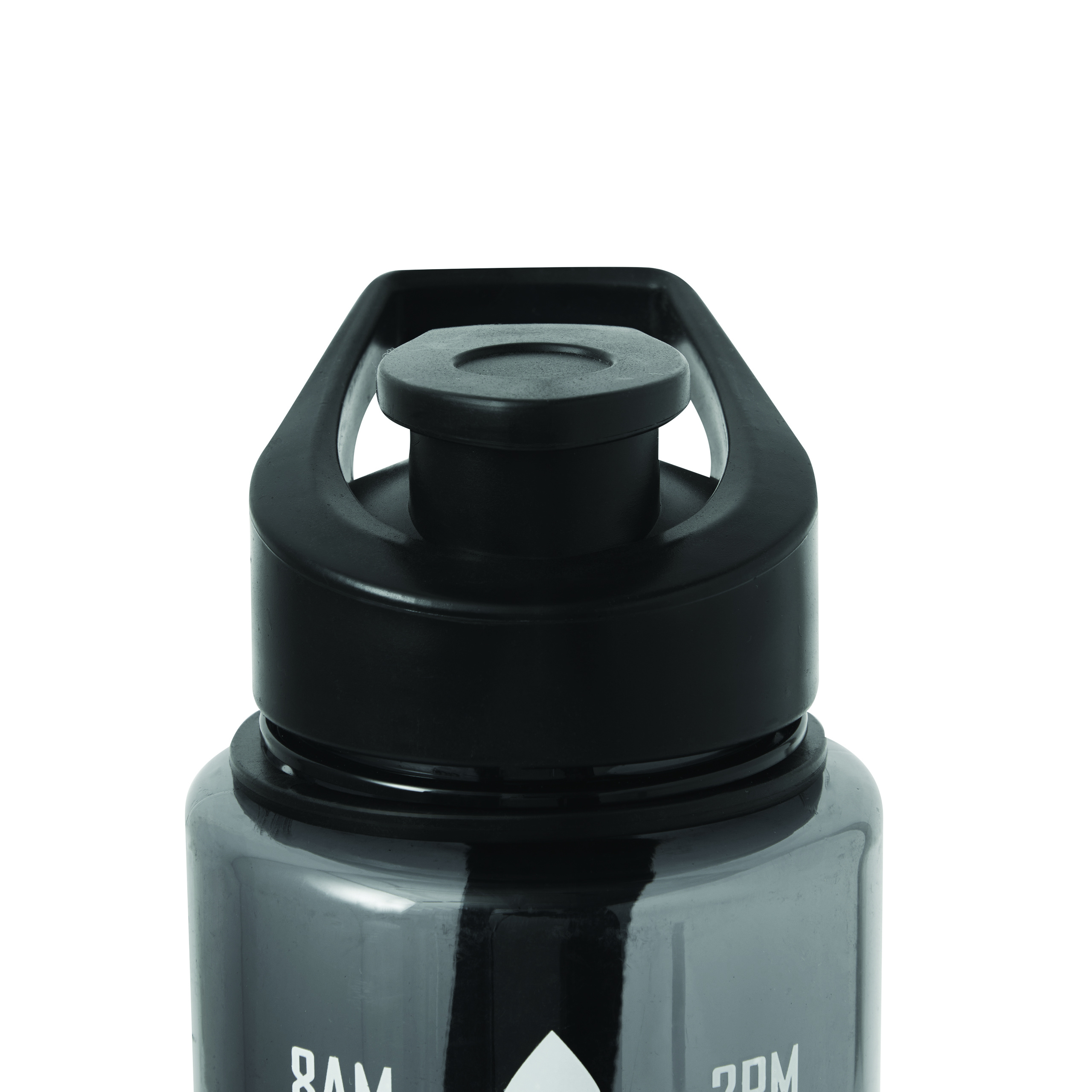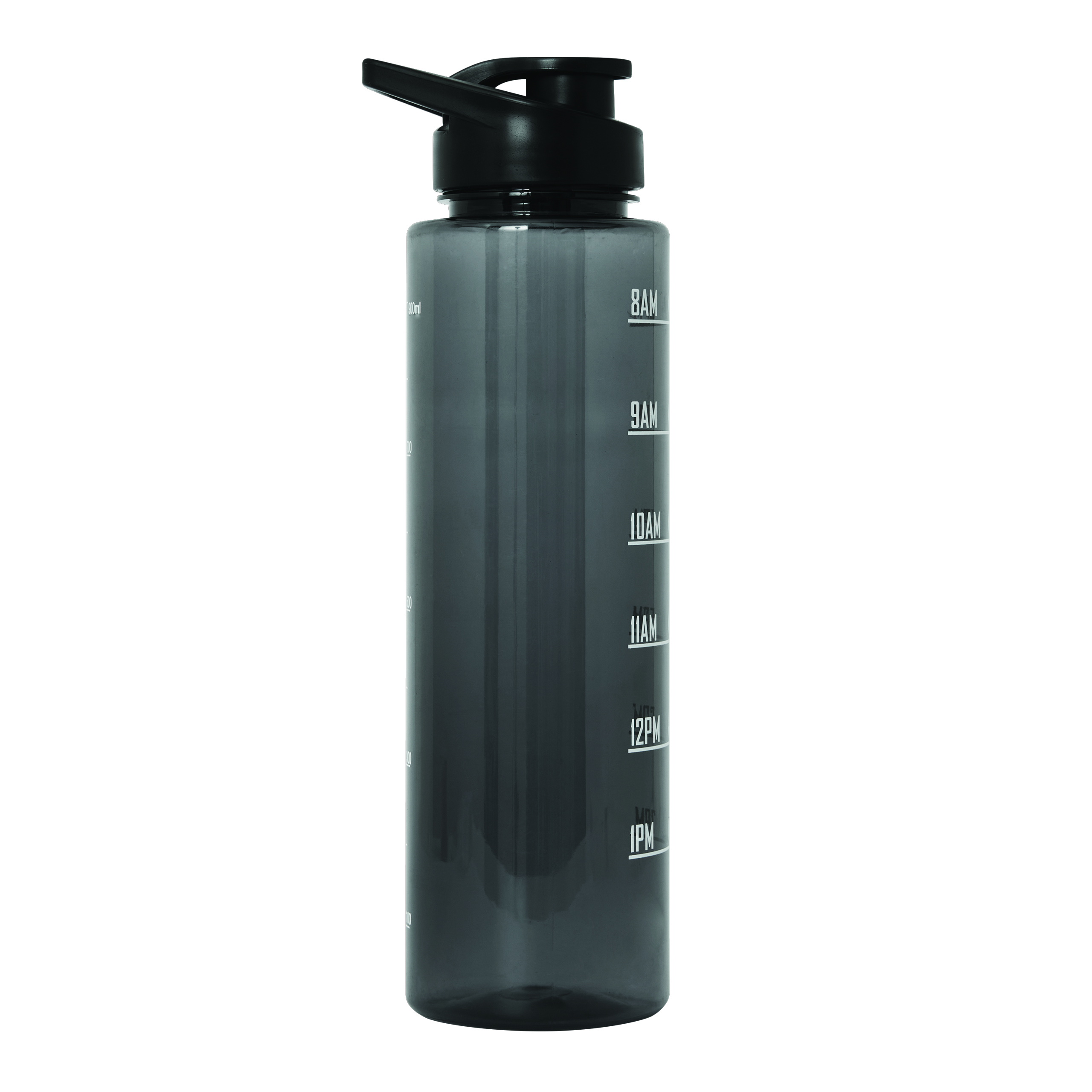 Sportowa butelka na wodę AQUA LEVEL. Przezroczysta, kolorowa butelka wykonana z wytrzymałego PETG. Ma dopasowaną kolorystycznie plastikowa zakrętkę z silikonowym pierścieniem uszczelniającym i odchylany ustnik do picia oraz uchwyt do przenoszenia. Posiada motywującą skalę czasu i objętości wody (pora dnia/ml) oraz pasek na rękę. O pojemności ok. 1000 ml.