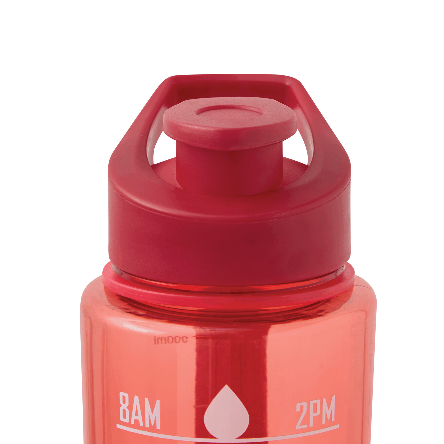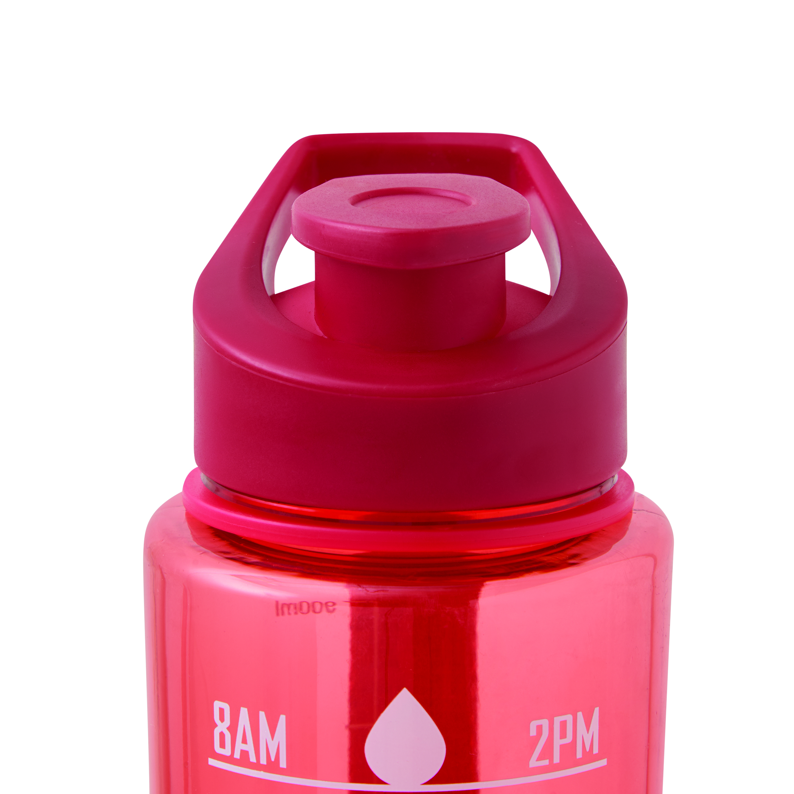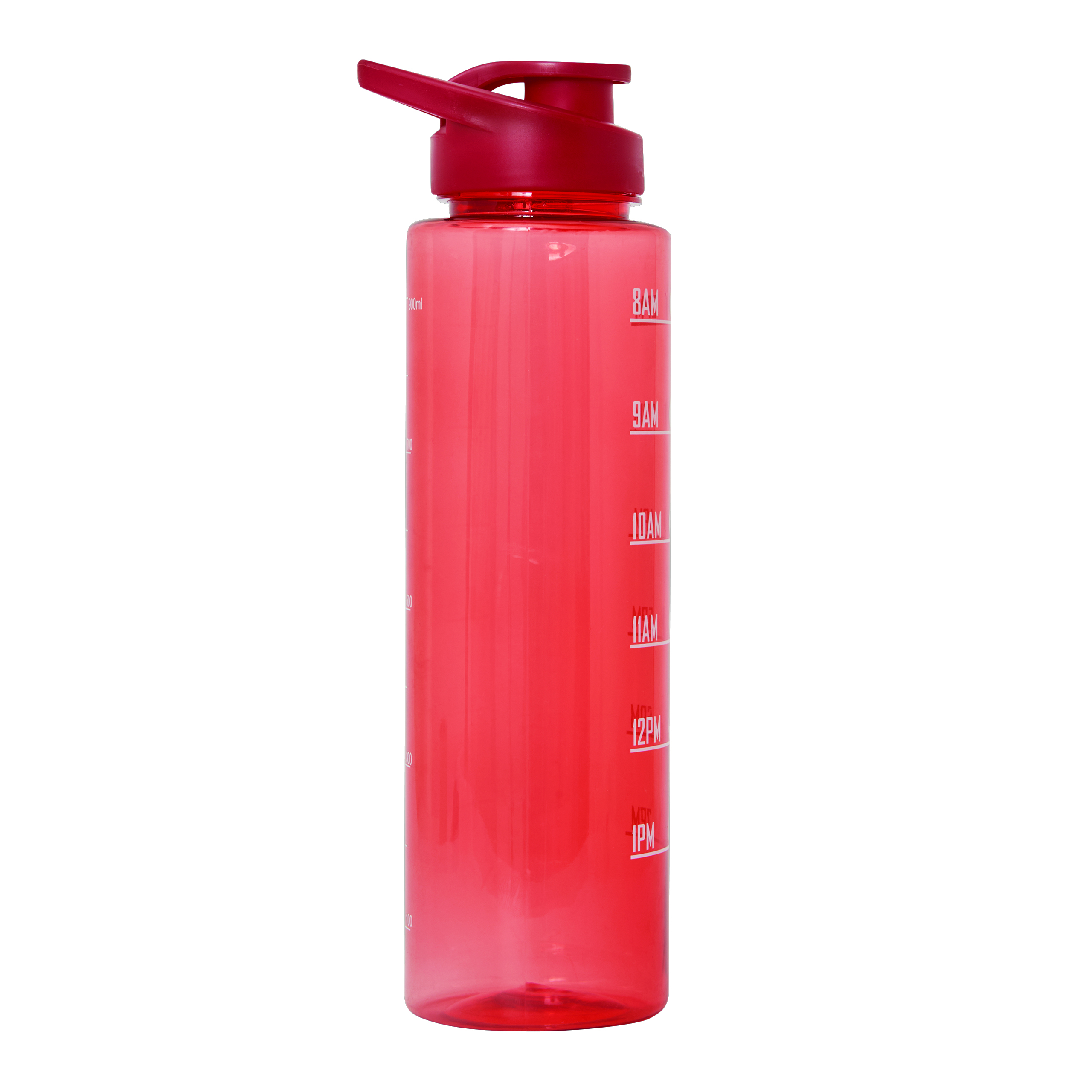 Sportowa butelka na wodę AQUA LEVEL. Przezroczysta, kolorowa butelka wykonana z wytrzymałego PETG. Ma dopasowaną kolorystycznie plastikowa zakrętkę z silikonowym pierścieniem uszczelniającym i odchylany ustnik do picia oraz uchwyt do przenoszenia. Posiada motywującą skalę czasu i objętości wody (pora dnia/ml) oraz pasek na rękę. O pojemności ok. 1000 ml.