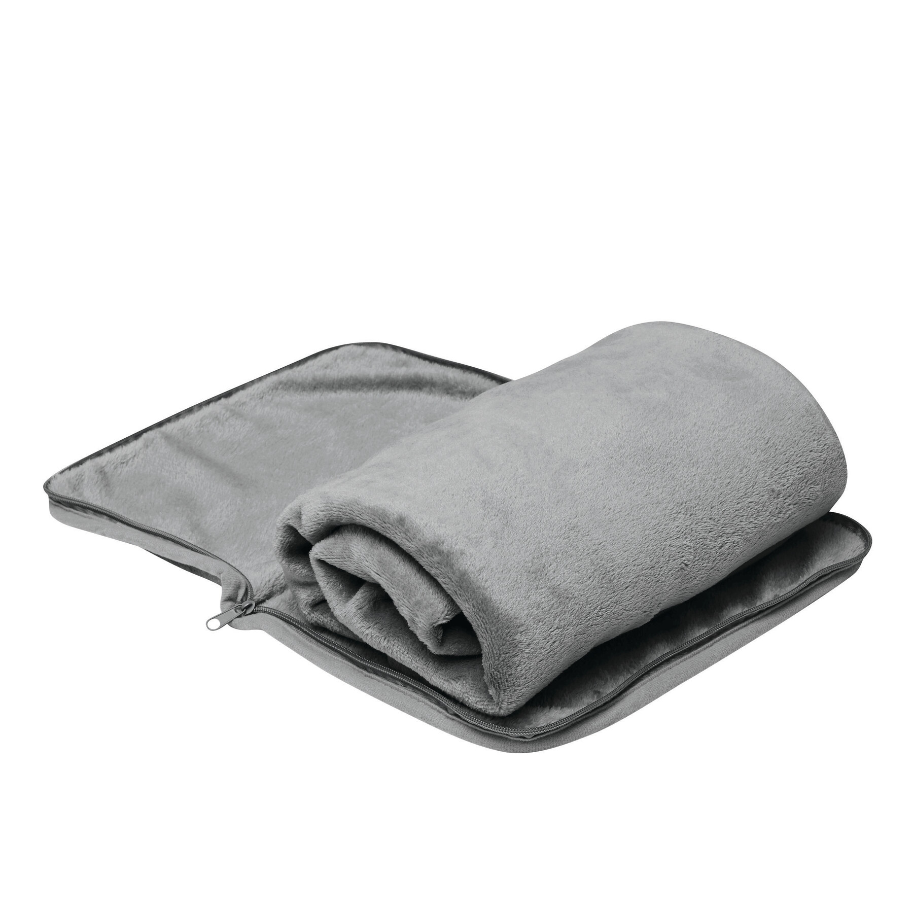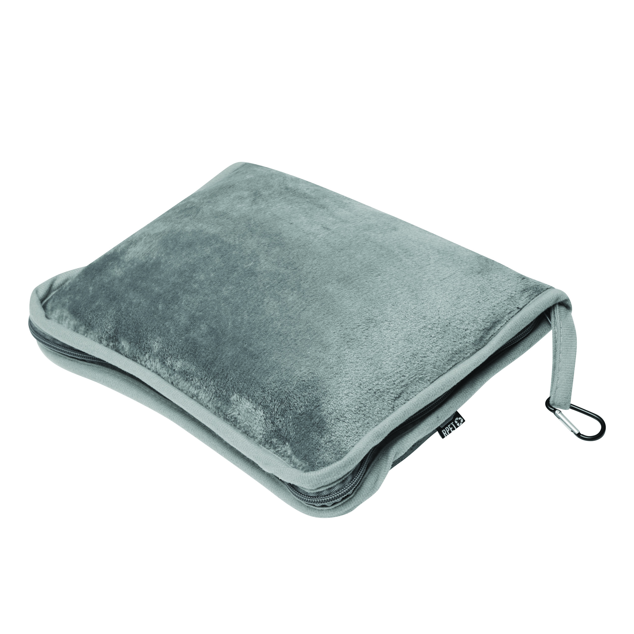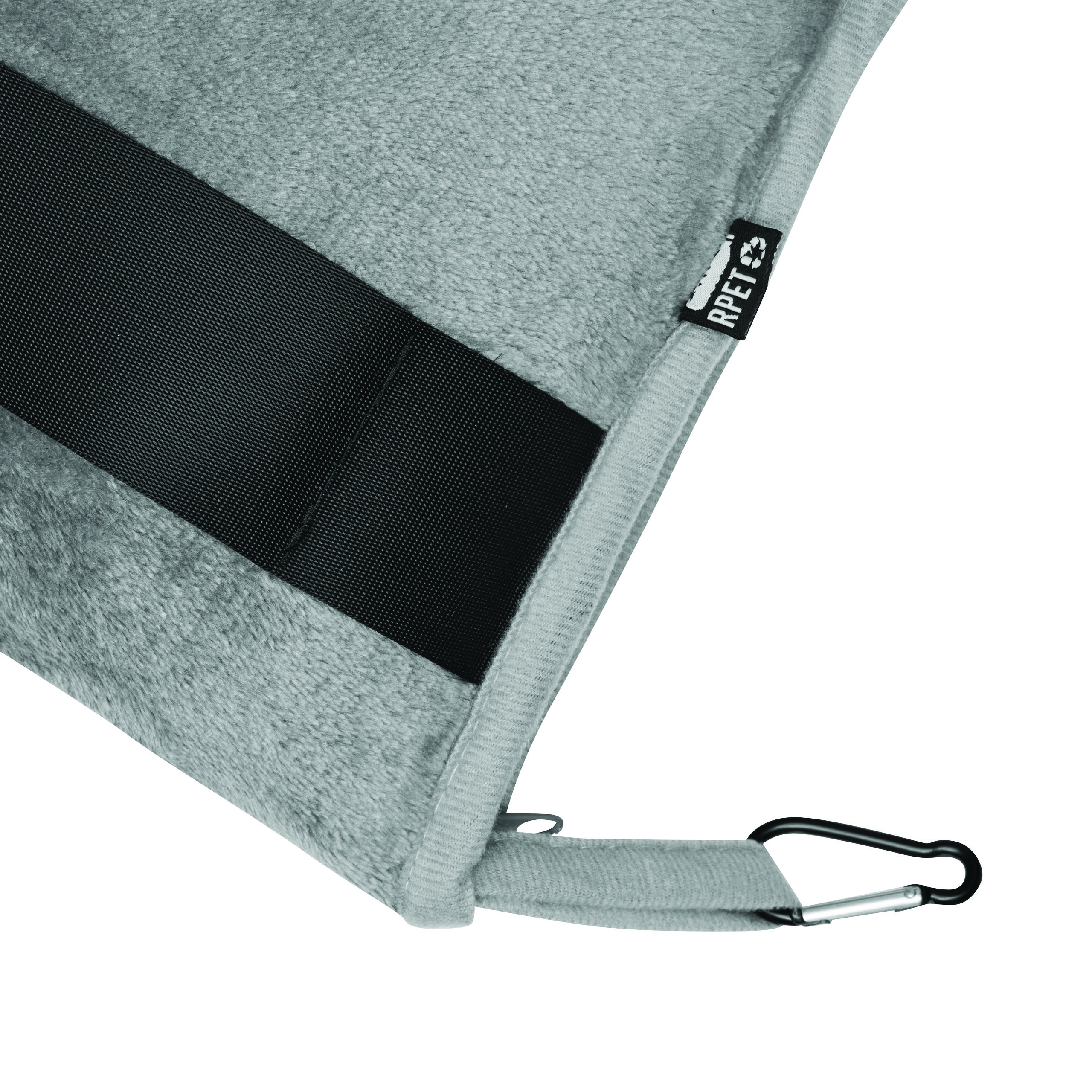 Koc podróżny PURENAP. Wykonany jest w 100% z rPET. Jest miękki i przyjemny w dotyku dzięki pluszowemu polarowi. Nadaje się do prania. Zapakowany w torbę z zamkiem błyskawicznym, uchwytem z małym karabińczykiem (karabińczyk NIE nadaje się do wspinaczki) oraz rękawem do mocowania na walizce. Koc można złożyć i używać jako poduszkę.