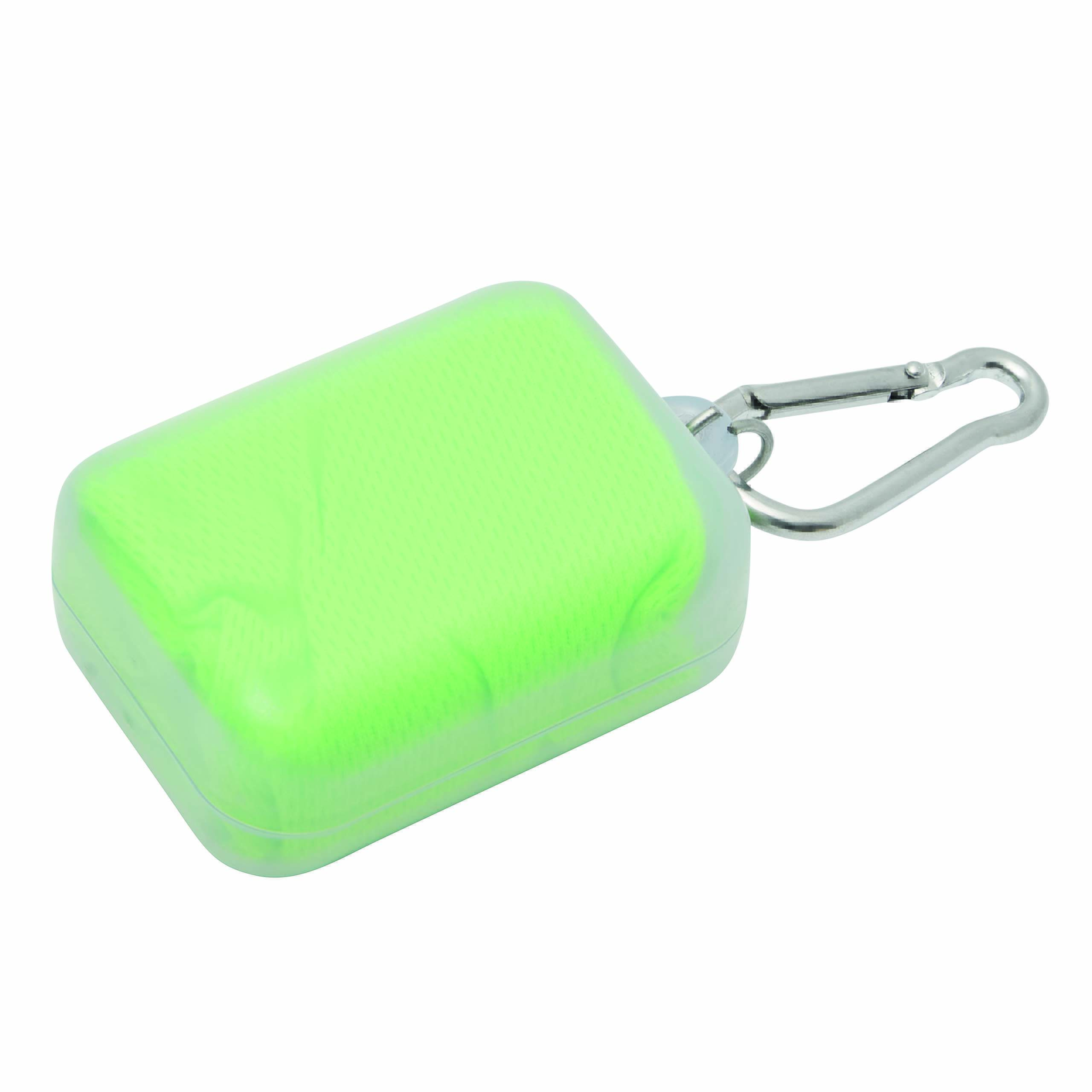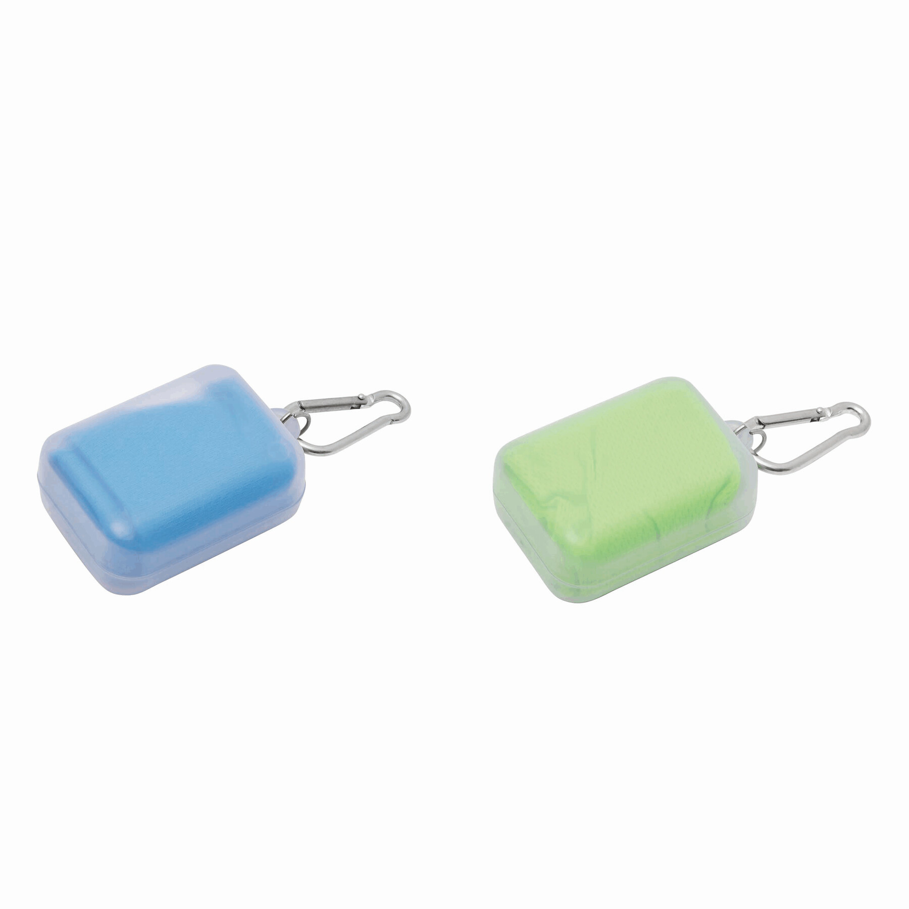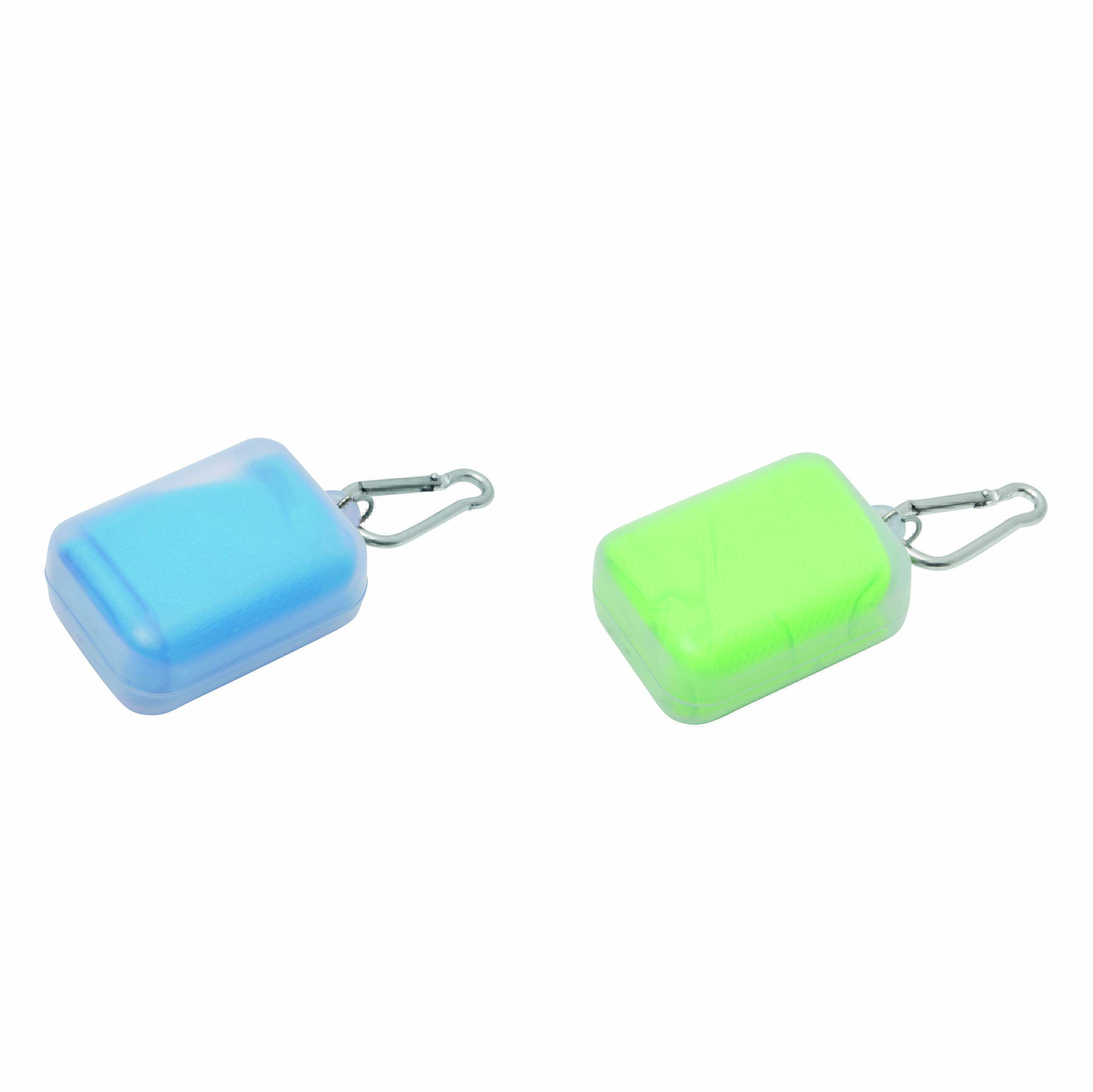 Ręcznik chłodzący z mikrofibry COOL DOWN. Z pętelką, w przezroczystej puszce z karabińczykiem. Aby uzyskać efekt chłodzenia zanurz ręcznik w wodzie, wykręć go i strzepnij. Idealny do fitnessu i aktywności sportowych.