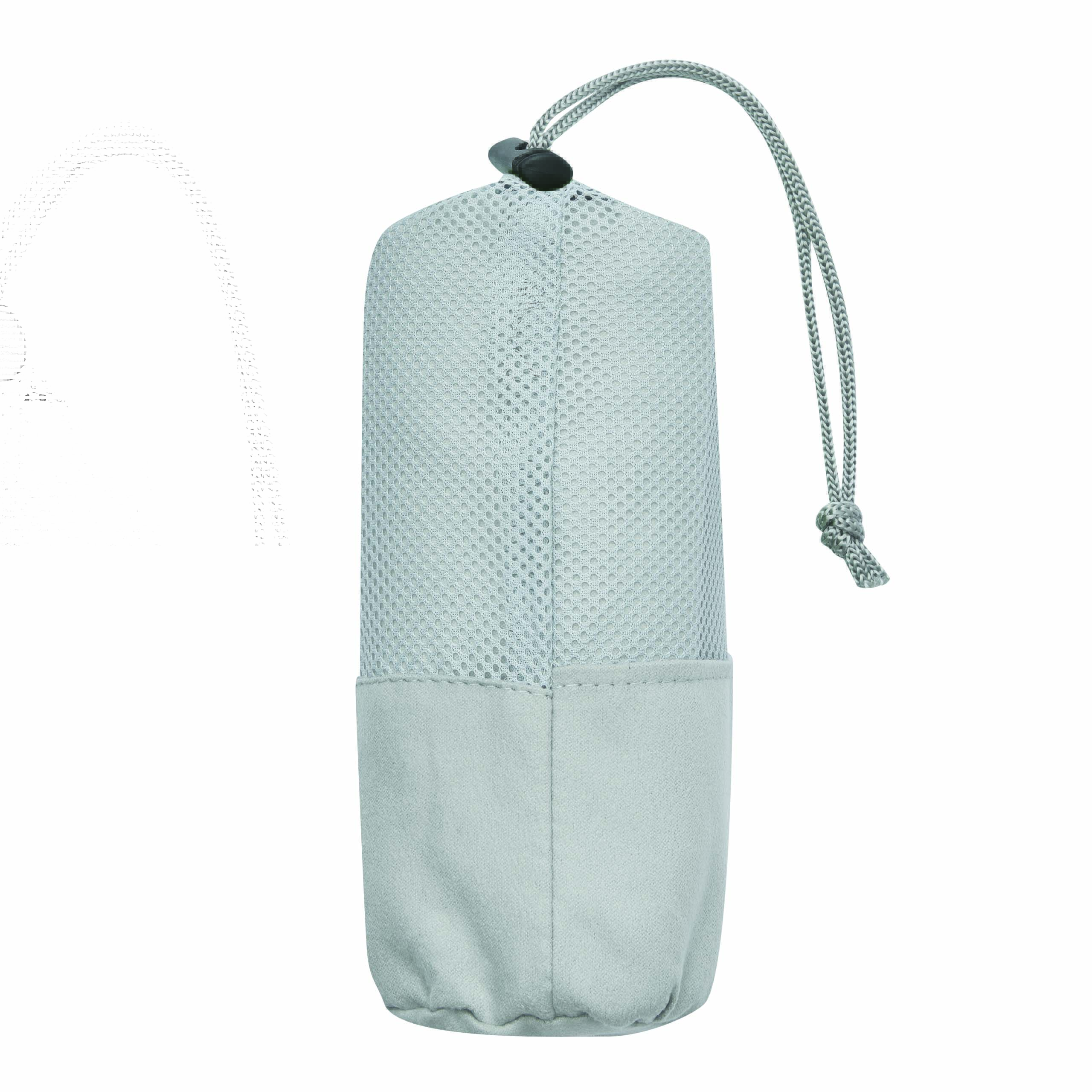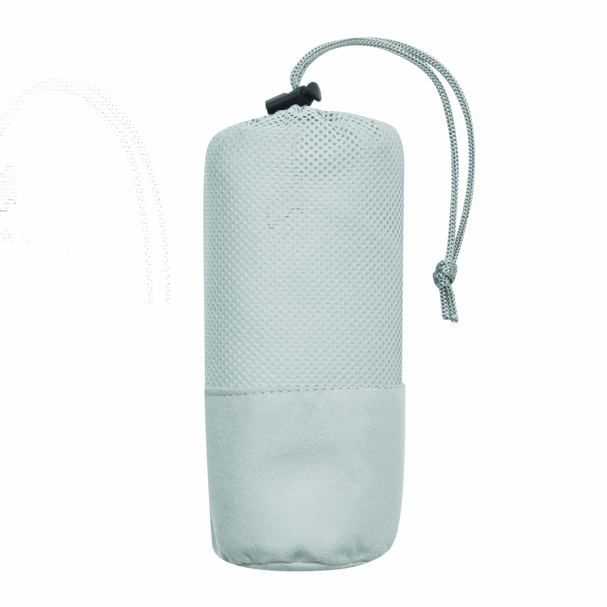 Ręcznik z mikrofibry FRESHNESS bardzo chłonny i szybkoschnący, o miękkiej teksturze. W dopasowanej kolorystycznie siateczkowej torbie ze sznurkiem do zaciągania i plastikowym stoperem.