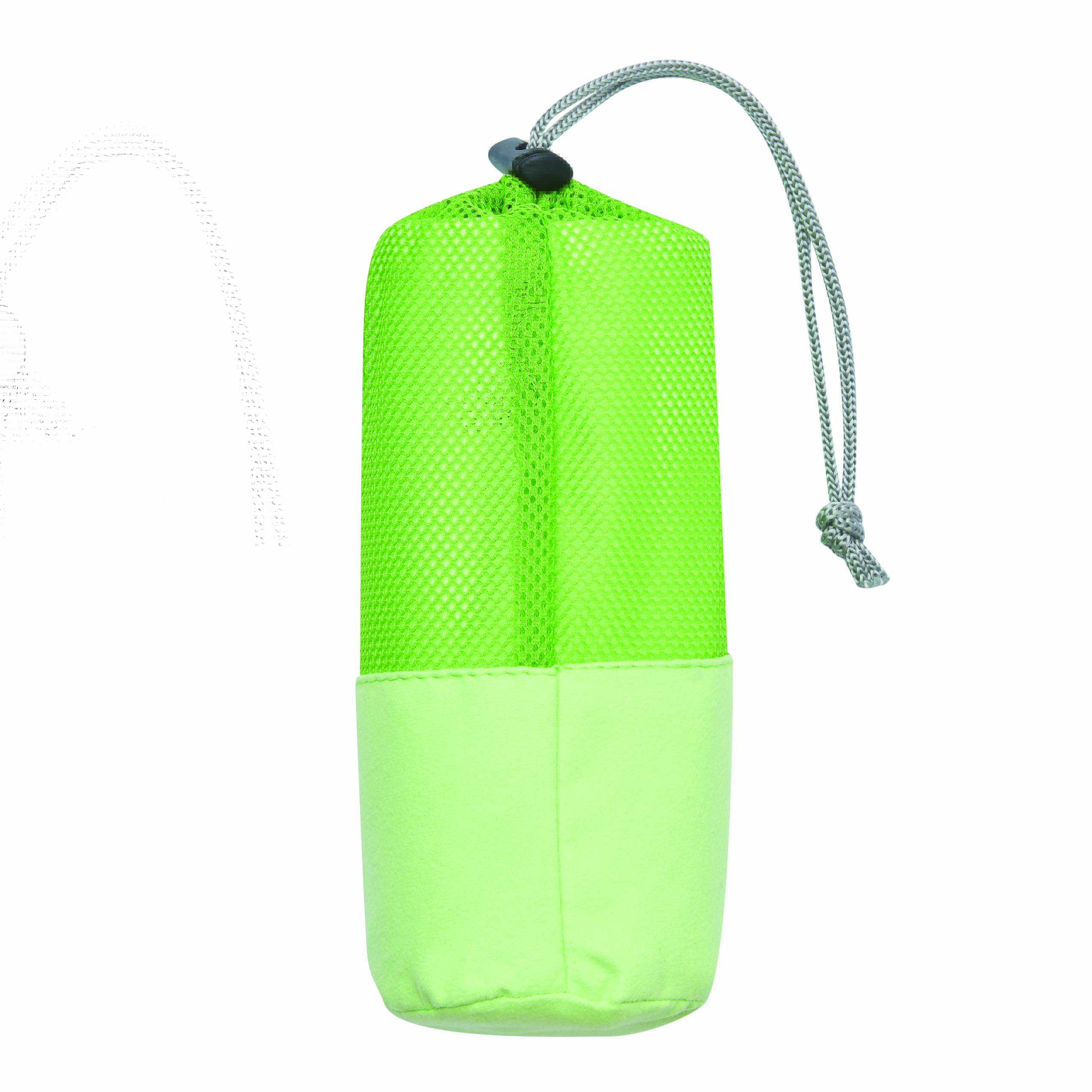 Ręcznik z mikrofibry FRESHNESS bardzo chłonny i szybkoschnący, o miękkiej teksturze. W dopasowanej kolorystycznie siateczkowej torbie ze sznurkiem do zaciągania i plastikowym stoperem.