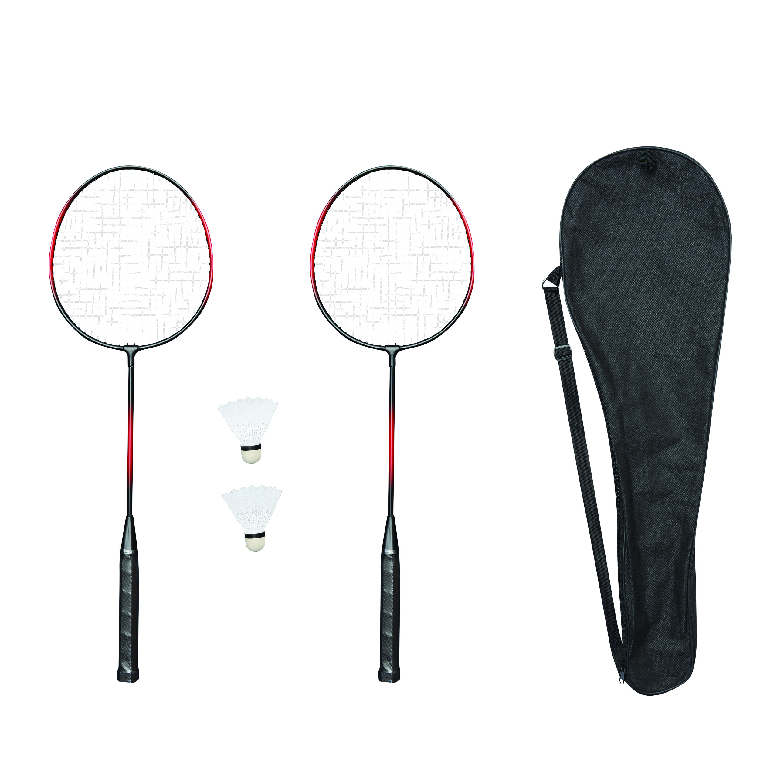 Zestaw do badmintona SMASH z 2 rakietami i 2 lotkami. W zestawie torba z uchwytem do przenoszenia.