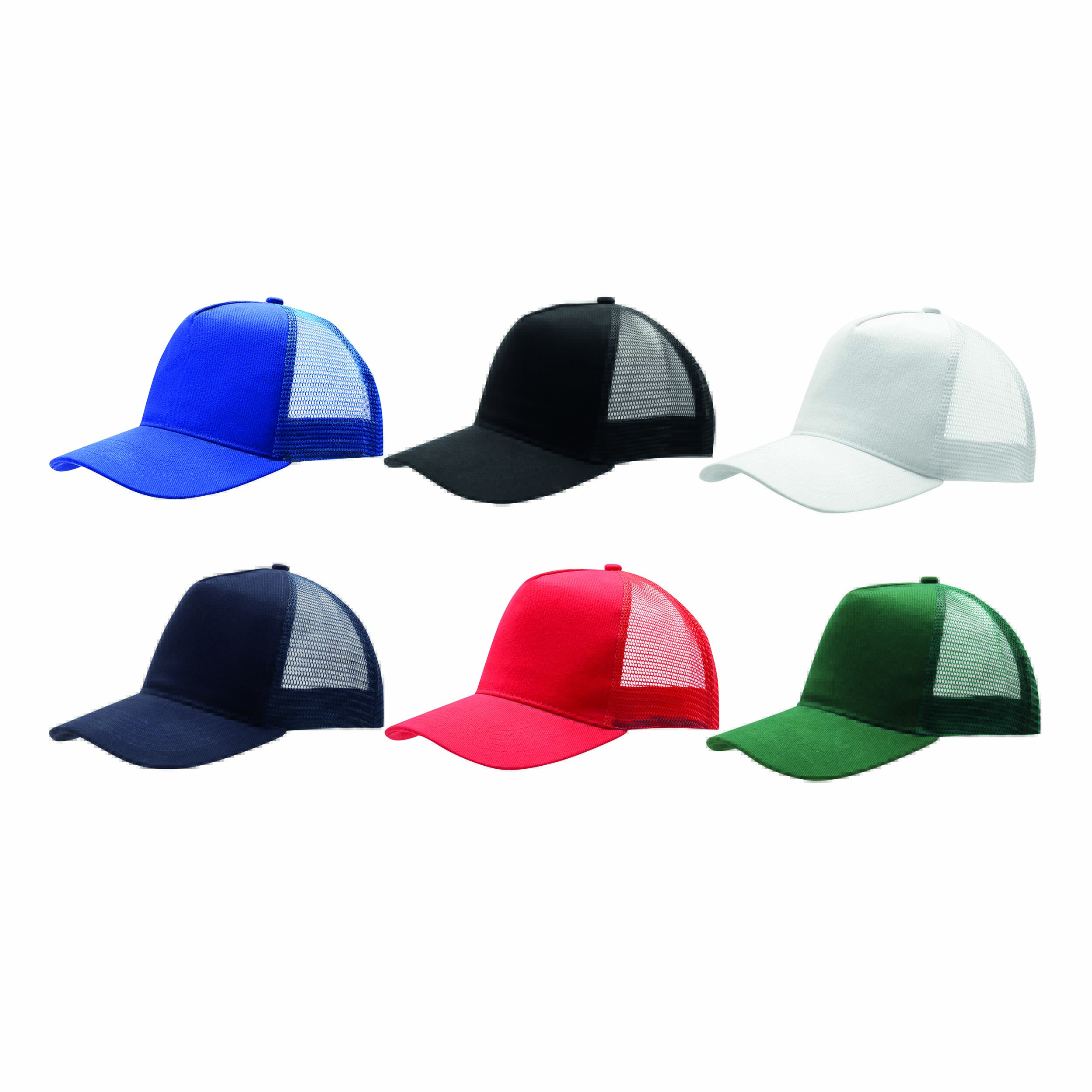 Czapka z daszkiem 5-panelowa FASTBALL: wzmocniony przedni segment wykonany ze szczotkowanej bawełny, pozostałe segmenty wykonane z siateczki, możliwość regulacji rozmiaru, z tyłu dwurzędowe zapięcie z tworzywa sztucznego.