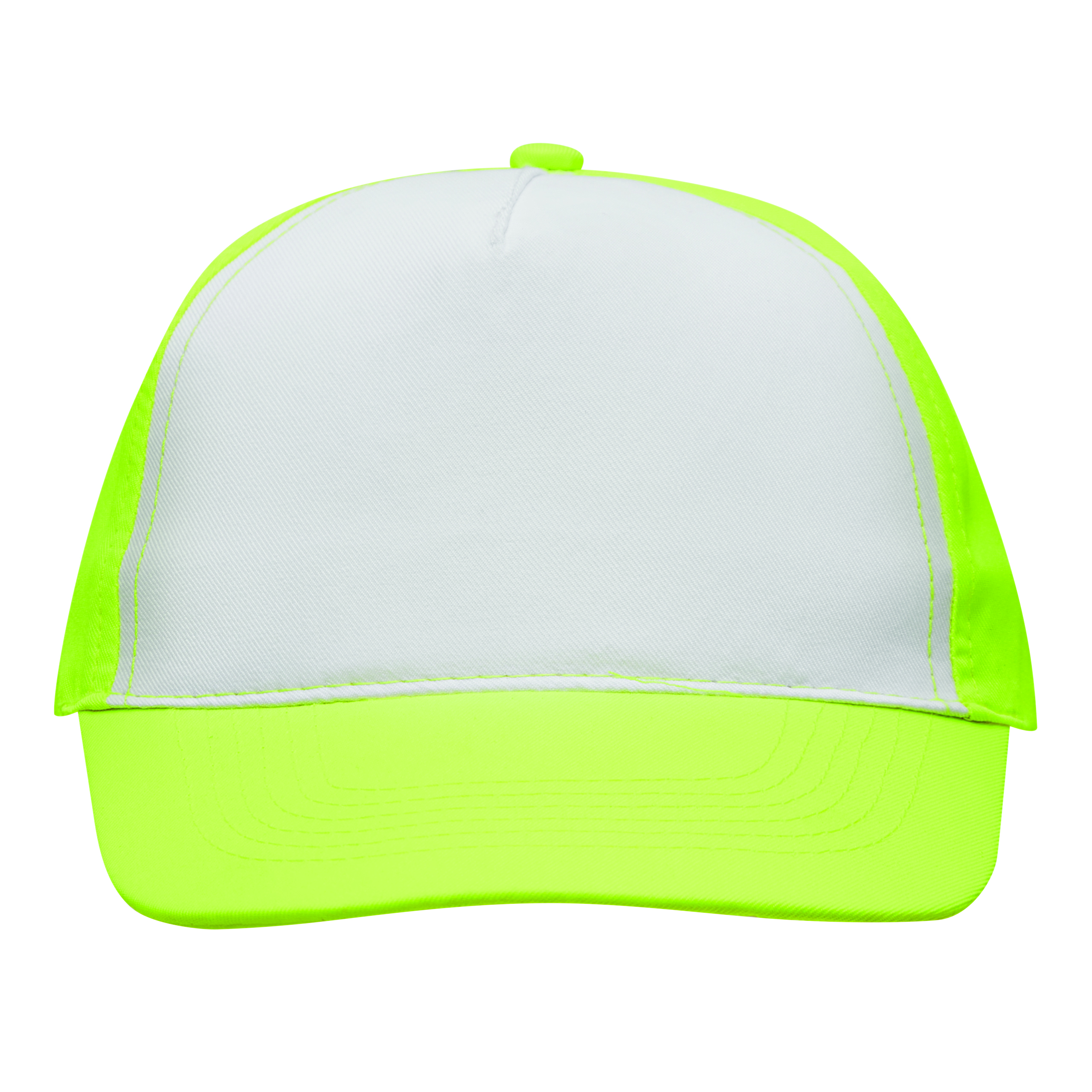 5 segmentowa czapka SHINY. 2-kolorowa z łatwym do nadrukowania wzmocnionym panelem przednim, 4 obszywane wywietrzniki, regulowana zapięciem na rzep z tyłu.